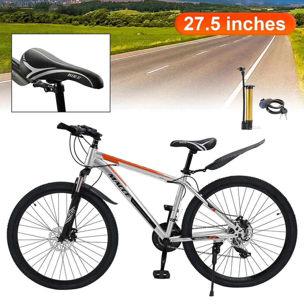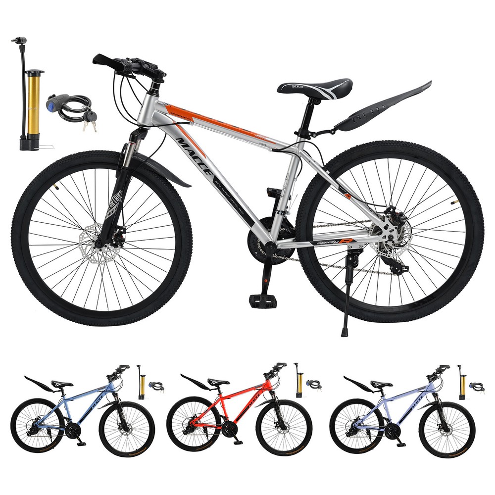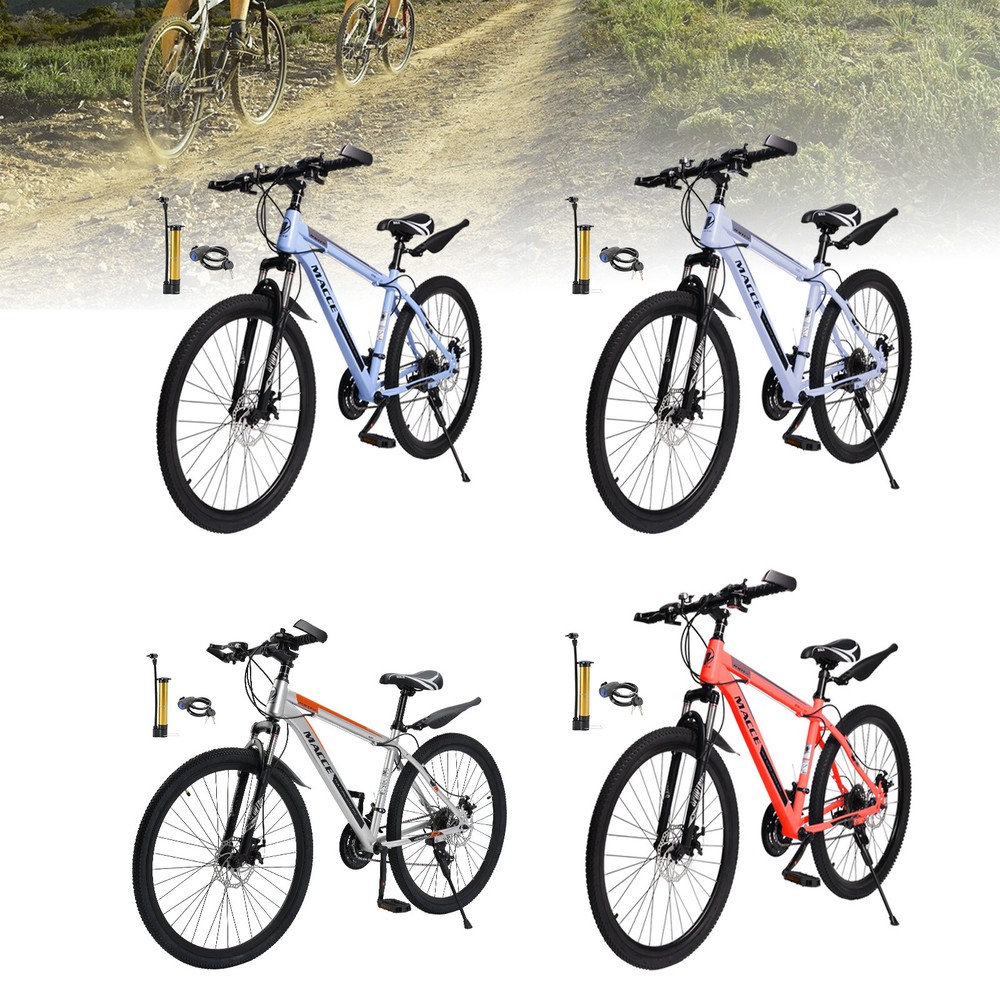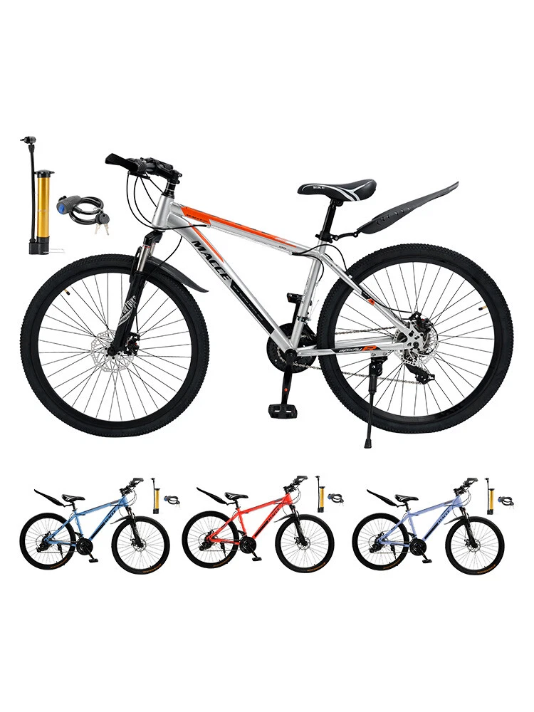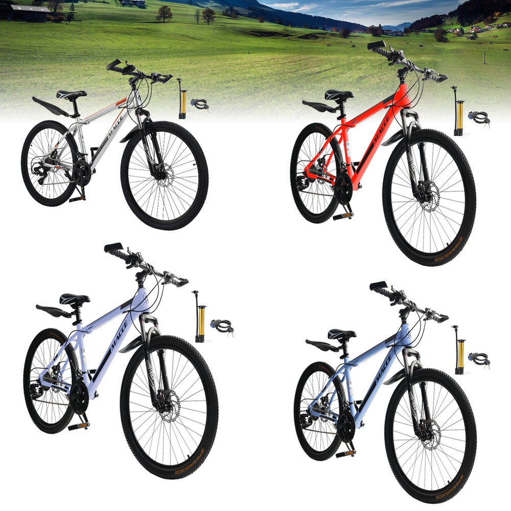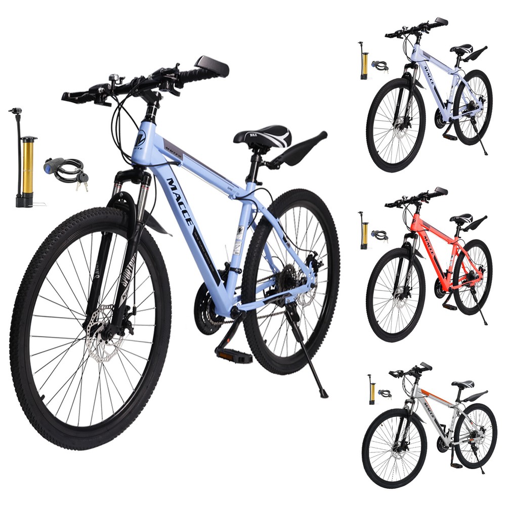 This mountain bike is a fantastic ride! The 27-speed gears make climbing hills smooth, and the double disc brakes provide reliable stopping power. The high-carbon steel frame feels sturdy yet lightweight, and the suspension handles rough trails with ease. Love the sleek blue design—it looks as good as it performs. Assembly was straightforward, and it arrived well-tuned. Perfect for both men and women who want a durable, stylish MTB for adventure!