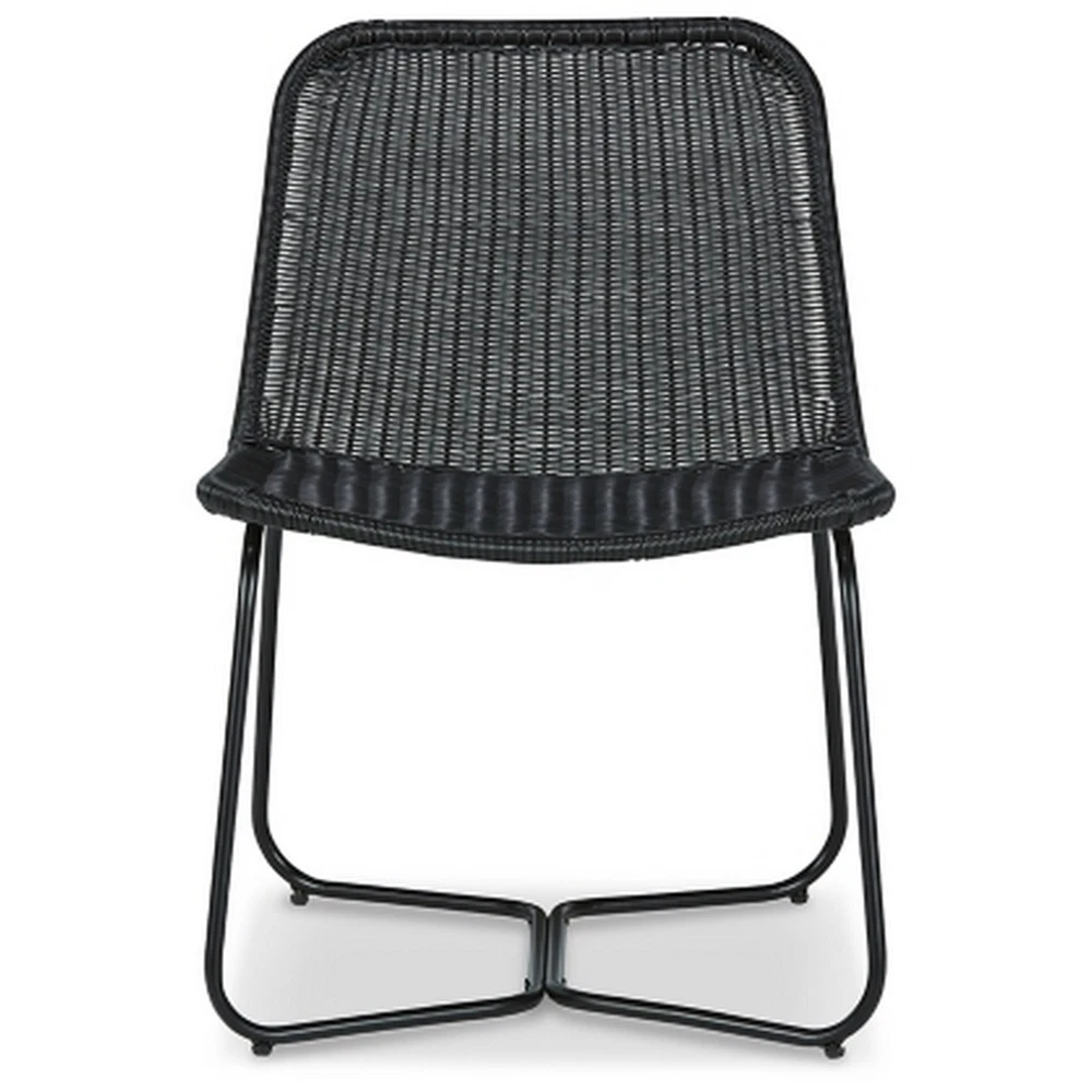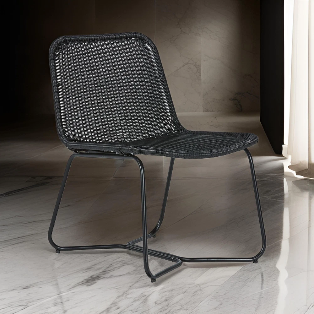 This accent chair, crafted from metal in a sleek black finish, boasts a contemporary yet timeless design that effortlessly elevates any living space. Its unique wicker resin construction adds texture and visual interest, while the curved shape of the chair offers both style and comfort. It has character whether placed in a cozy corner of a living room or as a chic addition to a patio or garden.FeaturesOne indoor outdoor accent chair Made from a durable metal frame in a black finish All weather wicker woven seat and back Curved body shapeSupported on an open metal frame Perfect for indoor and outdoor placementInterconnected legs with floor protectorsModern, contemporary style Seat width: 23.13, seat depth: 18.88, seat height: 16.75, in inches23.13L x 26W x 32H, in inches Free Shipping Over $49.99* Details 26 Inch Accent Chair, Indoor Outdoor Resin Wicker Design, Black Metal Frame Product Description: This accent chair, crafted from metal in a sleek black finish, boasts a contemporary yet timeless design that effortlessly elevates any living space. Its unique wicker resin construction adds texture and visual interest, while the curved shape of the chair offers both style and comfort. It has character whether placed in a cozy corner of a living room or as a chic addition to a patio or garden. Features One indoor outdoor accent chair Made from a durable metal frame in a black finish All weather wicker woven seat and back Curved body shape Supported on an open metal frame Perfect for indoor and outdoor placement Interconnected legs with floor protectors Modern, contemporary style Seat width23.13, seat depth18.88, seat height16.75, in inches 23.13L x 26W x 32H, in inches