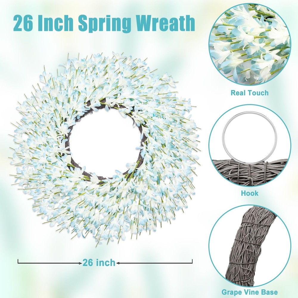 Large Summer Spring Wreaths for Front Door 26 Inch Spring Summer Door Wreath Easter Wreaths for Front Door Wild Floral Wreath for Farmhouse Porch Wall Wedding Living Room Home Decor Aesthetic(Blue) Product Details Color: Blue Brand: LZNPA MPN: HS-H0 UPC: Does not apply EAN: Does not apply Color: Blue Brand: LZNPA Material: Twigs, Artificial Flowers Mounting Type: Wall Mount Shape: WREATHS Product Dimensions: 26"D x 26"W x 2.75"H Seasons: Winter, Summer, Spring Occasion: Easter, Summer, Spring, Valentine's Day Manufacturer: LZNPA Indoor/Outdoor Usage: Outdoor, Indoor Color: Blue Brand: LZNPA Material: Twigs, Artificial Flowers Mounting Type: Wall Mount Shape: WREATHS Product Dimensions: 26"D x 26"W x 2.75"H Seasons: Winter, Summer, Spring Occasion: Easter, Summer, Spring, Valentine's Day Manufacturer: LZNPA Indoor/Outdoor Usage: Outdoor, Indoor Item Weight: 1.4 pounds Country of Origin: China Item model number: HS-H0 Date First Available: January 7, 2025 Lifelike Summer Spring Wreath: The lush large summer spring wreaths for front door outside are meticulously crafted with high quality EVA. Compared to other summer spring wreath, the LZNPA 26 Inch outdoor wreaths for front door use as many petals as possible to make the whole spring door wreath look very full ! Beautiful !Elegant ! enhanced by vibrant colors create a welcoming atmosphere for guests, This is a very beautiful summer spring decorations for home 26 Inch Large Front Door Wreath Spring: Attention please, the 26 Inch large door wreaths for front door outside all season is securely packaged in a 16 Inch gorgeous box. Remove the easter wreaths for front door from the delicate carton, arrange the large green wreaths for front door simply, and the gorgeous easter wreath can be fully displayed.The high-quality materials used in its structure ensure that it can maintain its stunning gorgeous appearance over time Large Spring Summer Wreath Decor: This versatile large spring wreaths for front door clearance can be used indoors outdoors home decor in different seasons. Hang it on a door or wall.Suitable for home decor, front door living room bedroom window mirror wall fireplace kitchen dining room porch villa wedding office balcony stairs shop hotel Valentine's Day spring door front porch farmhouse decor. Its timeless and professional design complements a variety of indoor and outdoor styles, making it a perfect addition to everyday spring decor and holiday celebrations Easy to Arrange and Maintain: The 26 Inch large wild flower wreaths for front door is made of a resilient memory material allows for easy shaping and adjustment to the desired form,the outdoor wreaths for front door is easy to maintain, the bottom base is made of grape vine, each petal is reinforced to ensure the integrity of the spring door decor, and the gorgeous color guarantees the novelty and uniqueness of the summer spring door wreath, which will definitely make your front door stand out on the whole block Professional Factory and High Quality: LZNPA is a factory focusing on Artificial Plants Decoration, we continue to increase the investment in research and development, only to provide high quality Artificial Plants Decoration products, we always adhere to the principle of quality first, if there is any problem, I will be the first time for you to solve, please believe in our product quality