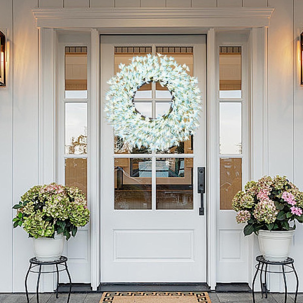 This wreath is absolutely stunning—the blue floral design is vibrant and full of life, perfect for brightening up any front door or wall. The quality is fantastic, with realistic-looking flowers and sturdy twigs that hold up well. It’s lightweight yet durable, and the size makes a big statement without being overwhelming. Love how versatile it is for different seasons and occasions! Adds such a cheerful, farmhouse-chic touch to my home decor. Highly recommend!