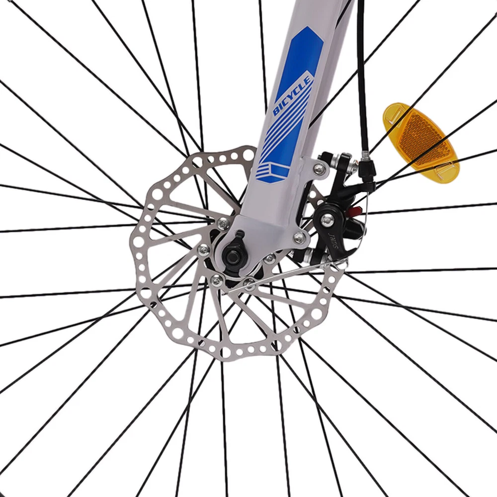 Description Life requires some fun and excitement to be more enjoyable, and cycling is a good way. This foldable bicycle is made of high-quality high carbon steel and aluminum alloy, with 21 different speeds that can meet your various riding requirements, accompanying you smoothly through various terrains and experiencing a different kind of fun. Get on this bicycle and let it take you to experience a healthier, environmentally friendly, and fun life. Key Features Foldable & Portable: It is equipped with an aluminum folding clip, making it easy to achieve quick folding. When folded, its size is only 40.55*37.8*13.78in. You can fold it up and place it in the garage, trunk, and other places to save space when you don't use it. Durable & Sturdy: A high carbon steel frame and aluminum alloy Dear ❥ welcome to floraselling~~ ❥ Description Life requires some fun and excitement to be more enjoyable, and cycling is a good way. This foldable bicycle is made of high-quality high carbon steel and aluminum alloy, with 21 different speeds that can meet your various riding requirements, accompanying you smoothly through various terrains and experiencing a different kind of fun. Get on this bicycle and let it take you to experience a healthier, environmentally friendly , and fun life. Key Features Foldable & Portable: It is equipped with an aluminum folding clip, making it easy to achieve quick folding. When folded, its size is only 40.55*37.8*13.78in. You can fold it up and place it in the garage, trunk, and other places to save space when you don't use it. Durable & Sturdy: A high carbon steel frame and aluminum alloy rim, combined with spraying, heat treatment, and fish scale welding processes, can perform well for a long tim e and achieve a maximum load-bearing capacity of 264.5 lbs. Stable Cycling: The U-shaped front fork and the rear shock absorber can absorb most of the vibration, achieving a more stable cycling experience, even on uneven mud, sand, and mountain roads. The elasticity of the tires also gives them a certain shock absorption effect. Multi-speed Transmission: Three gears in the front and seven gears in the rear allow you to choose different gears to achieve 21 different speeds for easy cycling. The 7-piece taren is agile and smooth, allowing you to shift gears accurately in different terrains. Safety Guard: Reliable dual disc brakes can provide stable and strong braking force even in harsh weather conditions. Four reflectors allow pedestrians and vehicles around you to accurately locate you. Anti-slip tires provide excellent grip and stability, ensuring safe cycling. The sealed shaft can effectively prevent water and dust, ensuring long-term smooth use without frequent maintenance. Easy to Install: 80% of our bicycles are pre-installed, and you only need to spend a little time and effort to complete the remaining parts, enjoying a sense of achievement from parts to the whole! Cool Appearance: The modern yet classic design and blue and white color scheme make it undeniably eye-catching in a crowd. Healthy Lifestyle: Compared to driving, bicycling not only helps you to strengthen your muscles and bones, but also effectively lose weight and have a healthy body! Riding travel without requiring fuel or gasoline is an environmentally friendly way. Details Mudguards: Both the front and rear wheels are equipped with mudguards, effectively blocking water or mud splashing and keeping the bike clean. Anti-slip Armrest: T he rubber-wrapped armrests with non-slip textures achieve a stable and comfortable grip. Adjustable Seat: It can be adjusted from 31.5in to 37.2in, allowing people between 5.25-5.9ft in height to ride comfortably. Large Footrests: They are made of durable and abrasion-resistant PC, and the enlarged design makes it comfortable for you to step on. Application It is suitable for people between 5.25-5.9ft in height to ride on various roads, such as uneven roads, muddy roads, grasslands, mountain roads, sandy areas, wetlands, etc. Specifications Material: High Carbon Steel, Aluminum Alloy, Rubber, PC Surface Treatment: Spraying, Heat Treatment, Fish Scale Welding Style: Modern Brake Style: Disc Assembly Required: Yes Color: Black, White, Blue Special Feature: Portable, Foldable Number of Items: 1 Number of Speeds: 21 Wheel Size: 66cm/26in Seat Adjustment Height: 80-94.5cm/31.5-37.2in Applicable Height: 1.6-1.8m/5.25-5.9ft Armrest Distance: 62cm/24.4in Maximum Bearing Capacity: 120kg/264.5lbs Gross Weight: 19.45kg/42.87lbs Net Weight: 16.2kg/35.7lbs Product Size: 169*98cm/66.53*38.58in Foldable Size(L*W*H): 103*96*35cm/40.55*37.8*13.78in Package Size: 136*21.5*72cm/53.54*8.46*28.34in Package Included 1*F oldable Bicycle 1*Chinese Manual All Accessories for Assembly Notes Please carefully read the manual and strictly follow the precautions to have a better experience. Please note that when braking, brake the rear wheels first. Please match the front and rear gears correctly, otherwise, it will exacerbate the wear of the chain, flywheel, and toothed disc, and even cause the chain to loosen and break. Please allow the slight color difference caused by the shooting light and 1-3cm error due to manual measurement, and make sure you do not mind before you order. Instructions:not included,please contact seller for English instructions Payment Delivery details Terms of sales About us Contact us Payment We accept ebay payment 。 Fees such as import duties, taxes are not included in the item price or shipping costs. These charges are the buyer's responsibility. Delivery details Shipping: 2-9 working days to: USA Terms of sales We maintain high standards of excellence and strive for hundred percent customer satisfaction. Feedback is very important to us. We hope that you contact us immediately before you give neutral or negative feedback, so that we can address your concerns. It is impossible to address issues if we do not know about them! About us Your satis faction is our ultimate goal. 