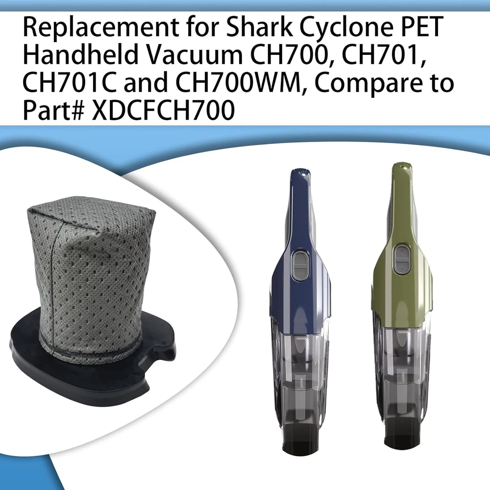 Product: CH701 Vacuum Filter Replacement Compatibility: - Shark Cyclone PET Handheld Vacuum models: * CH701 * CH701C * CH700WM * CH700 Key Features: 1. Improved Suction Power: - Designed to capture and filter dust particles - Helps increase the vacuum's suction power - Extends the life of the vacuum 2. Clean Air Output: - Filters promote a cleaner exhaust - Aims to improve air quality in the home 3. Washable Design: - Filters can be cleaned with water and reused - Reduces the need for frequent filter purchases 4. Maintenance Recommendations: - Suggested replacement every 3-4 months - Regular replacement ensures optimal performance Important Notes: - The listing emphasizes the importance of checking the vacuum model and filter size before purchase to ensure compatibility. - These filters are designed to protect the vacuum's motor from dust and dirt. This product appears to be an aftermarket replacement part for specific Shark handheld vacuum models. It offers a washable and reusable solution for maintaining the vacuum's performance and air quality. The emphasis on compatibility checking suggests that these filters are precisely designed for the listed models and may not fit other Shark vacuums or brands. The washable design is highlighted as a cost-saving feature, allowing users to clean and reuse the filter multiple times before needing a replacement. However, the recommendation to replace the filter every 3-4 months indicates that while washable, these filters do have a limited lifespan for optimal performance.