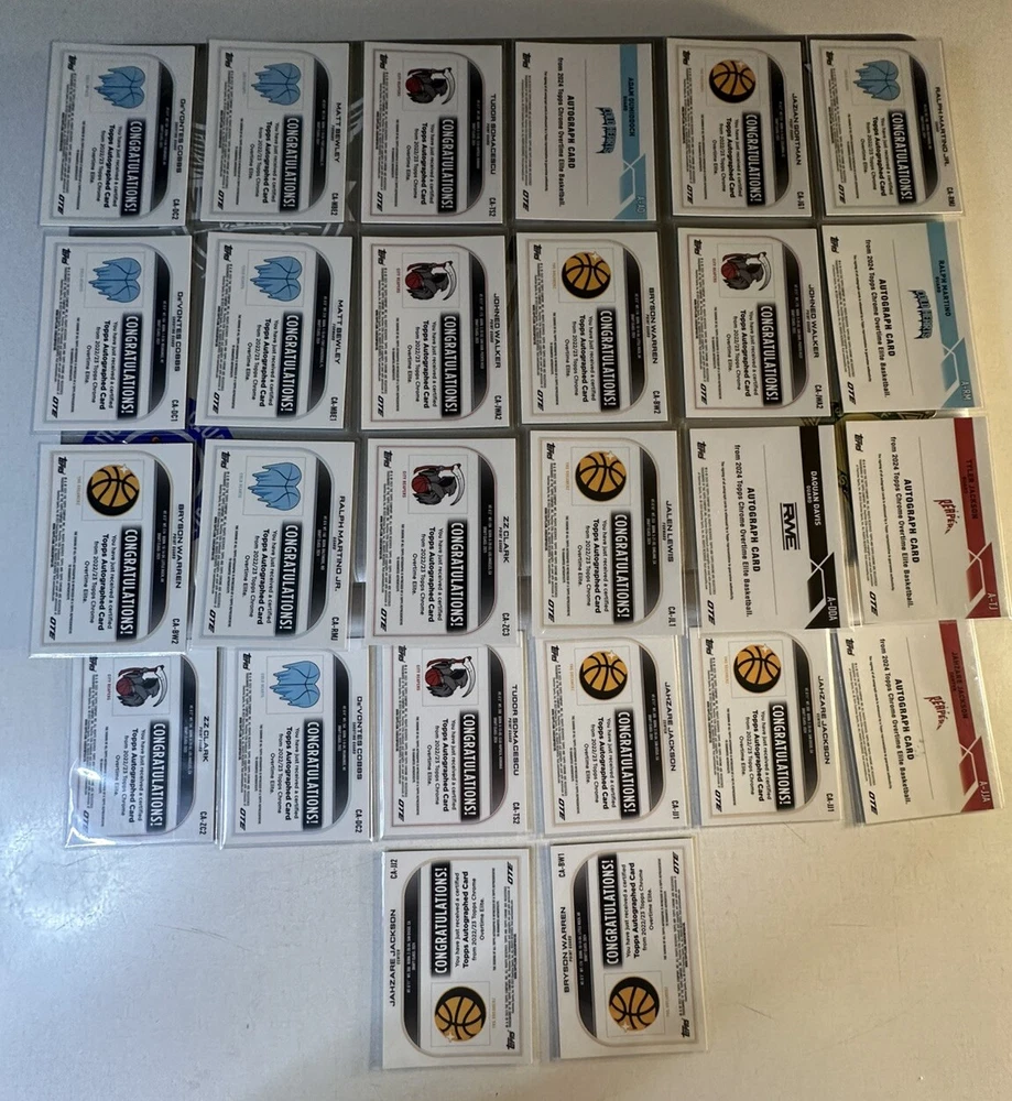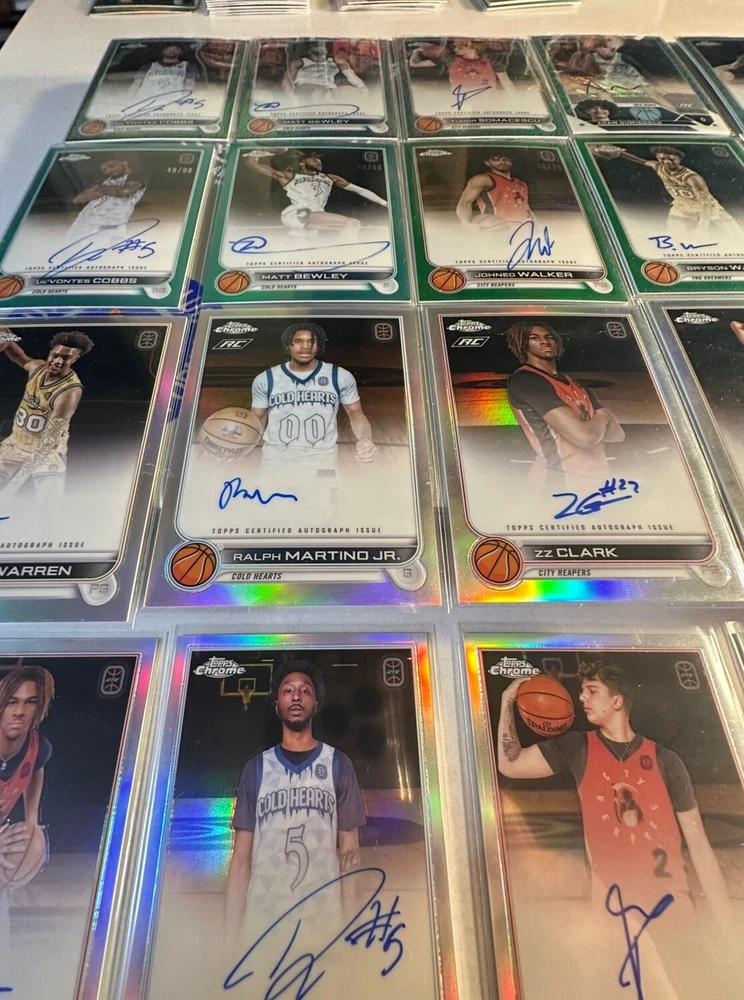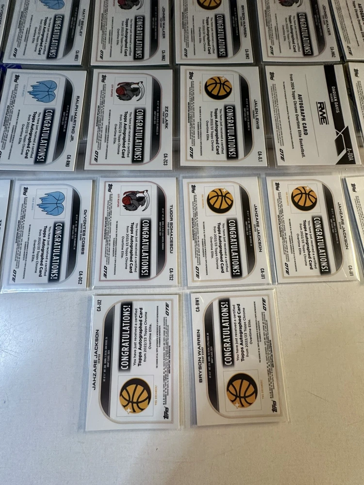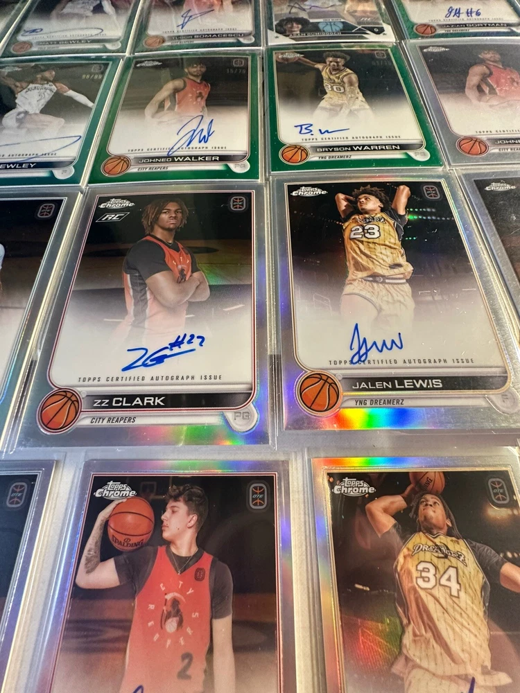 2022-24 TOPPS CHROME ote Autographs 1 - /25 orange basketball Bryson warren 3x - #/75 green Ralph martino johned walker Bryson warren 2x - Aqua /99 devonte cobbs matt Bewley 5x - aqua ote /99 Devonte cobbs matt Bewley tudor somacescu jazian gortman adam oumiddoch 15x Silver non numbered – zz clark (2), devontes cobbs, tudor somacesco, jahzare Jackson (4x), tyler Jackson, ralph martino (2x), johned walker, daquan davis, Jalen lewis, Bryson warren