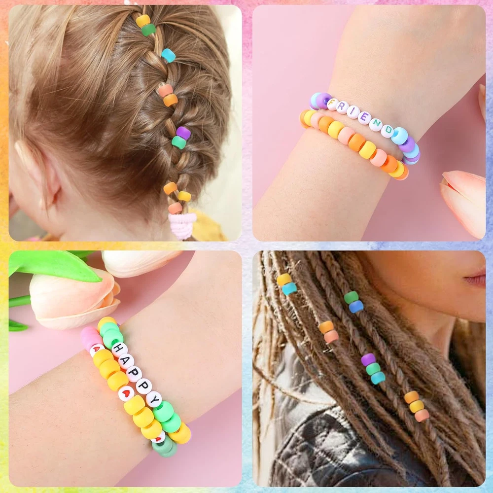 【MULTIPURPOSE USE】 18 colors rainbow kandi beads set in various olors are great for inspiring creativity. Would be a perfect gift to friend or family,it can improve the practical ability and concentration, broaden imagination, training creativity and logical thinking. 【ASSORTED COLORS】The rainbow pony beads kit come with 18 vibrant colors, providing you a great assortment for making necklaces, bracelets, hair braids, keyrings, couple souvenirs, pet collars, jazzing up back packs as well as many other craft and jewelry projects. 【PACKAGE INCLUDES】Each package contains a box of 2600+pcs 18 rainbow colors large hole opaque pony beads along with 3 rolls of elastic string. All the jewelry making beads are collected in a clear plastic storage box, easy to collect and fetch. 【SERVICE】We are happy to give our customers an exceptionally remarkable shopping experience. Please feel free to contact us if our product is defective, breaks or you are not satisfied. 【Safety Guarantee】Durable, non-toxic material with smooth surface to avoid scratching hands. Warning: Small parts are a choking hazard. If you encounter problems in the process of use, please contact us. Product Description Great for Bracelet Jewelry Making 18 colors pony beads give you hours of fun and will brighten up your project. This colorful pony beads are great for bead weaving, beading, embroidery, sewing, or crafting; Also perfect for making earrings, bracelets, necklaces, waist beads, or used as spacer and pattern beads. Our pony beads for jewelry making is well made: durable & sturdy,smooth surface & well shaped, symmetrical with shiny luster, waterproof & no fading, not easy to break. PERFECT SIZE 6mm * 9mm Pony beads, elastic string for easily threading the craft making beads to all ages. MULTIPURPOSE USE Beads for bracelet in 18 assorted colors. It's great for bracelets can be also for other jewelry making and accessories,such as friendship bracelets, name necklaces, rings, hair braids, etc. EASY TO CARRY The pony bead kit comes with a transparent box for easy storage and carry. Convenient for you to take out and DIY with friends. BEST GIFT CHOICE Pony beads in various colors are great for inspiring kids' creativity, teaching kids to sort colors and count numbers. Jewelry making beads are a perfect birthday gift and Christmas present for kids.Especially a popular parent-child activity to develop a warm and supportive relationship.