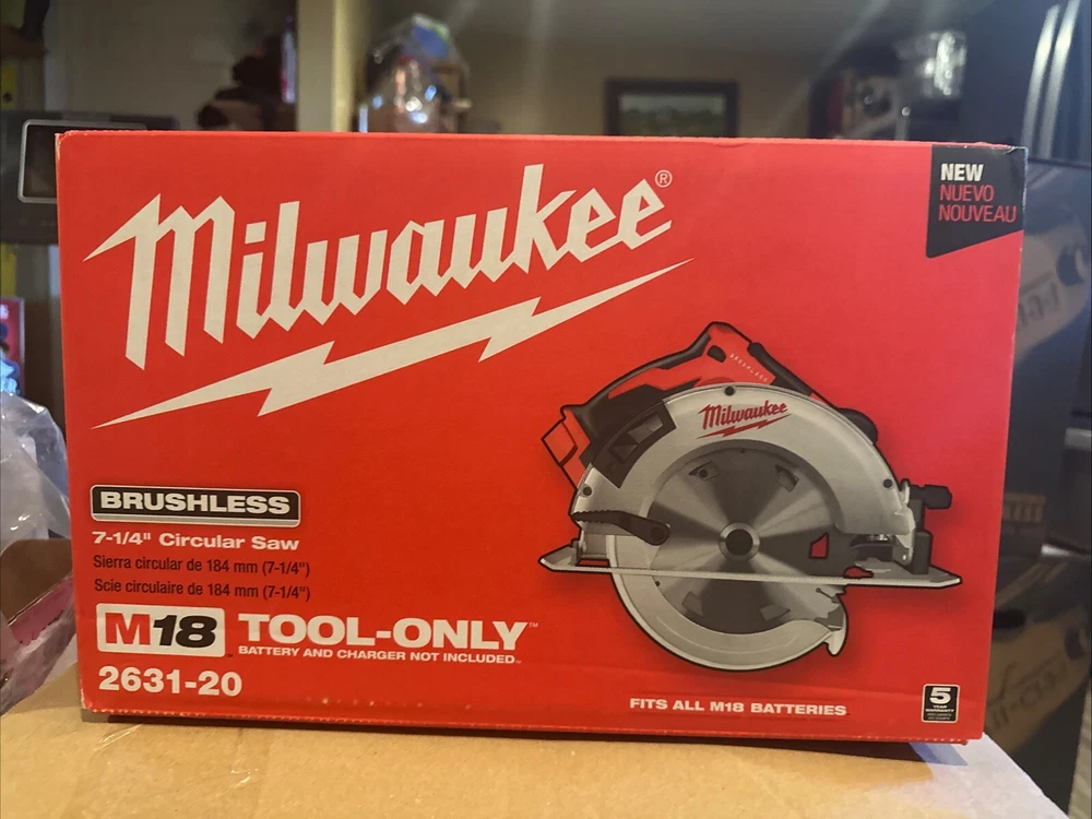 The M18 Brushless 7-1/4 in. Circular Saw delivers up to 40% more power than circular saws with brushed motors while providing up to 30% more run-time as well. The Milwaukee built motor, REDLINK electronics and REDLITHIUM XC5.0 battery provide more efficient power delivery, more power and fewer trips to the charger. With 5,000 RPM that 2631 provides smooth cutting and at only 9.0 lbs. It is lighter than most corded saws. The saw also features an integrated rafter hook, magnesium guards, an aluminum shoe and LED light. Highlights Up to 40% more power than brushed circular saws Up to 30% more run-time than circular brushed saws More durable than brushed circular saw Magnesium upper and lower guards for increased durability Milwaukee brushless motor: optimized for efficiency, this motor delivers over 30% more run-time and longer life than brushed motors, delivering 5,000 RPM for smooth, powerful cutting Redlink intelligence: advanced overload protection defends against abusive applications and monitors the temperature to prevent damage and ensure maximum tool and battery life Integrated folding rafter hook for easy storage 2-1/2 in. cut depth LED light for greater cutline visibility in low light situations Includes: M18 brushless 7-1/4 in. circular saw, blade and wrench