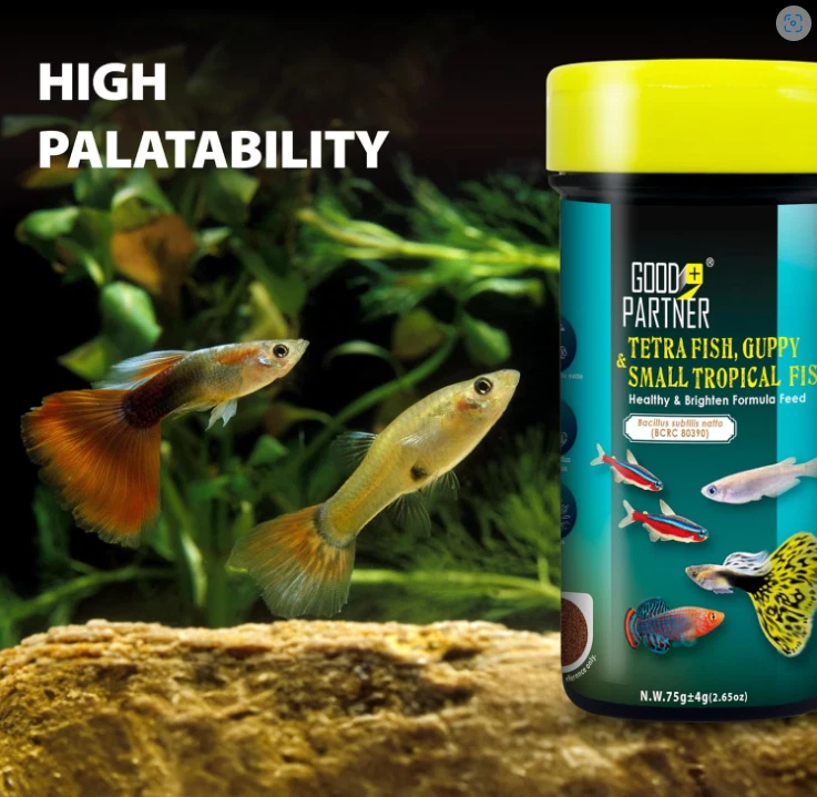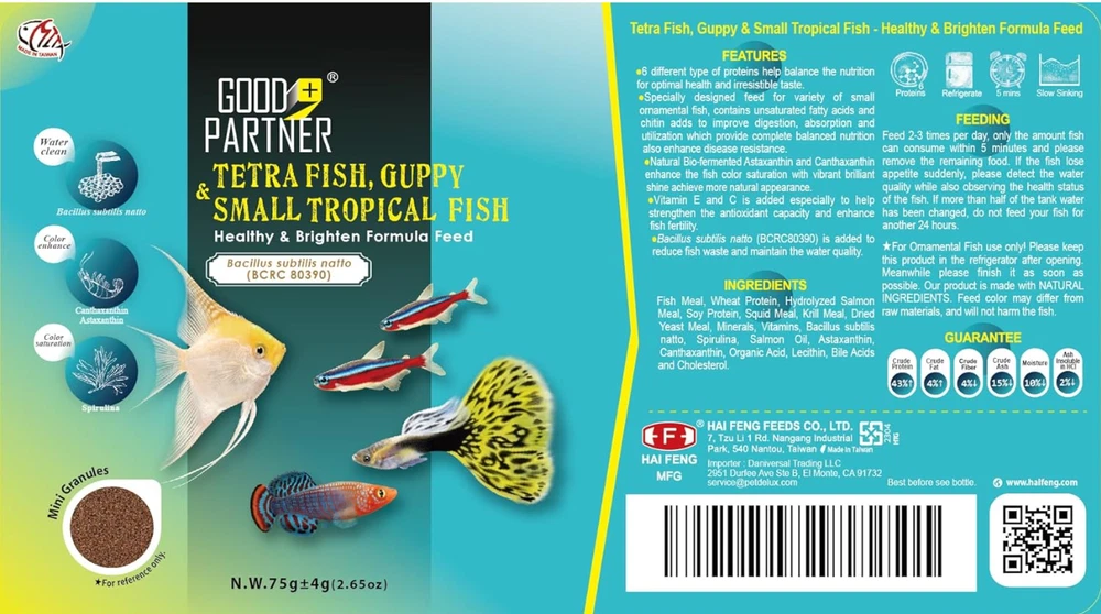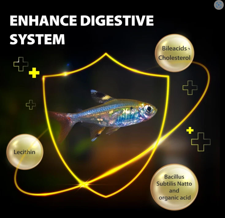 Crystal Clear Tank: With our small tropical fish food, you will see the positive effects on both the fish's healthy and water quality. Using our speciality feeds (Specially added probiotics---Bacillus subtilis natto sourced from Japanese natto) can create a good ecological cycle, which helps to reduce fish waste and maintain the water quality. Vivid scales: The one-stop-shop for vibrant colors and the long-term health of your fish. Our food provides the perfect balance of nutrients for your fish, promoting growth and the fish's beautiful color with brilliant shine. This gives fish even more attractive and vibrant appearance and helps to keep your fish healthy and thriving. High Palatability: Our product is formulated with high-grade fish meal, squid meal and salmon oil that stimulates fish's appetite for food, providing them with a balanced and nutritious diet. With this special formulation, your fish will have not just an enhanced appetite but improved health as well. You can be sure that your aquatic benthos is getting the nutrition they need in an enjoyable format. Strong digestive system: Our premium ingredients are easy to digest, making it an ideal choice for fish with sensitive stomachs. The addition of Bacillus subtilis natto can also help the fish have a healthy intestine, better digestion and absorption. Full of Energy: It is the perfect choice to support proper growth and enhance coloration. Nevertheless, that's not all - our unique blend of natural ingredients helps protect your fish's liver, so you won't just see the difference in their appearance - you'll feel it in their wellbeing! With us, you can be sure your fish will remain healthy and vibrant for years to come. Tips: Give your fish a little time to get used to their new food—whether it’s a different brand or shape, they would need to adjust over about a week."