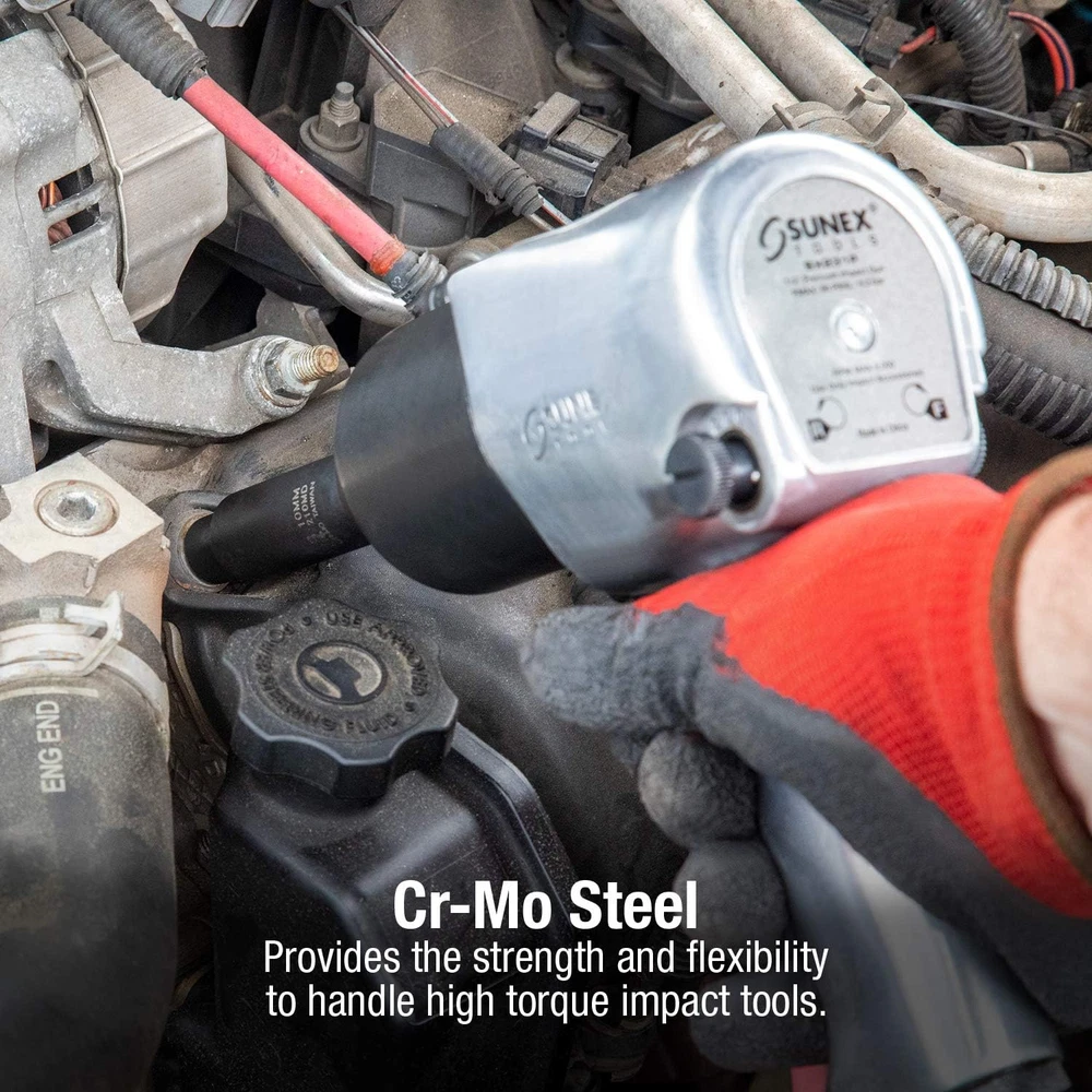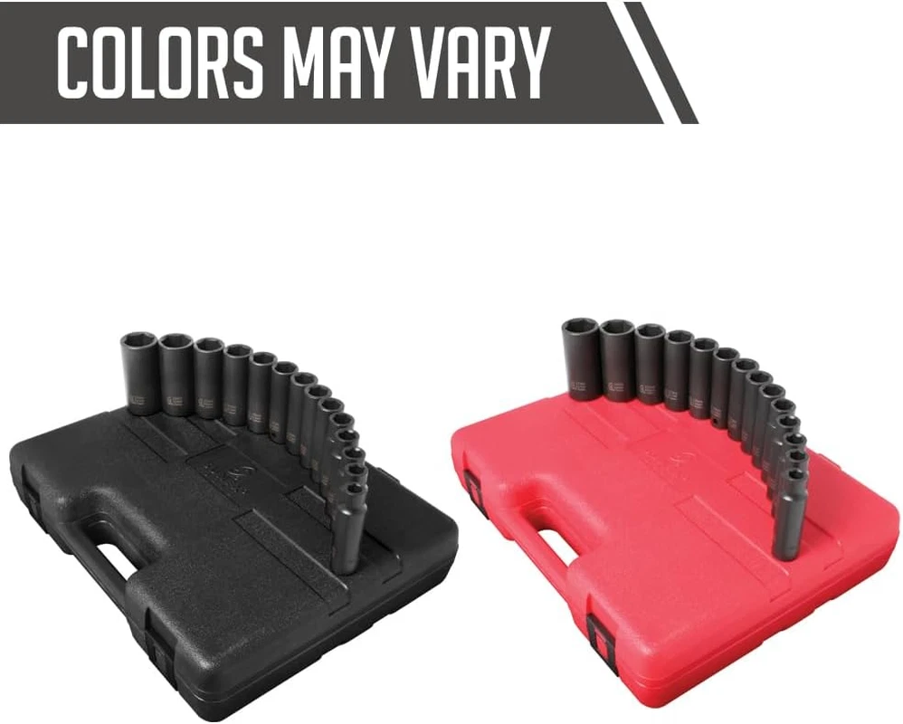 CR-MO alloy steel for long life Heavy duty blow molded storage case Includes most common metric sizes used for automotive repairs Metric - mm: 10, 11, 12, 13, 14, 15, 16, 17, 18, 19, 21, 22, 26, 27 From the Manufacturer This Sunex 1/2 inch drive deep 14 piece metric impact socket set includes the most common sizes used for automotive repair. It includes 14 metric sockets. It is made of CR-MO alloy steel for long life. It is fully guaranteed and includes a heavy duty blow molded storage case.