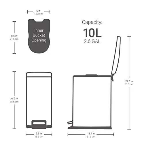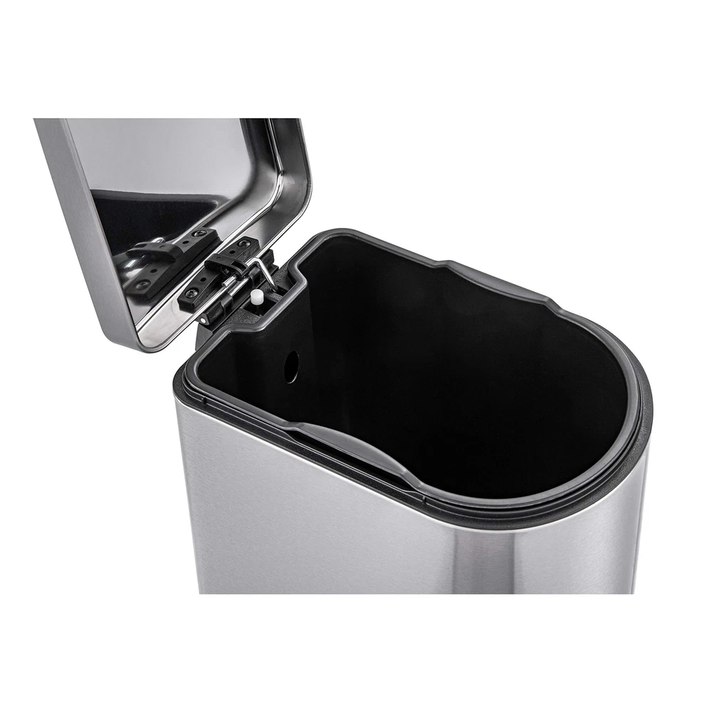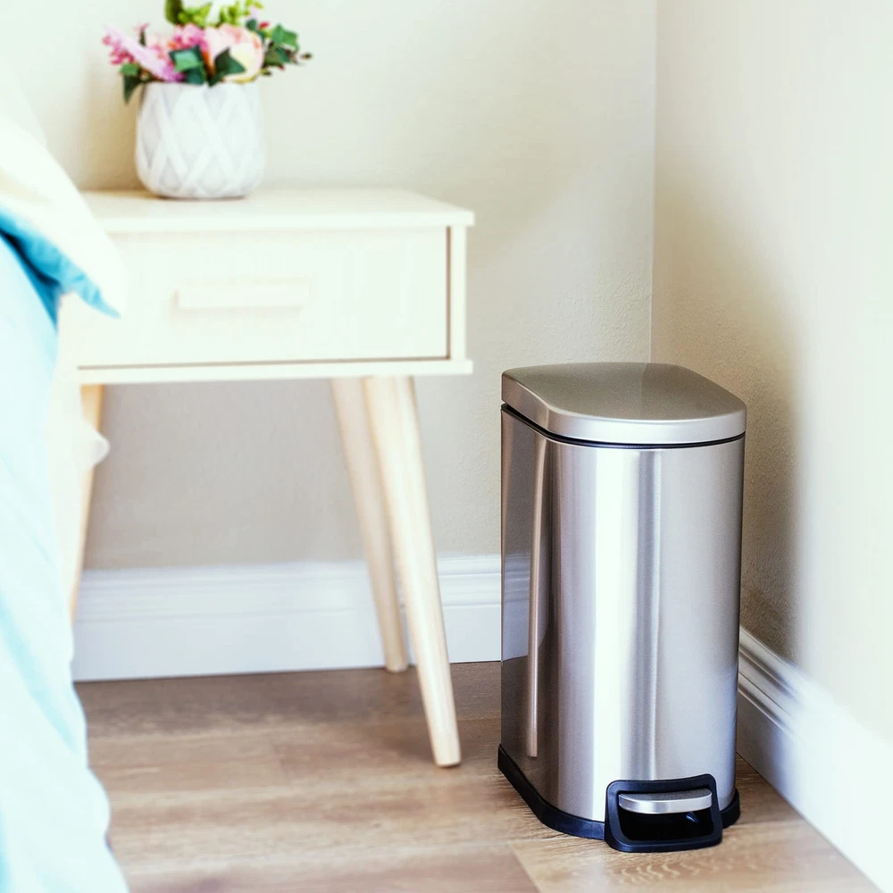 50L / 13Gal Fingerprint-Resistant Stainless Steel D Shape Step-On Trash Can OUR QUALITY: High-Quality 430 Stainless Steel and ABS Construted. Our Trashcan is Build to Last! Fingerprint and Smudge Resistant Coating Make Cleaning a Breeze. OUR CFRAFTSMANSHIP: Large, Wide Opening Area. Provides Easy Access for Daily Chore Work. OUR DESIGN: Modern, Stylish, Elegant, Completes and Show Case Your Home With This Missing Piece OUR VISION: Multi-Purpose, Suitable for Kitchen, Bath, School, Hotel, Airport, Construction Site, Office Space, Indoor/Outdoor, Boat, RV, and More. OUR PROMISE: 100% Satisfaction Backed by Dedicated Customer Support Team, Worry Free Defective at No Additional Charges to You.