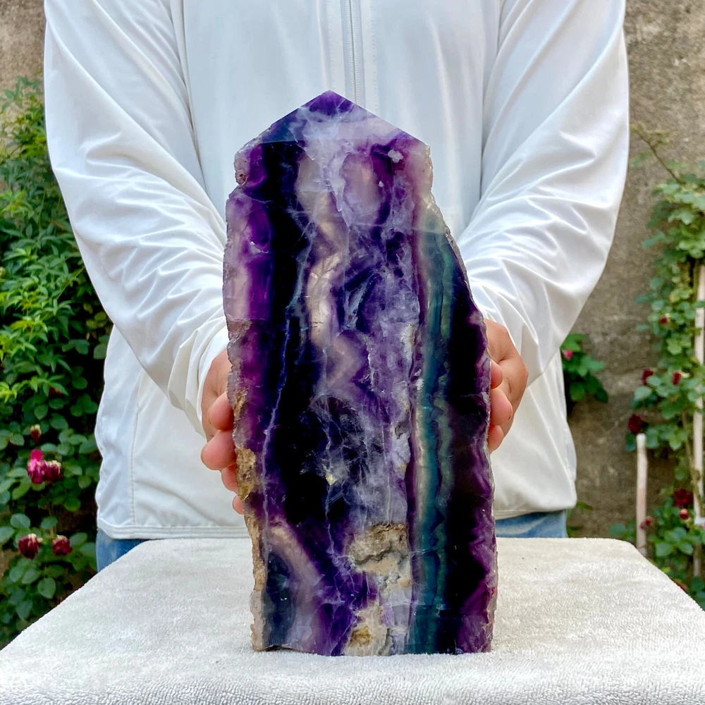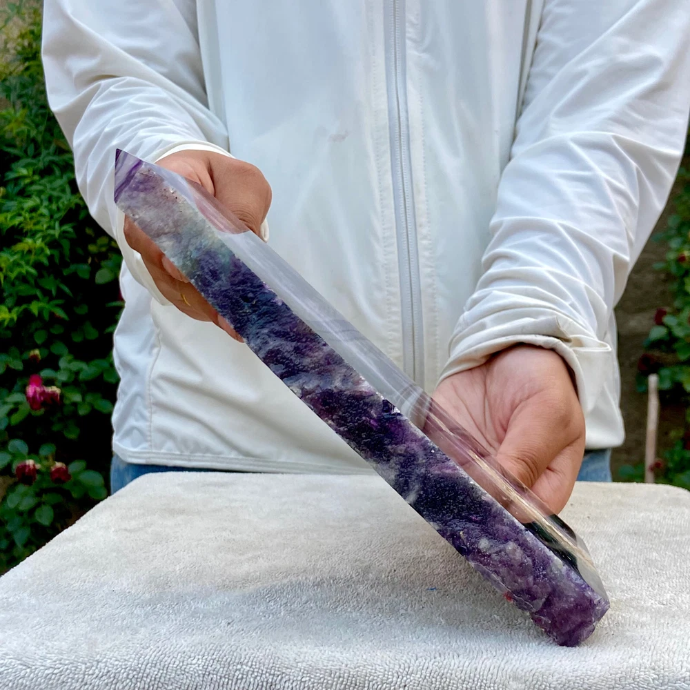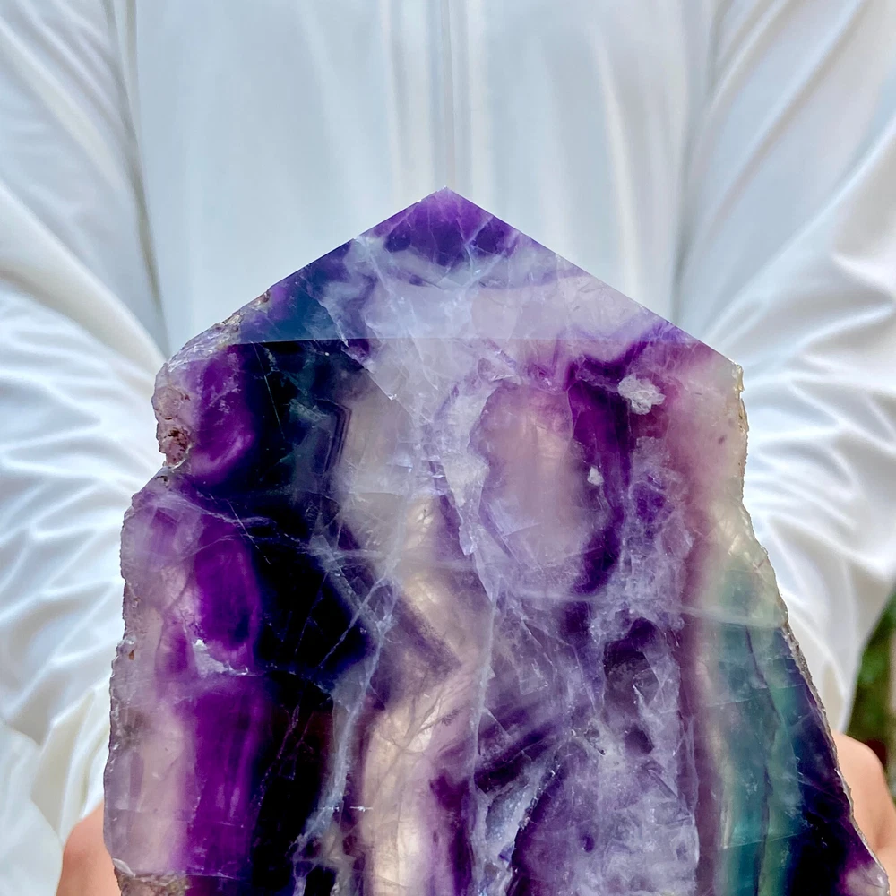 2.6LB Natural Rainbow Fluorite Obelisk Crystal Wand for Healing