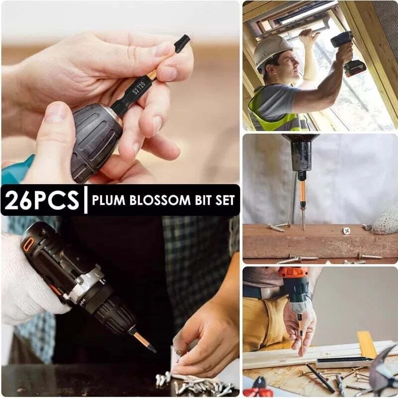 Product D escription 26PCS Torx S crewdriver Bit set W ith S afety R esistant 1/4" H ex S hank Product Characteristics High Q uality I ndustrial G rade M aterials: The Torx screwdriver bits are made of high-quality S2 alloy steel with a special heat treatment process to increase the torque and full hardness of the bit, which is more durable than ordinary hexagonal screw bits. The surface of the drill bit is treated with black phosphate, which effectively prevents rust and corrosion and greatly improves its service life. High P recision M achining T echnology: The product adopts CNC precision machining technology to ensure the accuracy of the product, so that the drill can withstand the instantaneous impact of large torque pneumatic tools, which greatly improves the service life of the product itself. Magnetic: The magnetic Torx screw drill set can quickly and easily adsorb screws, greatly improving your work efficiency. Repeated use does not diminish the magnetic force. Suitable F or A V ariety O f P ower T ools: The 1/4 size hexagonal shank allows it to accommodate a wide range of power tools, allowing you to quickly change chucks. Suitable for electric drill, air drill, electric screwdriver, manual screwdriver and so on. A W ide R ange O f U se S cenarios: Can be widely used in automobile, home and so on maintenance, can also be used in other screw drive. Product Specification Status: 100% Brand New Name: 26PCS Torx S crewdriver B it BST-129 Material: S2 A lloy S teel Length: 2"/50mm; 1"/25mm Shank T ype: 1/4" H ex S hank Color: Black + O range Surface T reatment: B lack Drill S hape: 1"/25mm M id- H ole P lum B lossom T ype; 2"/50mm P lum P attern Specifications: 2"/50mm: T7,T8,T9,T10,T15,T20,T20,T25,T25,T27,T30,T35,T40 1"/25mm: TT7,TT8,TT9,TT10,TT15,TT20,TT20,TT25,TT25,TT27,TT30,TT35,TT40 Package Included 13PCS × 1"/25mm Torx S crewdriver Bit S et 13PCS × 2"/50mm Torx S crewdriver Bit S et Attention P lease 1. Please allow manual measurement error of 1-5mm. Make sure you don't mind before you buy. There may be some slight differences in the hue of the picture and the actual item due to lighting effects, brightness contrast Settings of the monitor, etc. Make sure you don't mind. 3. Due to the aperture of the drill bit and the structure of the product itself, the speed of the T7,T8,TT7,TT8 drill bit is recommended to be controlled at 180r/min during use, so as to avoid the wear of the drill bit caused by too fast speed.