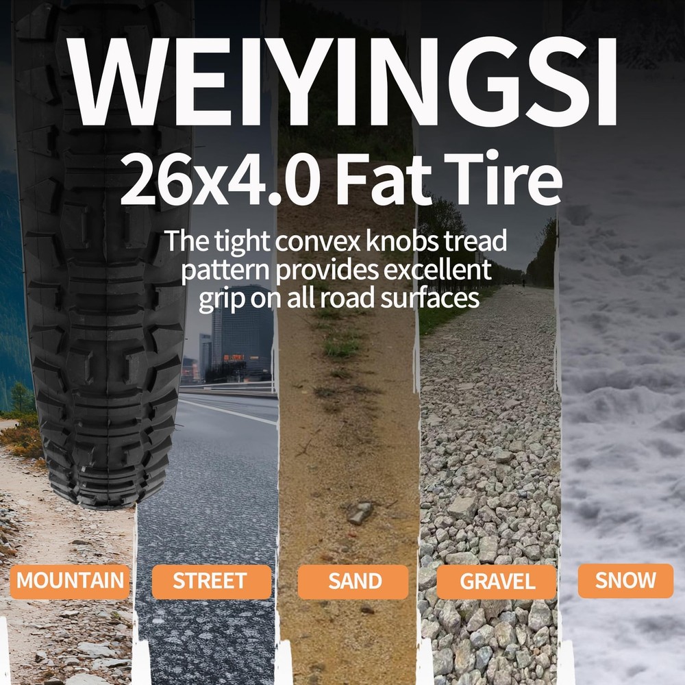 These fat tires are a game-changer for off-road adventures! The heavy-duty construction grips snow, sand, and trails effortlessly while the puncture-resistant tech gives peace of mind. Perfect upgrade for e-bikes or mountain bikes—durable, stable, and ready for any terrain. Installation was smooth, and they roll like a dream. Highly recommend for riders who want performance and reliability!