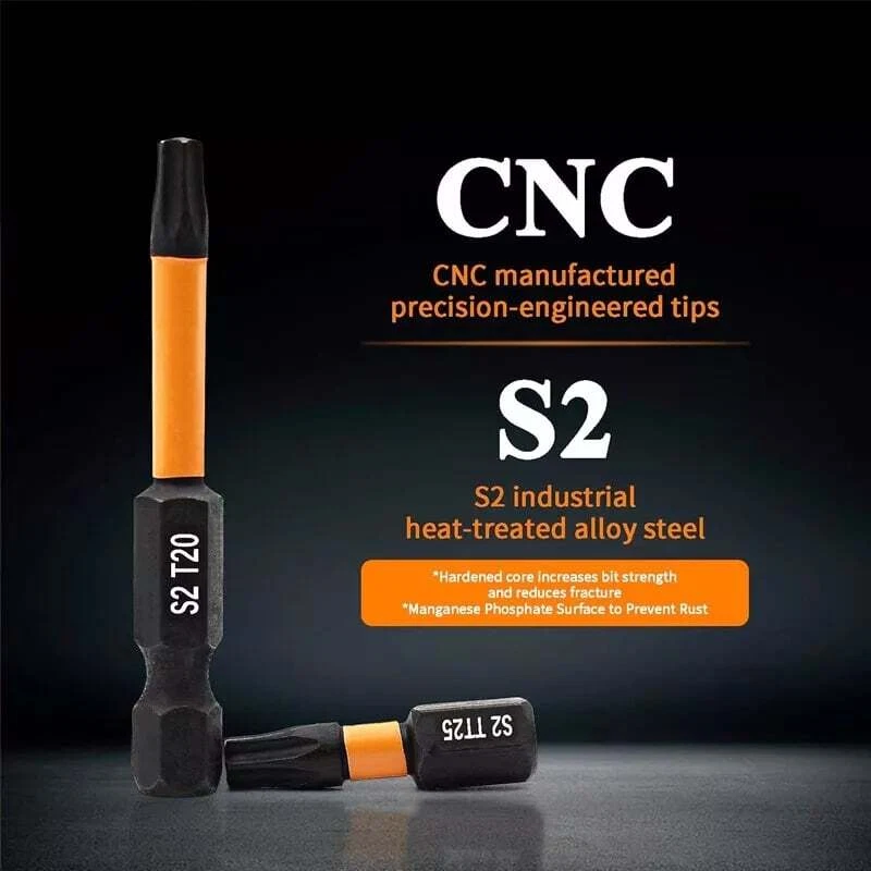 1. This torx bit set is a game-changer! The S2 alloy steel makes them super durable, and they grip screws tightly without stripping. Love the variety of sizes (T7-T40) and the two lengths—perfect for different jobs. The tamper-resistant middle hole bits are a smart addition. The 1/4" hex shank fits most drills securely. The black and orange design looks sleek, and the sturdy case keeps everything organized. Whether you're a pro or a DIYer, these bits deliver precision and strength. Highly recommend for anyone needing reliable torx bits at a great price!