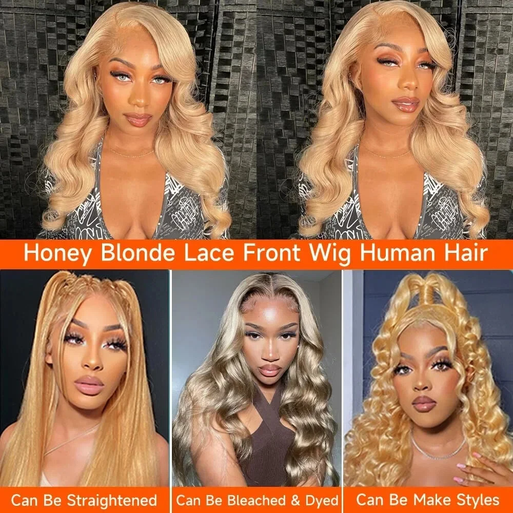 Product Information: Name: Honey Blonde Human Hair Wig Lace Size: 13X4 13x6 Lace Wig Density: 180% 200% Wig Parting: Free Parting Hair Color: Chocolate Brown Cap Size: Medium Size Hairline: Pre Plucked Lace Color: Medium Brown Shipping Time: 3-5 Days worldwide Free Shipping