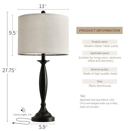 Menu 1. We require immediate payment. 2. We currently accept payment via eBay managed payments only. 3. Once payment is cleared, we will dispatch your shipment within 1-3 business days. Please refer to the "Shipping" tab for more information regarding shipping speed to your destination. 27" Modern Table Lamps Set of 2 for Living Room Bedroom with USB A+C Charging Port,Brushed Steel Bedside Lamps for Night Stands,Fabric Drum Shade Nightstand Lamp Light for End Tables Home Product description USB Table Lamps: Each modern nightstand lamp contains one 5V/2A USB charging port, regardless of whether the lamp is on/off, Table lamp set 2 is very easy to charge your electric device, such as mobile phone, kindle readers, iPad, iPhone. No need to search around for wall socket to charge anymore. Minimalist &Modern Design: The set of 2 bedside lamps are constructed of high-quality silver metal base and linen fabric lamp shades that provide a modern feeling aesthetic. Table lamp for living room is perfect in living room bedrooms, bedside, café, corridors, restaurants, etc. It displays a warm and beautiful atmosp to a room.(Note: The shade needs to be assembled) Easy Charge with USB A+C Ports:The table lamps with usb ports is constructed of high quality resin that creates the USB A+C Charging Ports - With built-in dual fast USB charging ports, it is more convenient to charge your devices such as smart phone, iPad, kindle reader, Airpods no matter the light is on or off. Farewell to the Charging sockets which far away from your bed or table. Safe and convenient: The assembly of the bedroom lamp is very simple, as long as the content of the manual can be installed in a few minutes. In addition, the power cord and plug of each living room lamps are nationally recognized safety standards and can be used with confidence. No Worry Product: The lamp for bedroom comes with 1 years aftersale. We are 100% dedicated to your complete satisfaction with our table lamp for bedroom. PLEASE MESSAGE US IF YOU HAVE ANY OTHER QUESTIONS, AND MANY THANKS FOR READING ALL OF THIS. Copyright ©#. All Rights Reserved.