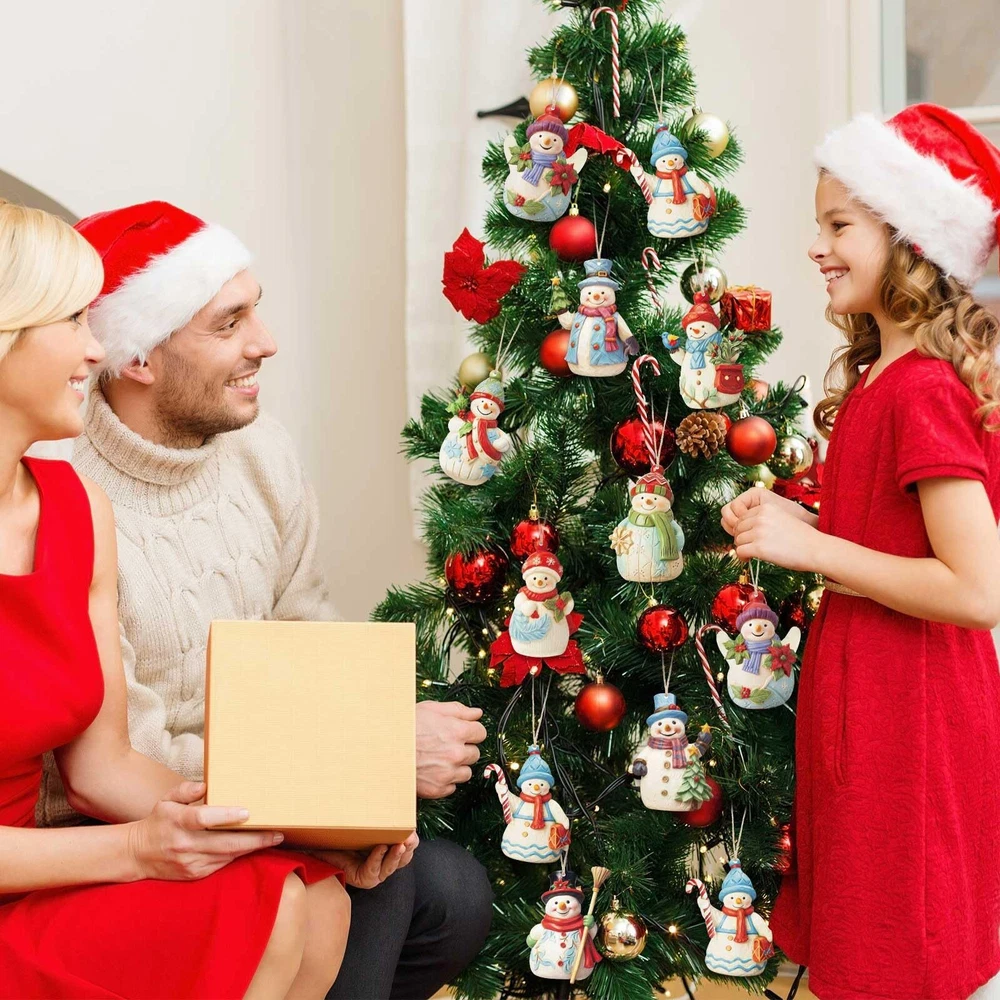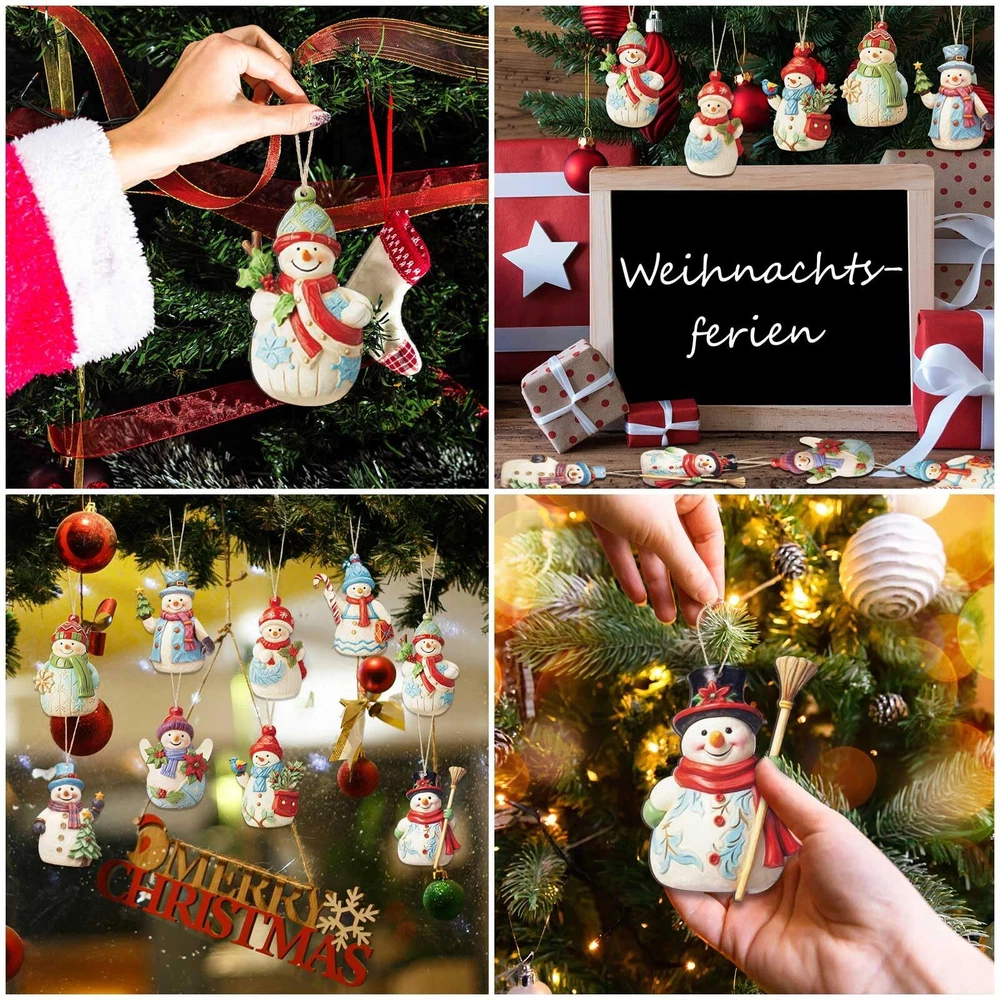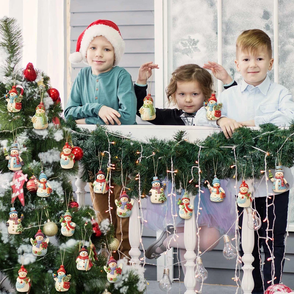 27 Pcs Snowman Christmas Decorations Wooden Christmas Ornaments Set Snowman F...