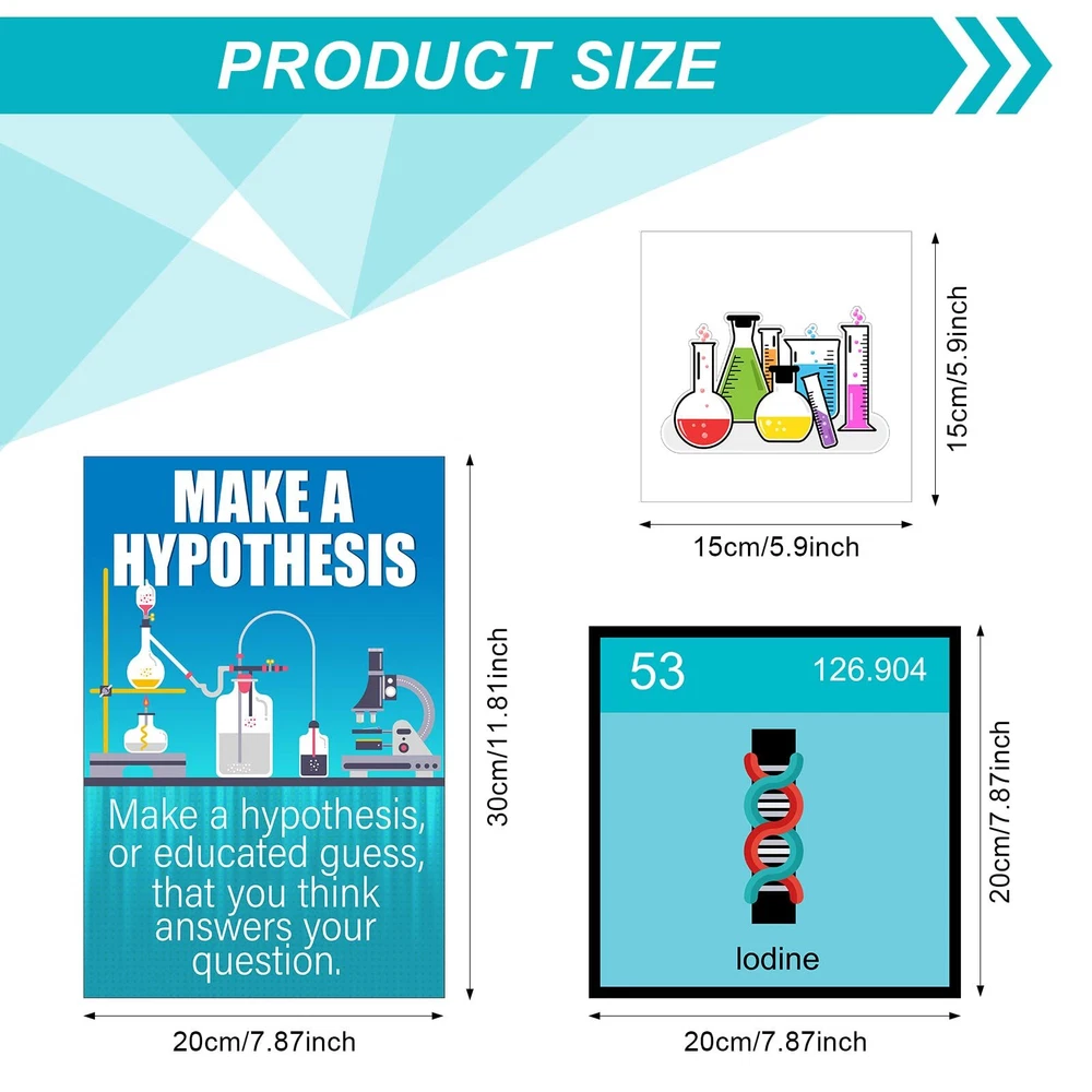Features: Nice present choice: Classroom science lab bulletin board sets can not only be applied for creating different classroom projects on walls, chalkboards, bulletin boards, doors and hallways, but also suitable for party decoration and stage performance, game supplies. Easy to apply: An ideal science classroom decoration for an elementary school, early middle school, or science classroom, our colorful and science classroom banner is a nice addition to any teacher's supply. Specifications: Material: 300 g cardboard Color: as pictures shown Size: as pictures shown Package includes: 27 x Science bulletin board set Notes: Manual measurement, please allow slight errors on size. The colors may exist a slight difference due to different screens. Wide Application: science bulletin board is suitable for creating personalized classroom projects on bulletin boards, windows, chalkboards, and hallways; These science cutouts can be applied as decorations in classroom, office, party and so on Classroom Decorations: the science posters for classroom is a nice solution for increasing their curiosity about the world and stimulating a positive attitude and creative imagination, easy to show the thinking of science, providing a delightful visual reference for early learners Exquisite Design: these science bulletin board borders are designed in multi colors with vivid patterns and clear characters, which can attract the attention of students and help them be more interested in the world, leaving deep impressions Quality Material: science bulletin board decoration is made of 300 g cardboard, which is sturdy and can be applied over and over again, reliable and has no odd smell, printed with patterns like microscopes, U shaped magnet, light bulb, etc., looking so exquisite and vivid, easy to catch the eyes, it also can be applied to explore science knowledge with family and friends together Package Includes: the science classroom decor includes 5 piece of science posters, 6 pieces vertical posters, 16 pieces science cutouts, coming with 4 sheets of glue points,science posters are bright and colorful, which will be a big hit for your classroom; Science poster is 7.8 x 11.8 inch, make sure the size before buying