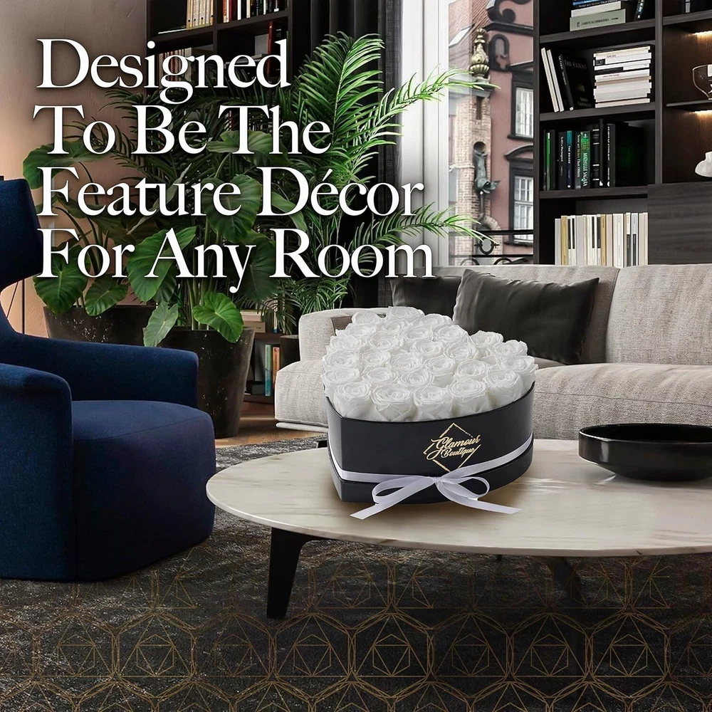 27 Preserved Roses in a Heart Box - Flowers Forever Valentine's Day, Roses Forever for Women, Roses Forever in a Box for Delivery, Birthday Gifts for Her, White Timeless Elegance in Every Box - Encased in a beautifully crafted heart-shaped box, our preserved flowers are meticulously arranged to create a stunning display of eternal beauty and love. Crafted to Last for s - Made from real roses using a premium preservation process, these preserved roses bouquet retain its natural charm for up to 3 s. Hassle-Free Maintenance - No water, sunlight, or upkeep required! These roses forever birthday gifts for women maintain their vibrancy and elegance, making it an excellent long-lasting gift or centerpiece. Versatile Colors & Arrangements - Choose from a variety of roses in a box sizes (7, 16, 27, or 50 roses) and elegant colors like Red, Blue, Pink, Tiffany, and more to suit any occasion or indoor style. An Exceptional Gift Idea - Delight your loved ones with roses, a luxurious symbol of everlasting love. Ideal flowers roses forever in a box for Valentine's Day, Mother's Day, weddings, anniversaries, birthdays, or as home decor.