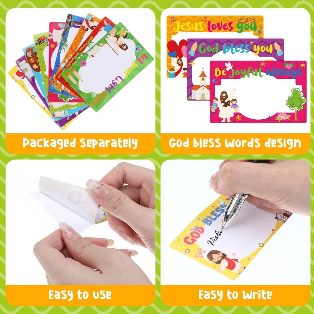 Feature: Cristian name tag stickers: All of these paper bible verse name tags are designed with god blessing words, which makes them have more meaningful and blessing than other name tag stickers. Various occasions: These Jesus name tags labels can not only be applied for writing name, but also can be applied for tagged items. You can give them to your student and let them write their names on them. After that, you can stick them on the bag, desk and anywhere. Specifications: Quantity: 270 pieces Color: colorful Material: paper Size: 3.5 x 2.24 inch/ 8.9 x 5.7 cm Package include: 270 x God bless name stickers Warm note: Manual measurement, there may be slight differences in size. Due to the screen display, the color of the item may differ slightly from the picture. Jesus Name Tags in Bulk: the package includes 270 pcs self adhesive god desk name tag as Sunday school prizes; You can give those cute religious name tags desk to kids. Nice classroom name tag choice God Blessing Design: these writable Christian name stickers are special for Sunday school gift for kids, there are cross, Jesus, angel, flowers, bible on the bible verse name tag stickers; prints include [god bless you], [Jesus is my BFF], [Jesus loves you] on the religious name tags. Easy to Use : these god bless name tags for classroom can stick well to most surfaces such as desks, school bags, stationery, chairs, clothes, cups and more;making you a comfortable using experience, nice catholic gifts for kids Multi Purposes: these motivational name tags stickers can use them as student name tags, gifts tags, items stickers, child ID bag tags, work badge and so on Easy to Use: the size of ours inspirational name sticker labels is about 3.5 x 2.24 inch/ 8.9 x 5.7 cm, which can provide enough space for you to write; Different from others name tags for desk, each Jesus name tag is separated, so it is easy to take or distribute; The god name tags are suitable for home, school, classroom, party, church and more