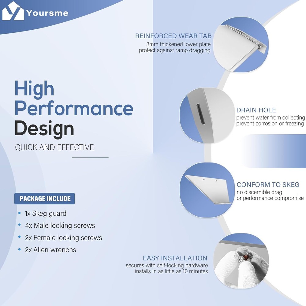 27021 Skeg Guard Skeg Protector Kit Replacement for Mercury Mercruiser Alpha I 1985-1990, Marine-Grade Stainless Steel 【Widely Fitment】 Directly replaces OEM Part number 27021, Fit for Mercury Mercruiser Alpha I 1985-1990, providing reliable protection for the skeg against the harsh ocean environment. 【Ultimate Skeg Protection】 Designed to be installed over the engine's original skeg. It provides ultimate protection for your skeg, whether you want to safeguard a new skeg from damage or repair an impact-damaged or chipped skeg for improved performance. 【Professional Design】 The Skeg Protector Kit features a 3mm thickened lower wear tab, preventing dragging on ramps and ensuring optimal performance during river riding. Additionally, it includes a drain hole at the bottom to prevent corrosion and freezing. 【Durable Material】 Constructed from mirror-polished 18-gauge marine-grade 316 stainless steel, the Skeg Guard is built to withstand the elements and provide long-lasting protection. 【Easy Installation】 Secures with self-locking hardware and installs in as little as 10 minutes. It can be installed with as little as 2-3 inches of skeg remaining, suitable for repairing a broken skeg. The package includes male and female locking screws, as well as an allen wrench for convenient installation. CONTACT US: If you meet any problem after receiving our product, please feel free to contact us. We will try our best to solve your problem. SHIPPING POLICY: Orders will be ship out within 1-2 business days after payment has cleared. Orders from Saturdays, Sundays or holidays will process on next business day and will be ship within 24 hours. Please allow 10-30 days for international deliveries. Some shipments could take longer subject to your local customs authorities. RETURE & WARRANTY: 1 We accept 30 days return guarantee for all Items If you are unsatisfied with something you bought from us, you may send it back within 30 days of receipt, and we shall be happy to exchange or refund. 2 Leave a message note in returned box quoting your item(s) ID and buyer ID. 3 All returned products must be in their original condition and packaging. Unfortunately, if products have been assembled or modified, we cannot take them as returns. 4 It is important that we know when your return is expected. Please save your return tracking number or post receipt, and email it to us. We need this in case there are any issues during transit. 5 Refund will only be issued upon our receipt of the returned parcel. Please allow 2 working days for us to process with your return. ABOUT REPLY: If you have any questions, please feel free to email our service specialists 24 Hours a Day, 7 Days a Week, and we will reply you ASAP. If no response within 24 Hours, please check the spam of mail box or kindly re-send it to us. ABOUT FEEDBACK: Please contact us before leaving Netural or Negative feedback if you are not satisfied our service or products. Good communication is helpful for both of us to resolve any problems and issues. We work hard to make sure EVERY CUSTOMER 100% SATISFIED and resolve any problem for you and always leave positive feedback to all our customers. If you are satisfied with our service, please leave FOUR 5-Detailed Selling Rating (DSR). Thanks!