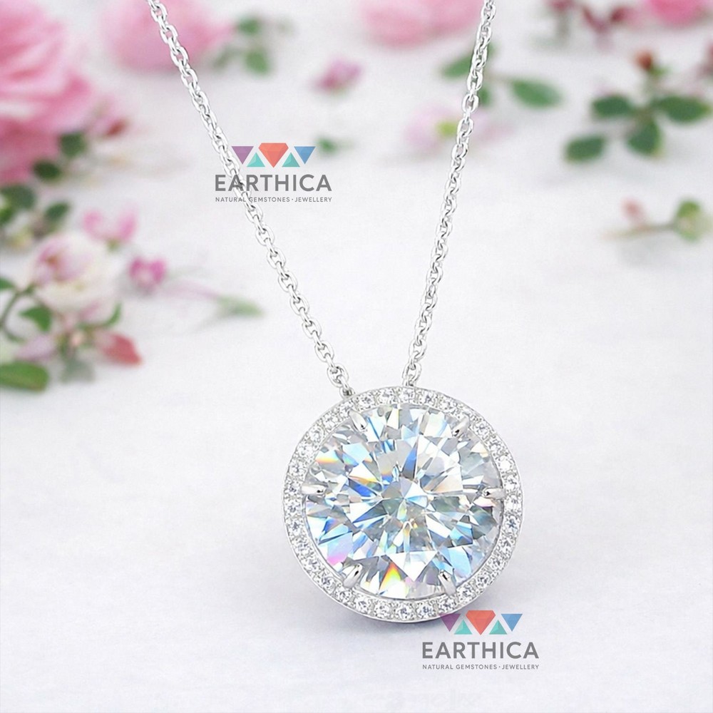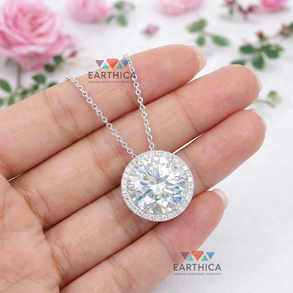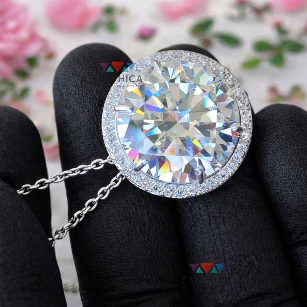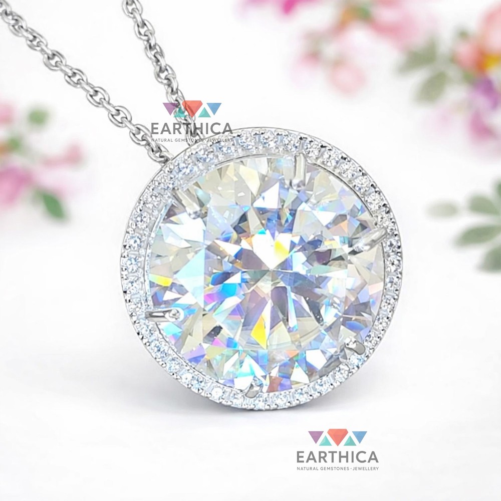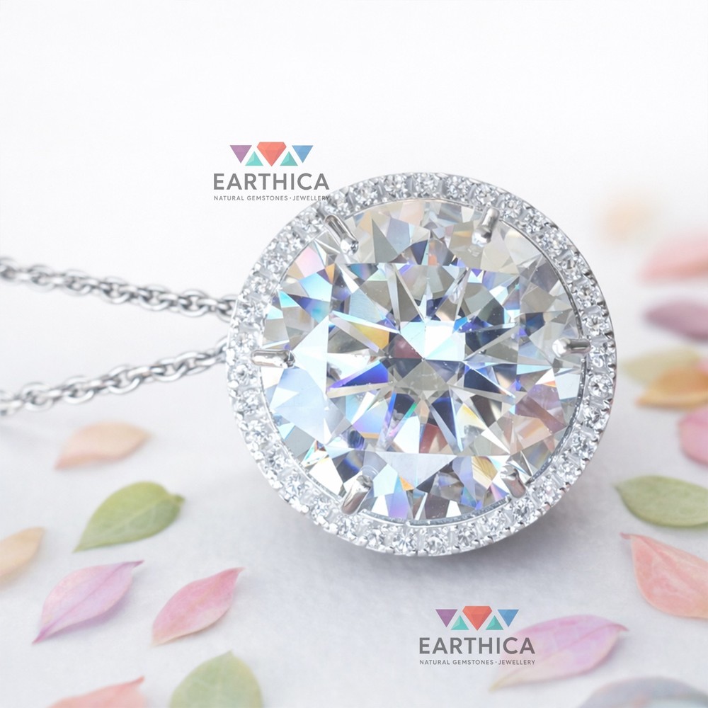 Treated White Diamond • Luxury Grade Round PRong Pendant Stamped Solid 925 Sterling Silver - White Finish Specifications Total Carat Weight 27.35 CT Size 20 MM Shape / Cut Round Color White Metal Stamped Solid 925 Sterling Silver (White Finish) Treatment HPHT Species Earth Mined Origin Diamond Brazil Clarity VVS1 Diamond Geological Properties These are genuine Diamonds found naturally mines mainly from Brazil. They are more porous than White Diamonds and are found in the upper layers of the ground relative to the White Diamonds that are mined deep. Some scientists are of the opinion that their origin maybe a Meteor that impacted earth Billions of years ago. What is their nature? Colored Diamonds are not found in the state as they are sold. They are made from earth mined rough rock found in mines of Brazil. The Rock color varies from Light Blue, Dark Blue, Champagne, Pink, Green etc. What is the treatment process? To bring out its true color it needs to be treated. The process is a natural one employing gentle heating a high-pressure environment (HPHT) which gradually brings out the true color of the Diamond. Are any artificial colors or chemicals added? There are no artificial colors or chemicals included in the process. They are not irradiated. Does it alter the composition? The process may or may not alter the composition. It remains a true Diamond nevertheless. Once our diamonds are heat-treated, it may move the molecules. This causes them to not always test properly with a hand tester. If a hand tester is used, sometimes they test as diamonds and sometimes they test as Moissanite. But they are genuine earth mined diamonds, not Moissanite or CZ. If you use a jeweler's loop you can see this by their molecular composition. How does it differ from a Moissanite? A Moissanite is man-made whereas our Diamonds are earth-mined. A Moissanite will lose its shine and wither away in a short period whereas a Diamond will remain as they are forever. What if I have doubts about their authenticity? You can always message us in case you still want any more details or clarifications. Once purchased we will understand that you have read and understood the details about these Diamonds and thus, we will be unable to accept returns for this reason. What Guarantee do you offer? We offer full100% Money Back Guaranteed in case of any manufacturing defect. Please also refer to the Refund Policy as mentioned our item listing. Mineral Information - Diamond Chemical Composition - Carbon (C) Color - D to J (Colorless to Near-Colorless) Hardness - 10 (Mohs Scale) Specific Gravity - 3.52 Refractive Index - 2.417 Shipping & Handling Handling Time - Jewelry items can take up to 10-12 business days to process to take care of ring sizing if any, polishing, finishing, packing and handling, certification, documentation etc. USA Shipping - Shipping is by UPS/SPEEDPOST/FEDEX or similar shipping agencies to reach you in 9-15 business days after processing the order. Tracking is provided. International Shipping - Estimated 09–15 business days Payments We accept payments exclusively through Payoneer . Orders are processed only after full payment is deposited and cleared. Please ensure your Payoneer account is active and funded before purchasing. Return Policy Return Period - 30 days from delivery Condition - Must be unused, undamaged & in original packaging Refund Time - Issued within 07-15 business days after inspection Return Shipping - Buyer pays return shipping Duties & Taxes Import duties, VAT, customs fees, or any destination country taxes are the buyer’s responsibility. Please check your country’s rules before purchase. Why Buy From Earthica Natural gemstones • Transparent grading • Custom jewelry options 5★ Rated Seller Insured Shipping Expert Gemologist Support Message Us for Custom Jewelry © 2025 Earthica . All Rights Reserved. All gemstone images, product descriptions, and layout design are intellectual property of Earthica. Unauthorized copying or redistribution is strictly prohibited under international copyright law.