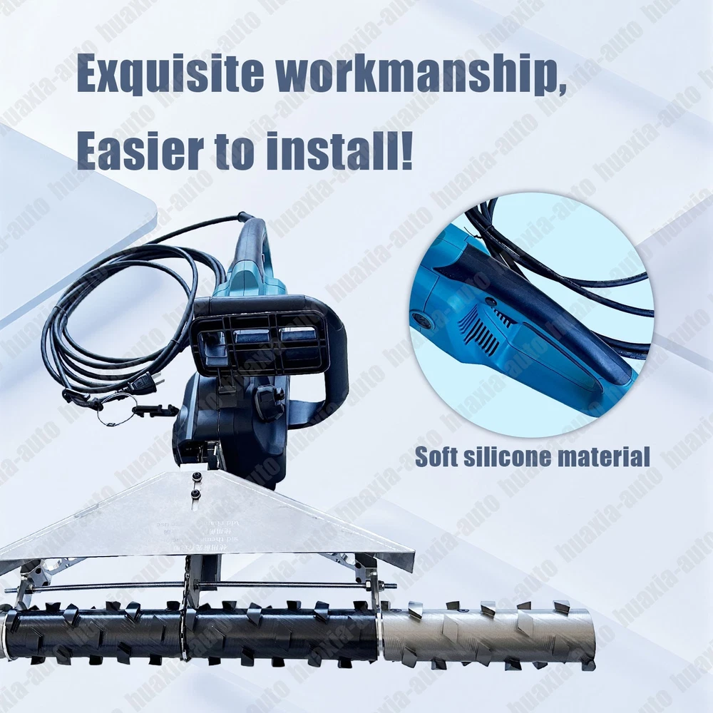 Close Cell Foam Planer 27.5" Foam Planer Insulation Trimming Equipment 110V/220V The wall after the polyurethane coating is not clean, this tool can make the wall clean and tidy. Trim corners quickly and easily. By running the head directly on the stud, it also uses its swivel head to feed itself into the wall. This can minimize the amount of work required to operate the trimmer if used properly. Operation way: 1. Use your both hands and firmly grips boths handles of the power and the cutter head. 2. start by completely trimmings the bottom two feet of the wall so you can avoid running the cutter bar through a pile of trimmings,and possibly cutting a hidden power cordmor hitting other obstacles. 3. do not runn the cutter over the edges of the steel hangers or braces. as the power and speed needed to cut foam quicly may cause the ridged edges ot tear off the cutter teeth. 4. To use the cutter eaiser and clener,run it up the wall with the cutter turnung and taking a light cut. 5.Use the small ,drill powered cutter to trim around receptacles,hangers and other tight places. Package Include : 1 set X polyurethane foam cutter machine planer 1 A pair of gloves