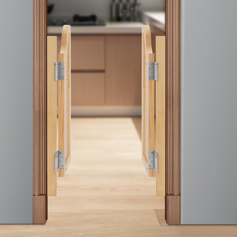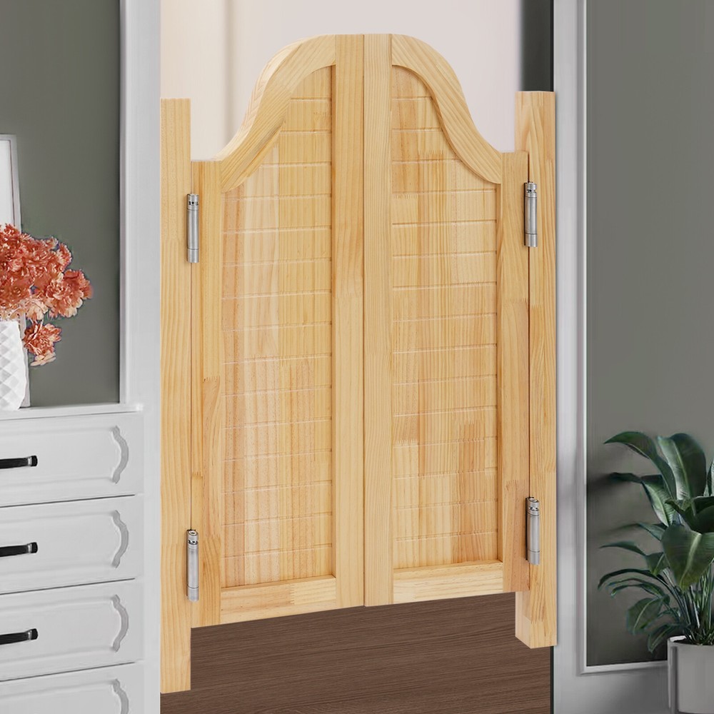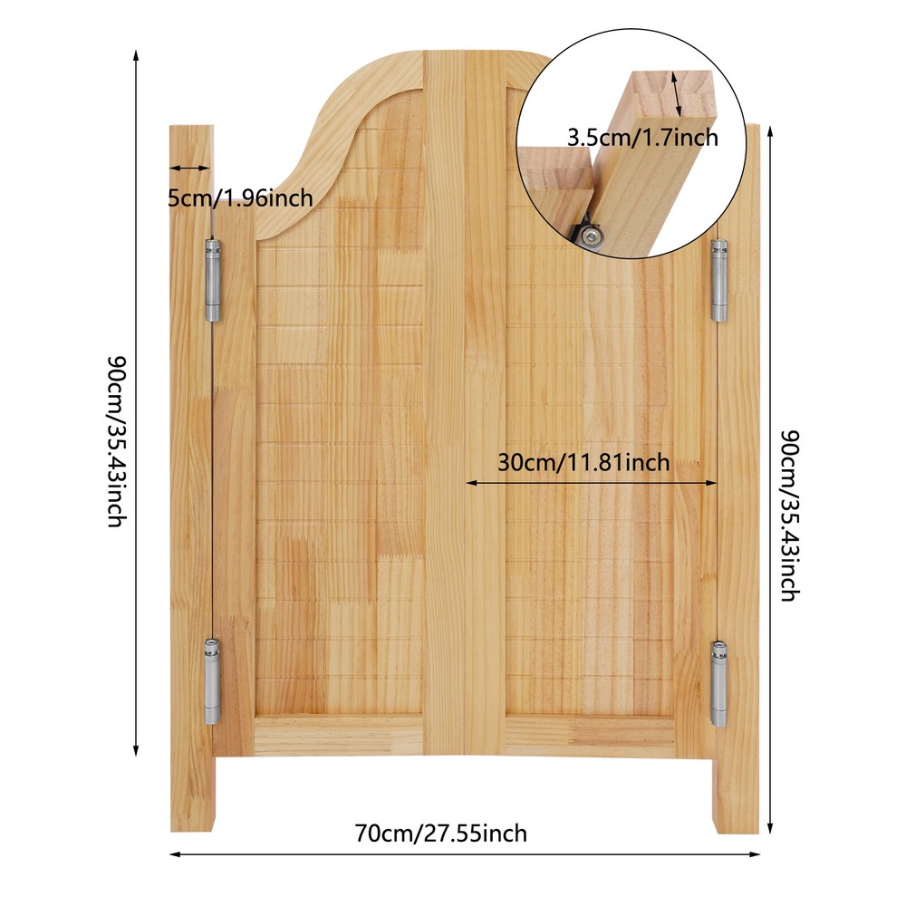 Product Size(L*H): 70*90cm/27.55*35.43in Mount Type: Door-mounted Number of Doors: 2 Opening and Closing Angle: 180° Process: Painting Thickness: 35mm/1.38in Each Doorpost Size(L*W): 5*3.5cm/1.96*1.37in gtin13: Does not apply Package Size: 92*37*10cm/36.22*14.57*3.94in Gross Weight: 10kg/22.05lbs Assembly Required: Yes Brand: Unbranded Style: Modern Net Weight: 9.5kg/20.94lbs Pattern Type: Horizontal Stripe UPC: Does not apply Material: Pine Wood, Stainless Steel Color: Log Color Each Door Size(L*H): 30*90cm/11.81*35.43in