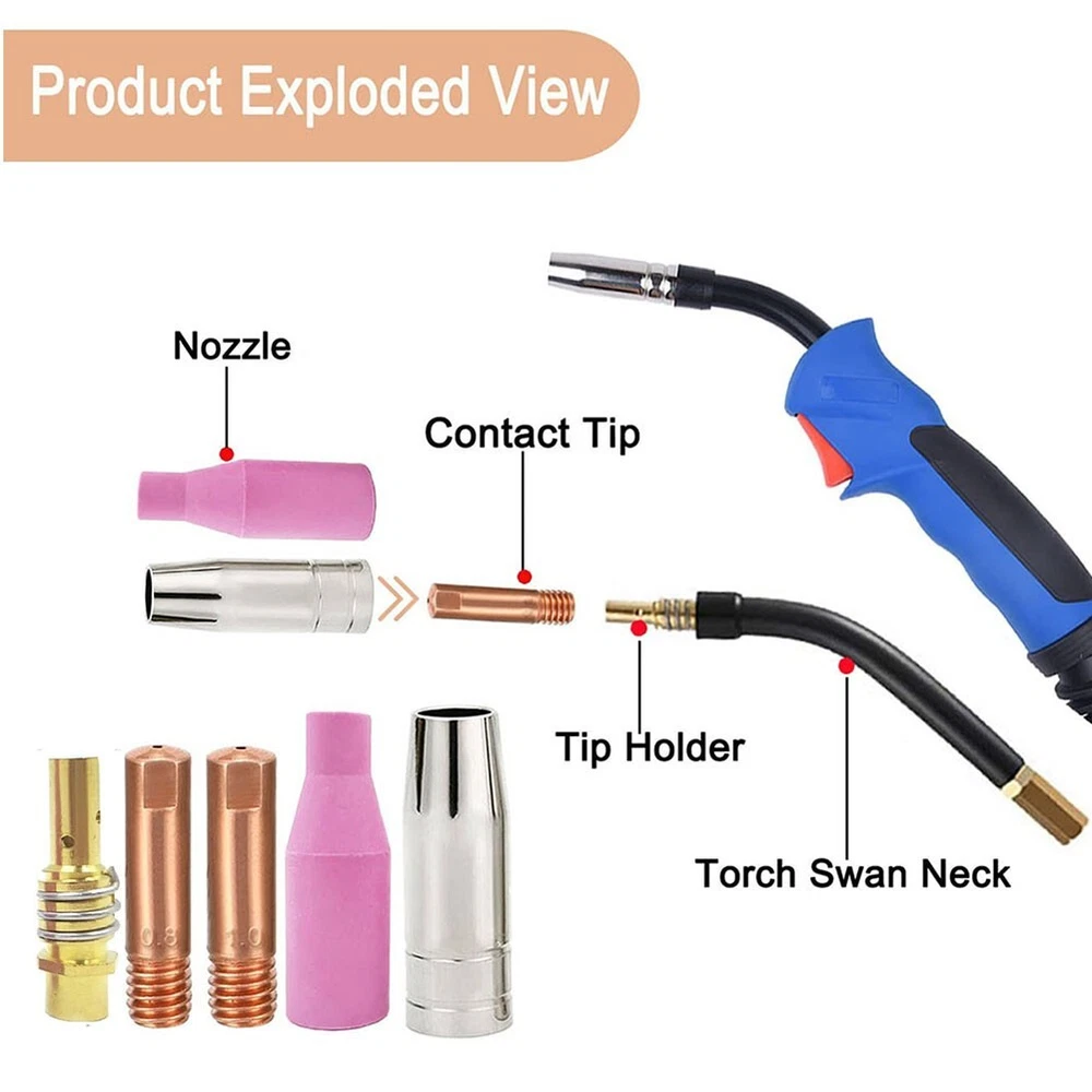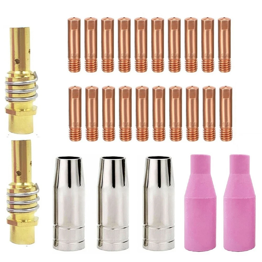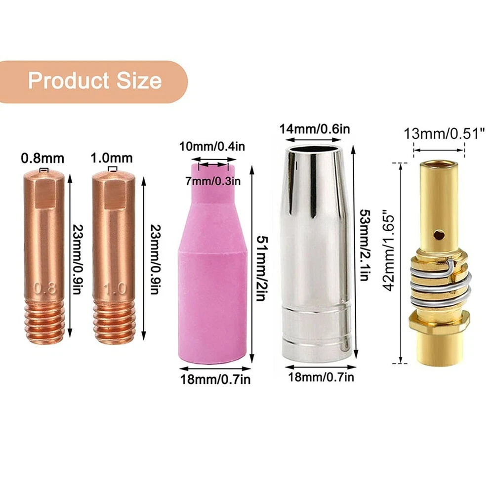 Product Description Features: *Compatibility: This product is designed to be compatible for MIG for MAG welding torches for AK15, for MB15, and for 14AK, as well as for HITBOX welding machines including for MIG200, for MIG250, for MT2000, and for HBM1200. *Quality Materials: The torch accessory is constructed from good-quality metal and copper, providing excellent heat resistance for long-lasting use. *Easy Installation: The components can be easily assembled on the burner without the need for special tools, making installation straightforward, convenient, and quick for users. *Good Components: The accessories offer outstanding thermal properties, with high temperature resistance. Their strong texture ensures a long service life, effectively meeting work demands and facilitating smoother operations. *Package Contents: The package includes 10 contact tips (0.8mm/ 0.030"), 10 contact tips (1.0mm/0.039"), 3 gas nozzles, 2 earthenware nozzles and 2 Contact Tip Holders providing a comprehensive set of tools for various welding applications. Specifications: Part Name: Welding Torch Nozzles Kit Material: Metal,Earthenware Size: Standard Color: Pink,Silver,Copper Package Content: 10 x contact tips (0.8mm/ 0.030") 10 x contact tips (1.0mm/0.039") 3 x gas nozzles 2 x earthenware nozzles 2 x Contact Tip Holders Note: 1. The real color of the item may be slightly different from the pictures shown on website caused by many factors such as brightness of your monitor and light brightness. 2. Please allow slight manual measurement deviation for the data. Payment Payment must be completed within 5 days. If you have any problems about payment, please contact us via ebay message. Delivery details We only ship to confirmed ebay Order addresses. Please comfirm that your Order address is in line with your shipping address. Please kindly note that the c ombined shipping is not provided because the shipping fee is calculated by weight. Also, the each additional item means exactly the the same color and size. It takes about 7 -15 working days to US; about 10-30 working days to other countries. Transit time may be a little delayed because of the bad weather and customs inspection . If you do not receive your item within 30 working days since payment finished, please contact us immediately for further assistance. Contact us We strive for 100% customer satisfaction! Positive Feedback is very important to us. If you have any questions, p lease feel free to contact us via "Ask seller a question" . We will reply your email within 24 working hours. On Dec 6, 2024 at 14:08:47 PST, seller added the following information: