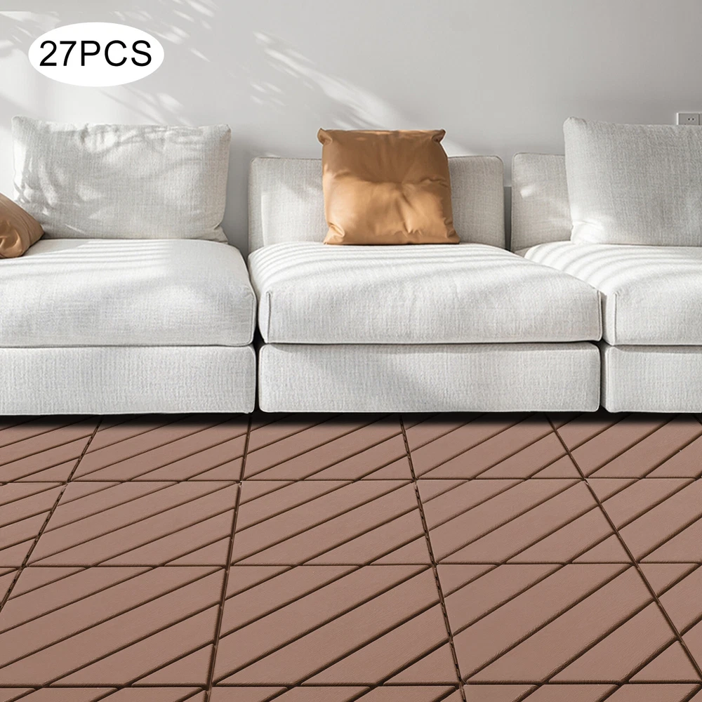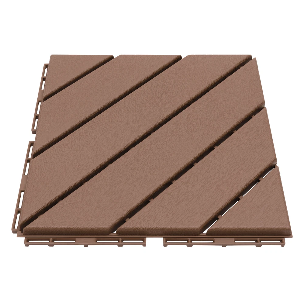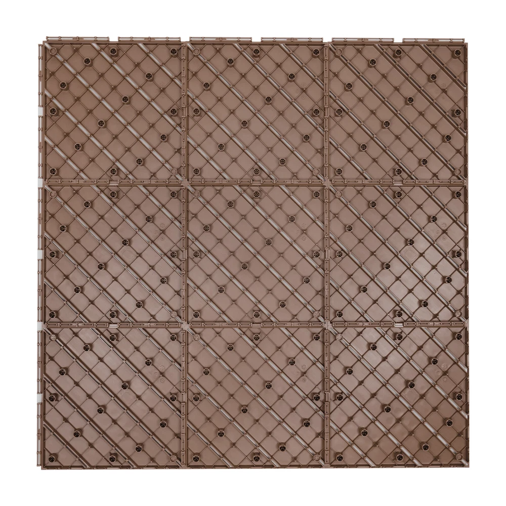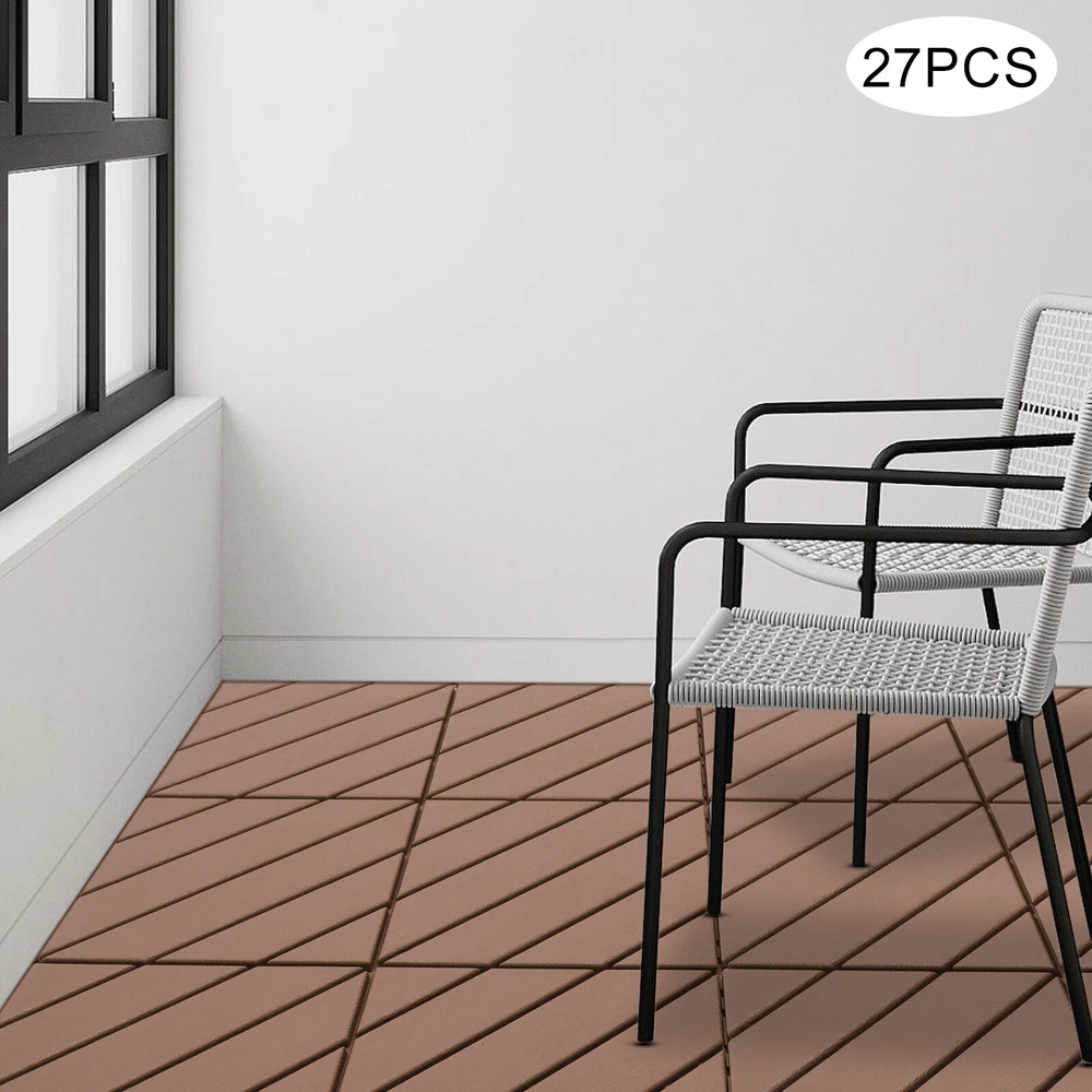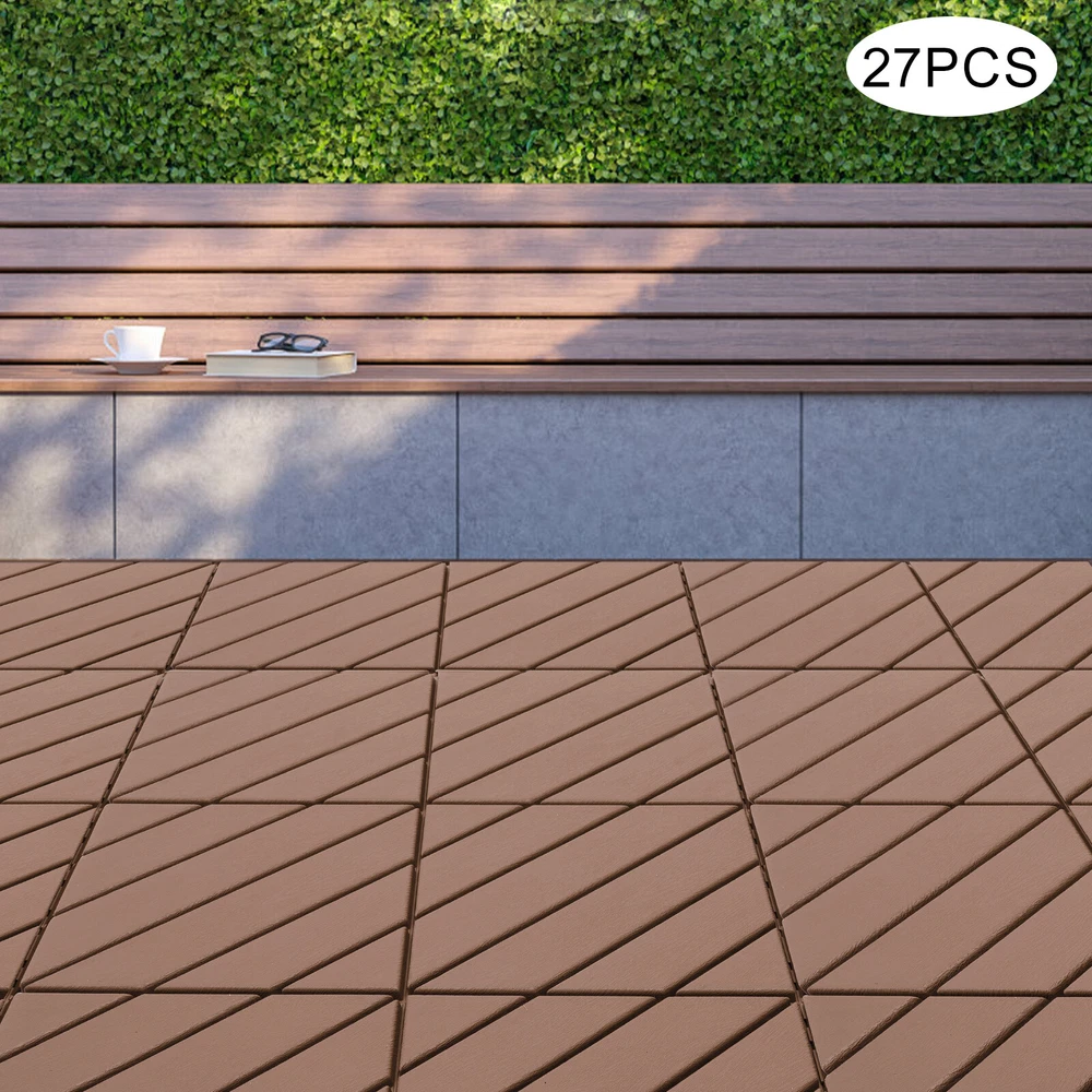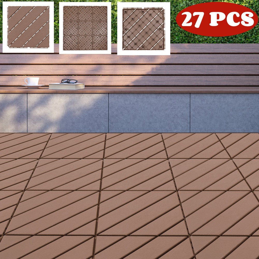 27-Pack 12x12 Plastic Interlocking Deck Tiles for Outdoor Patio Flooring in Coffee Brown