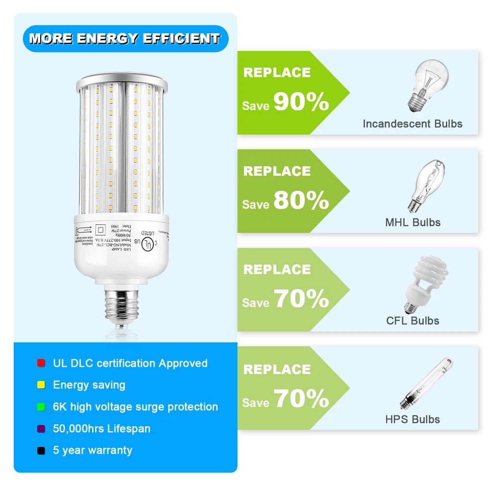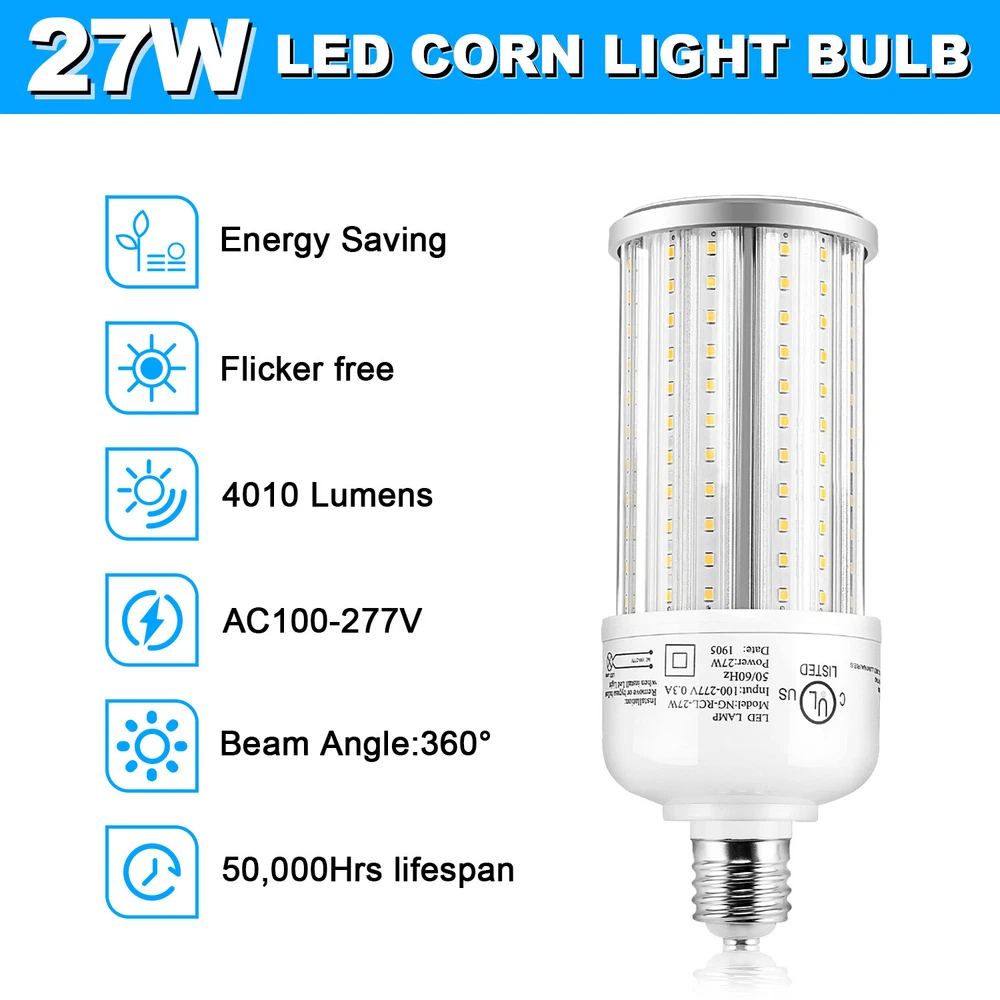 27W LED Corn Light Bulb Warehouse Workshop Parking Lot Lighting 5000K Daylight
