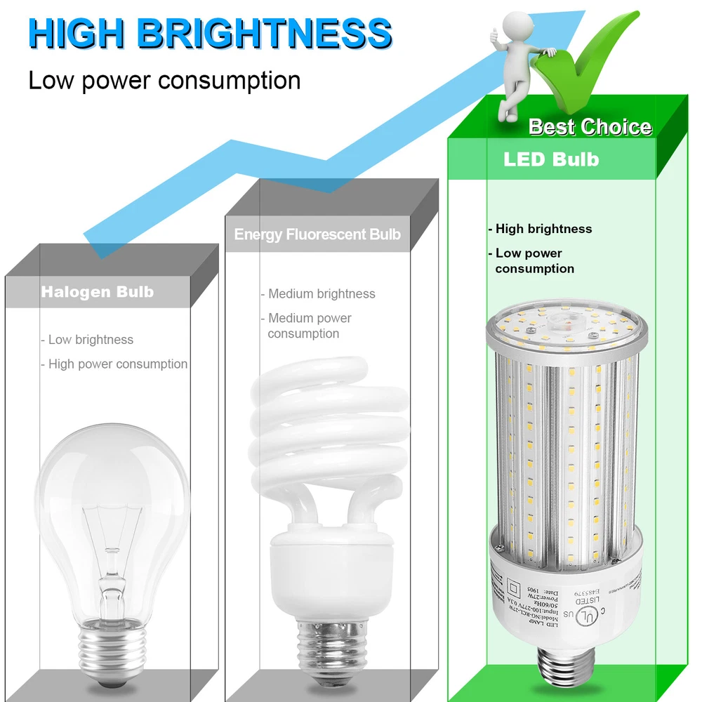 Product Description 27W LED Corn Light Bulb Warehouse Workshop Parking Lot Lighting 5000K Daylight Specification: Rated Power: 27W Base Code : E39 Light Bulb Base Type : Medium Base Power Factor: >90% Input Voltage: AC100-277V 50/60Hz LED Type:SMD2835 LED chips with 130-150Lm/W Luminous Flux(lm): 4,010Lm Color Temperature: 5,000K Color Rendering Index (RA) : >80 PFC: >90% Materials: Aluminum+ASA Certification: UL & DLC Not dimmable Notice: 1.The LED Corn bulb is wide input voltage(AC100V-277V) 2.Please turn off power before install or change assembly parts 3.Make sure to remove ballast or starter before install the lamps 4.The input voltage and lamps should be matched, after connecting the power line, please make sure the wiring section is insulated About Us Payment Shipping Terms Returns Contact Us 1. 10 Years LED Light Manufacturer 2. Certified Safety LED Light Products 3. US Warehouse Fast & Convenient Delivery 30,000 sq.ft production area &100 employees professional team. UL,cUL,cETL,ETL,DLC approved products standard produce by certified request. 6 separately production line strictly control quality & speed production Professional Aging test machine&SMT Machine&IES test system&Reflow oven 1. We only accept payment by PayPal . Your ebay address must match your paypal address. PO BOX can not delivered. 2. Please make payment within 7 days. If you don't need it, please inform us to cancel it, for eBay will open UNPAID dispute automatically in eighth day. 3. Paypal allows you to complete your purchase quickly and securely. It offers a variety of payment options including all the major card carriers. ★★★ ★ ★ USA Warehouse! 2-5days Fast shipping! 1. We will ONLY ship item to eBay physical Paypal address. Your eBay address must match Paypal address. 2. We ship daily Monday - Friday . All orders will be shipped within one working day after payment. 3. Tracking number will be upload on ebay within 24 hours after shipment. 4. Shipping Time: 2-5 working days for US buyers. ★ ★ ★ All of our products are shipped from our 3 different warehouses in the US.(KY/OH/TX) 1. Please kindly CONTACT US via eBay message if there is any problem, instead of Open Case or Return Requests, We will always try our best to solve the problem for you. 2. We provide a 30 days satisfaction or return guarantee for exchange or refund. 3. The package must be in its original packaging and include all of the original accessories or items that came with it when returning an item. The item and package should be in original and perfect condition. 1. Sellers pay return shipping costs. Sellers pay for return, replacement or exchange shipping if there's a problem with the item. For example, if the item a. Doesn't match listing description b. Damaged or defective when received c. Missing spare parts d. Counterfeit or imitation goods 2. Buyers need to pay return shipping costs. If the buyer changes mind about a purchase and wants to return an item, there may need to pay return shipping costs. For example a. Chose the wrong size or feel that the product is not suitable for buyers himself b. No need this product after received c. Find a more suitable price elsewhere than choose a return. 1.Office Time: 9:30 - 18:30, Monday - Saturday (UTC+8) 2.Please contact us with eBay Messa ge . 3.We will respond you within 24 hours on business day. Your feedback is very important to us, please leave us a Positive Feedback with all 5-star for the Detailed Selling Rating when you received the item. If there is some problem about the product, please take communication with us before leaving neutral/negative feedback or opening ebay/paypal case, we will do our best to resolve your problem. We try our best to reply to your emails as soon as possible, however, due to high volume of daily incoming emails and time zone difference; we may not be able to reply your emails immediately. Please allow 24 business hours for us to response. About Us 1. 10 Years LED Light Manufacturer 2. Certified Safety LED Light Products 3. US Warehouse Fast & Convenient Delivery 30,000 sq.ft production area &100 employees professional team. UL,cUL,cETL,ETL,DLC approved products standard produce by certified request. 6 separately production line strictly control quality & speed production Professional Aging test machine&SMT Machine&IES test system&Reflow oven Payment 1. We only accept payment by PayPal . Your ebay address must match your paypal address. PO BOX can not delivered. 2. Please make payment within 7 days. If you don't need it, please inform us to cancel it, for eBay will open UNPAID dispute automatically in eighth day. 3. Paypal allows you to complete your purchase quickly and securely. It offers a variety of payment options including all the major card carriers. Shipping ★★★ ★ ★ USA Warehouse! 2-5days Fast shipping! 1. We will ONLY ship item to eBay physical Paypal address. Your eBay address must match Paypal address. 2. We ship daily Monday - Friday . All orders will be shipped within one working day after payment. 3. Tracking number will be upload on ebay within 24 hours after shipment. 4. Shipping Time: 2-5 working days for US buyers. ★ ★ ★ All of our products are shipped from our 3 different warehouses in the US.(KY/OH/TX) Terms 1. Please kindly CONTACT US via eBay message if there is any problem, instead of Open Case or Return Requests, We will always try our best to solve the problem for you. 2. We provide a 30 days satisfaction or return guarantee for exchange or refund. 3. The package must be in its original packaging and include all of the original accessories or items that came with it when returning an item. The item and package should be in original and perfect condition. Returns 1. Sellers pay return shipping costs. Sellers pay for return, replacement or exchange shipping if there's a problem with the item. For example, if the item a. Doesn't match listing description b. Damaged or defective when received c. Missing spare