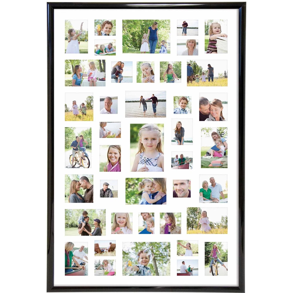 The 27" x 40" Black Rounded Collage Poster Frame is an ideal way to display your treasured memories. It is suitable for posters and larger pictures. This frame also includes a 41 opening collage mat for an additional display option. This frame can be hung either horizontally or vertically. The black color finish easily coordinates with any decor style. 27x40 Rounded Collage Poster Frame, Black: Hang vertically or horizontally Styrene Front Durable plastic frame Comes ready to hang Classic rounded black profile Includes instruction sheet Fits (1) 14" x 22" poster or print