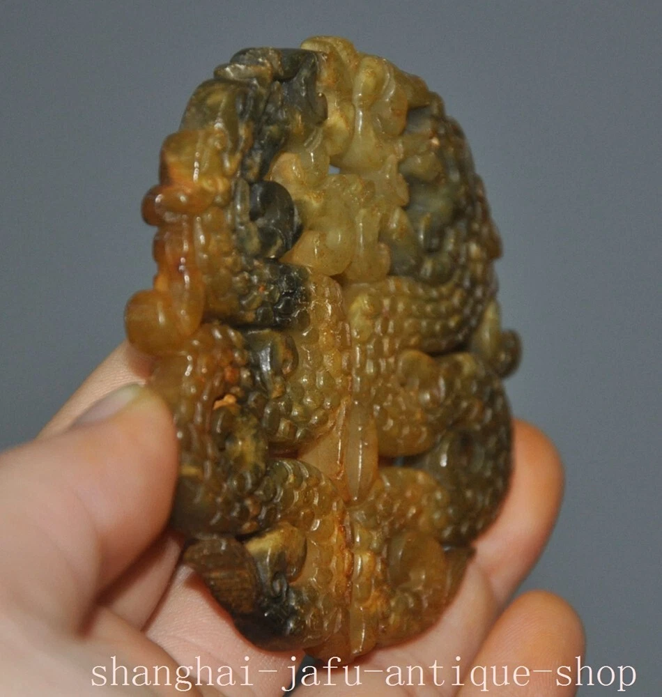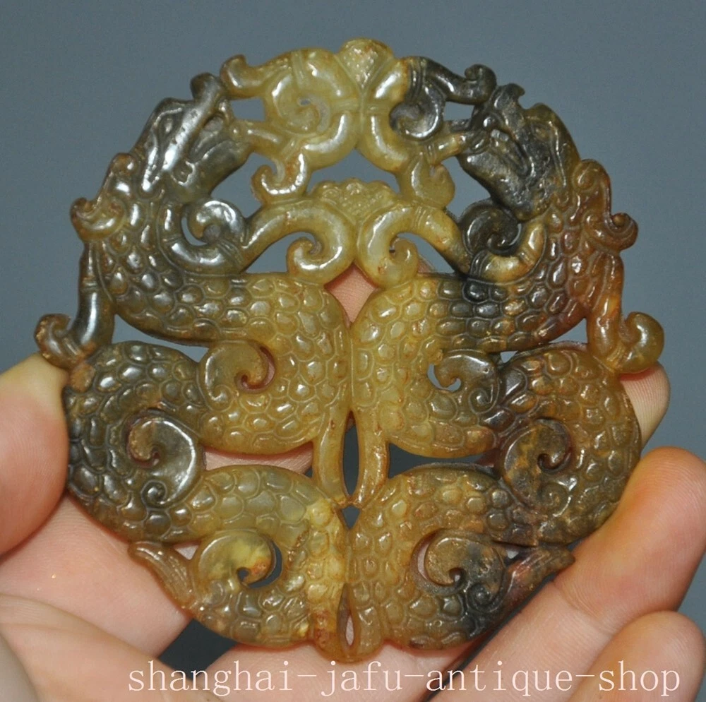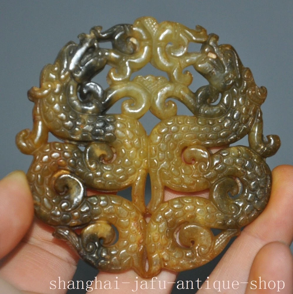 Here is an 2.8" China Ancient Old jade Hand carved Luck double dragon statue yubi Jade bi , As you can see the image, It is in good condition, and was created by skilled craftsmen in traditional style with fine handcrafts . This is a great piece of valuable collection, a valuable personal alter or a very good present. the handwork is very fine with incredible detailing. Don't miss out this chance to get it .Wish you good luck! Size: Height: 2.8 inch .Long: 2.8 inch . breadth: 0.2 inch S ize: Height: 7 cm .Long: 7 cm . breadth 0.5 cm Weight: 0.1 KG----included the weight of packing materials Materials: Old jade Condition: Good condition Origin: China Shipping cost by EMS Express Mail ( 7------15 days ) : $Free D AB D 777 z