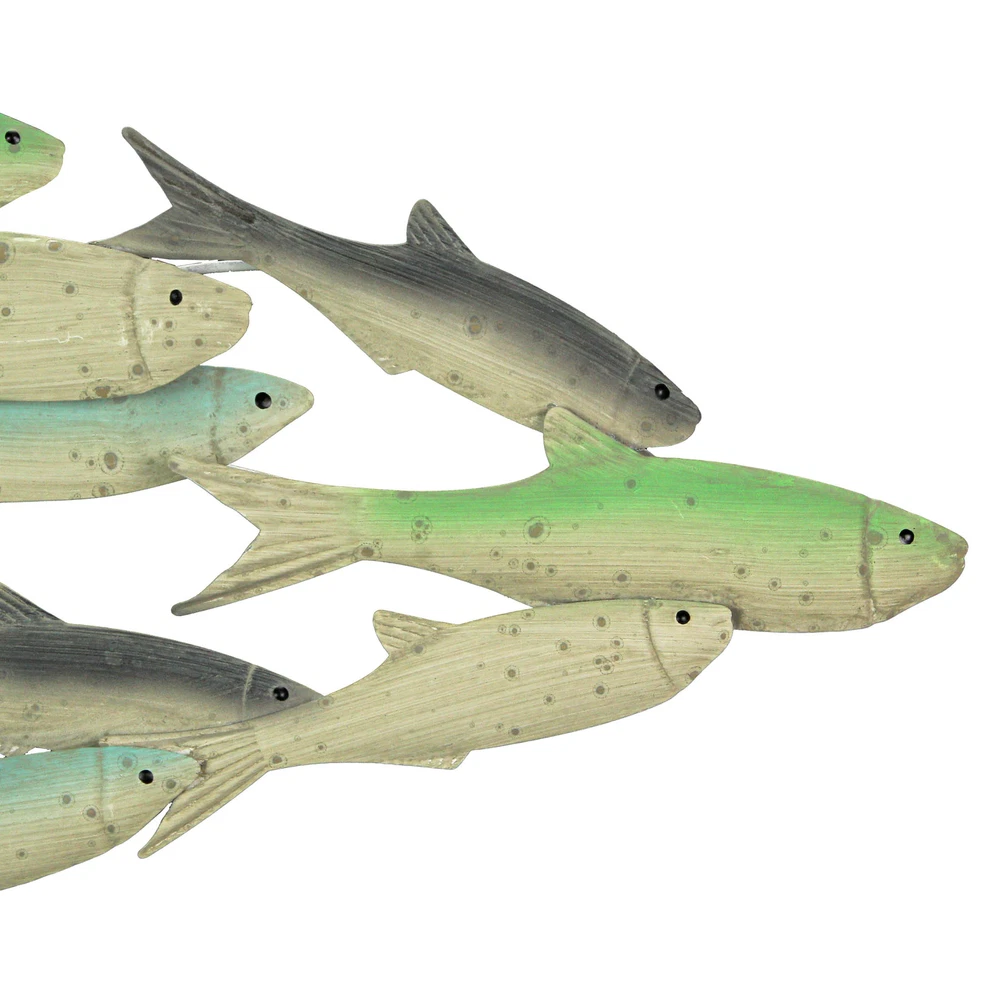 This Tropical School of Fish Wall Art Mounted Sculpture is the perfect addition to any beach house or nautical themed home. Crafted from metal for years of maintenance free display, this 28-inch long, 10-inch high, and 1.5-inch deep sculpture features shades of blue and green accents for a great beachy look. Easily hang this piece in any room of your home with the included keyhole mounts. Add this decorative piece to your bedroom, bathroom, kitchen, or living room for a touch of the ocean spirit. Our eBay Store About Us Add to Favorite Sellers 28 Inch Metal Tropical School Of Fish Wall Art Mounted Sculpture Hanging Home Decor Nautical Art Overall Size - 28 Inches Long, 1.5 Inches Depth, 10 Inches High Durable Material - Crafted of Metal For Years of Maintenance Free Display Coastal Finish - Shades of Blue And Green Accents For a Great Beachy Look Easy Install - Keyhole Mounts Make Hanging Quick and Easy Perfect Accent - Great Decorative Piece For Any Beach House Or Nautical Themed Home This Tropical School of Fish Wall Art Mounted Sculpture is the perfect addition to any beach house or nautical themed home. Crafted from metal for years of maintenance free display, this 28-inch long, 10-inch high, and 1.5-inch deep sculpture features shades of blue and green accents for a great beachy look. Easily hang this piece in any room of your home with the included keyhole mounts. Add this decorative piece to your bedroom, bathroom, kitchen, or living room for a touch of the ocean spirit. Product Details Color Multicolored Height 10 Length 28 Weight 0.95 LB