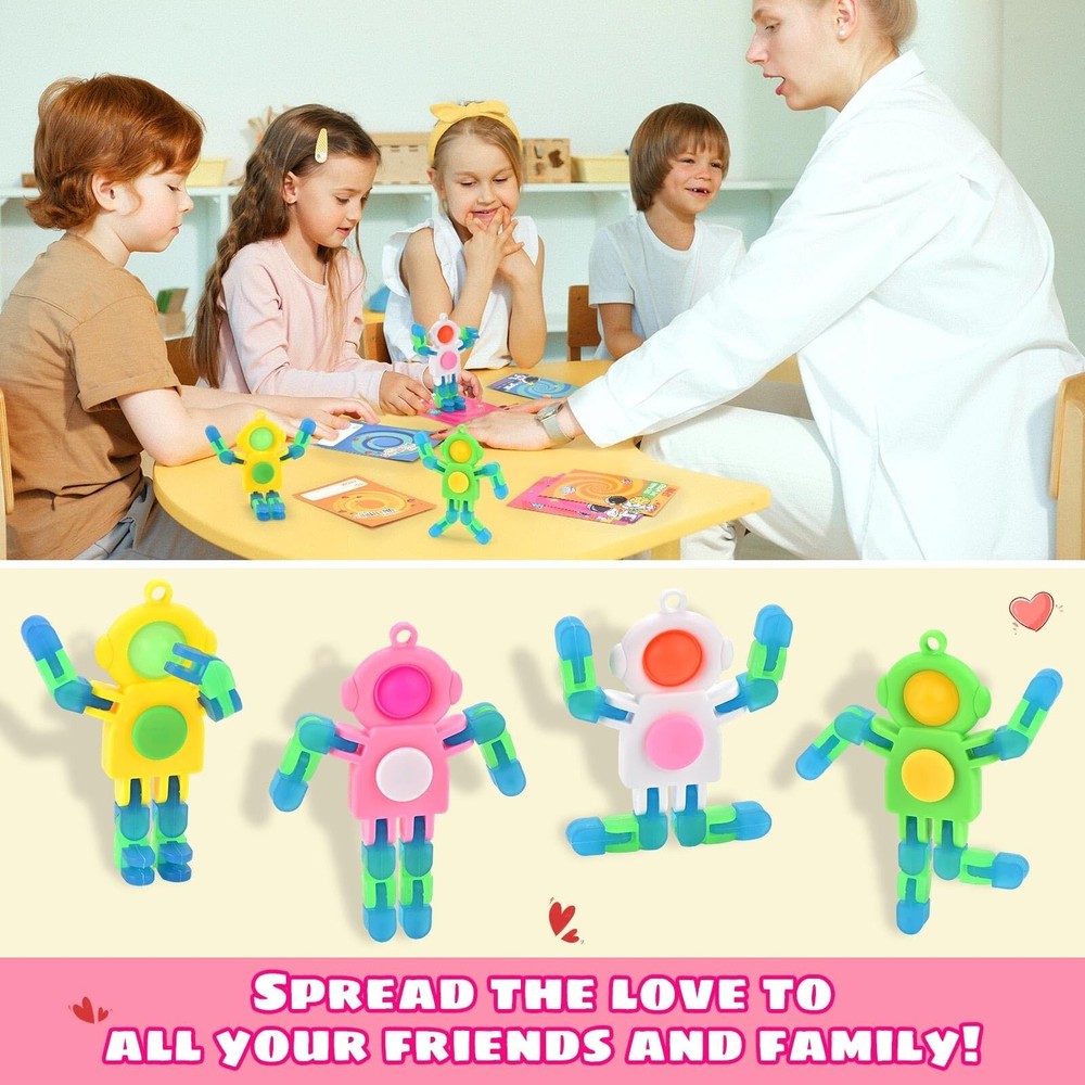 28 Pack Valentine's Day Gifts for Kids – Astronaut Finger Spinners with Cards for School Exchanges, Classroom Activities, Game Prizes, and Party Favors for Boys and Girls Product Details Product Dimensions: 3.43 x 2.76 x 0.39 inches Item Weight: 1.68 pounds Country of Origin: China Manufacturer recommended age: 3 years and up Manufacturer: SHANTOU CITY CHENGHAI DISTRICT QIANBO TOYS FACTORY Super Value Pack: Celebrate Valentines Day with our Astronaut-Shaped Finger Spinner Set! Includes 28 Finger Spinner toys and matching Valentine's Day cards (4 unique card designs, 7 pieces per design). Each card features special greetings that align with the Valentine's theme, making it a thoughtful and fun gift. Multiple Ways to Play:Our astronaut-shaped fidget spinner POP toy offers a variety of fun ways to play! It can be used as a spinning toy, transformed into different shapes like a chain toy to spark creativity, and features pop-it bubbles that make satisfying sounds when pressed. Additionally, it has a glow-in-the-dark feature, making it even more exciting in low-light settings. It also doubles as a keychain, perfect for hanging on bags, keys, or other itemsboth practical and fun! Perfect Valentine's Gift:These finger spinners make excellent gifts for school classroom exchanges, Valentine's Day parties, or as heartfelt tokens for friends and family. Each card includes space to write personalized messages. Attach the spinner toy to the card using glue for a creative, adorable gift everyone will love. Smooth Spinning Experience:Equipped with high-quality bearings, these spinners offer smooth and effortless rotation. Designed with rounded corners to ensure safety, they are perfectly sized for kids' hands, making them enjoyable and easy to use. Safe & Non-Toxic Materials:Safety-tested and free from unpleasant odors, these finger spinners are made with non-toxic materials, ensuring a safe and delightful Valentine's Day experience for kids. Give your children a gift theyll cherish with peace of mind.