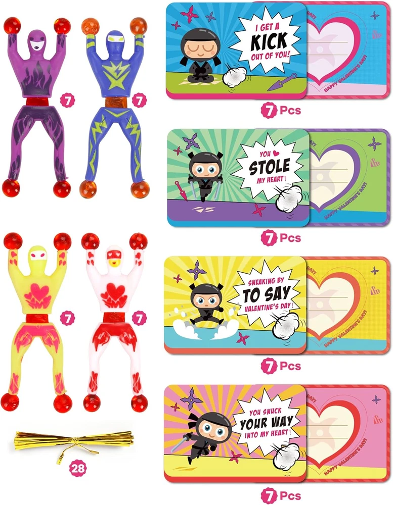 Store New Arrivals Add to Favorite View Feedback Contact 28 Packs Valentines Day Gifts Cards with Sticky Men Set for Kids Boys Girls, Wall Climbing Rolling Men Stress Relief Toys, Valentine School Classroom Exchange Prizes, Party Favor Supplies Gift Set Description Unit Count 1.0 Count Item dimensions L x W x H 2 x 2 x 1 inches Product Dimensions 2 x 2 x 1 inches Country of Origin China Style Climbing Ninja Men Item Weight 12 ounces Theme Love Manufacturer recommended age 3 years and up Age Range (Description) Kid Occasion Valentine's Day Unique Design: The colorful sticky wall climbers toys are super light and easy to throw/toss. Hands and feet have small glue balls. Glue balls have good resilience and extended flexibility. Four styles of cards with different themes to match the toy, lively and active. Super Value Pack: Our Valentine's gift Cards with wall climbers sticky toys Set includes 28 cards in 4 designs and 28 sticky men. It comes with everything you need to make great valentines gifts for your kids’ classroom valentines exchange. Ideal Valentines Gifts: Sticky wall climbing toys are ideal toys for kids to enjoy. kids will love tossing and flinging them so that they stick to the ceiling, walls, windows, tables, and virtually any surface. Let your kids or students have a perfect valentine with our Valentine wall climbers. the stretchy climbing man also can be an ideal gift for your classmates, students, colleagues, family members, and more. Safe Materials and Size: Safety test approved. The length can be stretched without breaking, and the stickiness is good. Durable and reusable and can be washed to keep it clean. the window climbers are about 3.7*1.3 inches, convenient for you to take them with you wherever you go. More Applications: These sticky toys tumble down a wall like a mountain climber scales down a mountain. A perfect chance to practice your handwork ability, kids can play it for fun, turn it over on walls, windows, or tables, like spiderman. These novelty tiny toys are great gifts for friends, classmates, and students in school activities like valentine's party favors, gift exchanging, Themed parties, celebrations, party bag stuffers and gifts, party games, or carnivals. Product Description Deal Valentines Gift It's a wonderful gift option for kids'school classroom prizes and gift exchange Fun Valentine's Day Party with Friend Toy comes with a card that children can pass on their love and care in the party Simple Installation Quick assembly and convenient to carry Safe Material for Kids Use of safe non-toxic materials, and pass the safety test. Make sure kids safe 1 Gift 2 Party 3 Install 4 Safety ABOUT US We offer the best prices around on high quality products. Our E-store includes media such as books, movies, music and games while offering electronics, toys, sporting apparel, clothing, tools, general home, garden items and more. SHIPPING We are always working hard to ensure your package arrives as soon as possible. Please understand that some factors like weather, high postal traffic, and the performance of shipping companies are outside of our control. We offer free shipping to the lower 48 states and ship within 1 business day of payment, usually sooner. P.O. Boxes are accepted, so please feel free to provide either a physical address or a P.O. Box. We do not offer shipping outside of the continental USA. We only ship to states within the continental United States. RETURNS We offer a 30-Day Return Policy on items which you are not completely satisfied with. You have the option for a full-refund or an exchange of the item. No returns are available on items shipped outside of the USA. PAYMENT We accept PayPal. CONTACT US This page content is yet to come Please ad us to your favorite seller and visit again later Thank You CUSTOMER SATISFACTION We try our very best to make sure every customer is completely satisfied. If there's a problem, message us! We're happy to help.