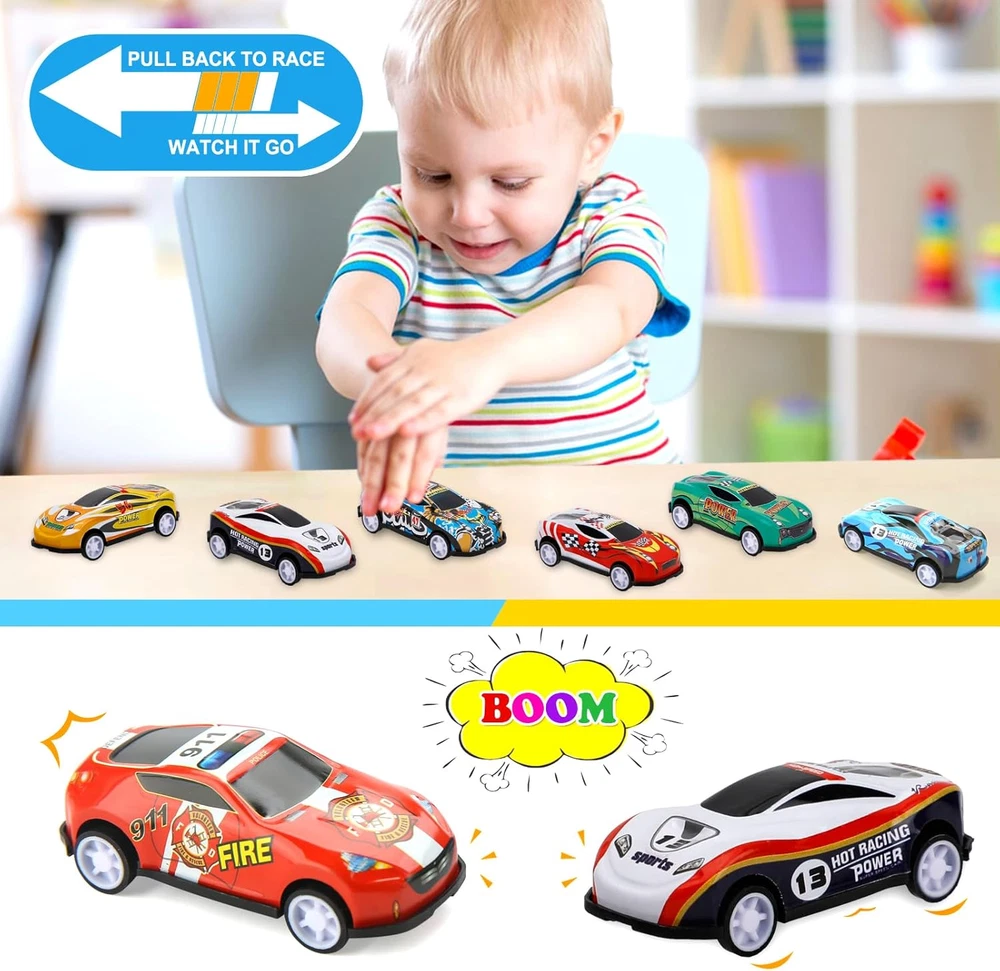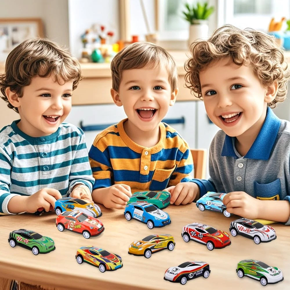 Mini Pull Back Cars Toys Set- This toy car set includes 28 racing toys in various colors and patterns, with a large quantity to share with children and friends. The size is about 2.75 inches, suitable for holding and playing. These mini cars are very portable and can be placed in pockets or bags as perfect travel toys, allowing children to play with them anytime, anywhere. Perfect Party Favors for Kids 4-8- this is bulk children's party toy that can be used as a Christmas party favors, birthday gift, mini car collection, goodie bag stuffers, pinata stuffers, giveaway, and more. Treasure Box Toys for Classroom- These small toys can serve as classroom rewards for teachers and prize box toys for kids classroom, suitable for classroom party, school holiday activities, etc. Stocking Stuffers for Teens Kids- These mini car toys are small and can be placed in Christmas stockings as a surprise, making them the perfect Christmas gift for girls, boys, women, and men. Easy to Play- Pull back the car, no battery required, just pull back the car's tires and the car will move. Children can also play easily and have fun. The metal body bottom of the car is made of high-quality ABS plastic,, safe reliable, bright and colorful, with smooth and round edges. Product Description
