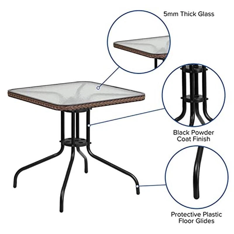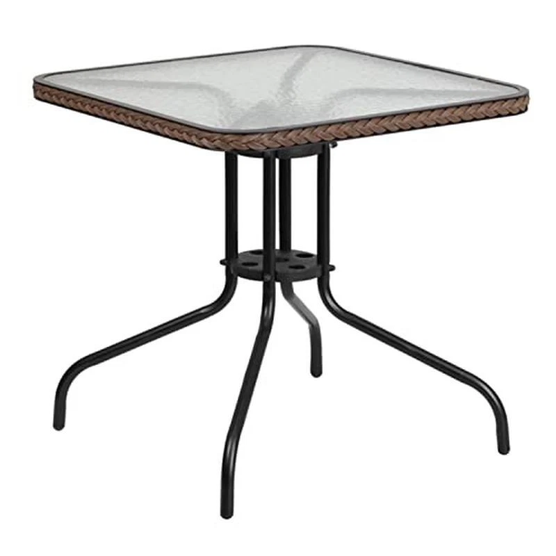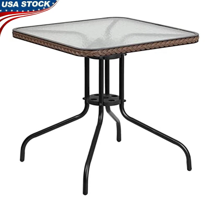 You may also like 14 Qt Aluminum Fry Pot W/Lid Perforated Basket Heavy Duty Handles Frying Cooking 73.79 USD 77.67 USD Free shipping 5% off Solid Wood Farmhouse Dining Table Large Rustic Kitchen Table Easy Assembly New 395.18 USD 415.98 USD Free shipping 5% off Two Door Portable Dog Crate Air Transport Easy Clean Hold 50 Lbs Pets Medium New 175.98 USD 185.24 USD Free shipping 5% off Indoor Plant Stand W/ Grow Lights 6 Tier Metal Shelf Half-Moon Display 2 Pack US 138.28 USD 145.56 USD Free shipping 5% off Portable Leakproof 28 Can Backpack Cooler Insulated Ice Retention Hiking Beach 56.31 USD 59.27 USD Free shipping 5% off Heavy Duty 3 Tier Saddle Rack Removable Rotating Bridle Hanger Tack Organizer US 175.98 USD 185.24 USD Free shipping 5% off Ergonomic Gaming Chair W/ Massage Footrest Adjustable Height Swivel Design New 128.42 USD 135.18 USD Free shipping 5% off Swivel TV Stand W/ Mount Power Outlet LED Lights Corner Design Media Console New 98.78 USD 103.98 USD Free shipping 5% off Jute Area Rug Hand Woven Natural Fiber Durable Bedroom Living Room Office New 60.0 USD 63.16 USD Free shipping 5% off Undersink Trash Can 7 Gallon No Skid Rubber Base Stainless Steel Utility Silver 44.44 USD 46.78 USD Free shipping 5% off Senior Horse Feed 50 LB ActivAge Prebiotic High-Fat Nugget Easy Chew Support New 72.73 USD 76.56 USD Free shipping 5% off TV Stand 55 in Flat Screen Storage Compartment Durable Compact Rectangular Grey 80.16 USD 84.38 USD Free shipping 5% off About this item Fire up the grill or pass out the menus and pair this piece with four great chairs for a fabulous evening. This glass top table with rattan edging is just right for patio and poolside use at home or the outdoor bar or dining area of your establishment. 5mm thick glass, clear tempered glass surface, 1. 375" edge top Black powder coat finish, decorative rattan edge band, protective plastic floor glides Contemporary glass and metal table for commercial and residential use PRODUCT MEASUREMENTS: Overall Size: 28"W x 28"D x 28"H › product details Brand Flash Furniture Product Dimensions 28"D x 28"W x 28"H Maximum Weight Recommendation 132 Pounds Color Clear/Dark Brown Rattan Product Care Instructions SW-Solvent and water based cleaner such as foam Item Weight 20 Pounds Frame Material Metal Top Material Type Glass Shape Square You may also like Modern Glass Dining Table Geometric Design Tempered Top Metal Legs Easy Assembly 252.78 USD 266.08 USD Free shipping 5% off Bold Espresso Variety Pack 40-Count Pods Medium Dark Roast Recyclable Pods New 37.24 USD 39.2 USD Free shipping 5% off Anti Fatigue Cushioned Kitchen Rug Waterproof Non Skid Runner Easy Clean 23x86 73.13 USD 76.98 USD Free shipping 5% off 55 Inch Office Desk Gaming Writing Desk Metal Frame Storage Large Legroom Brown 79.02 USD 83.18 USD Free shipping 5% off Soda Cup Lid Holder Dispenser Heavy Duty Organizer Countertop 24oz Capacity New 67.18 USD 70.72 USD Free shipping 5% off Portable Charcoal Grill W/ Wheels Side Shelves Adjustable Vents BBQ Smoker New 73.12 USD 76.97 USD Free shipping 5% off Multi-Level Cat Tree W/ Scratching Posts Perches Condo Indoor Play Center New 76.95 USD 81.0 USD Free shipping 5% off 24 Inch Folding Stool 2 Pcs Portable Bar Chairs W/ Backrest & Handle L-Shape New 108.66 USD 114.38 USD Free shipping 5% off Submersible Electric Pool Cover Pump 600 GPH W/ Drain Hose Accessories Plastic 36.68 USD 38.61 USD Free shipping 5% off Tucson Deluxe Console Table W/ Storage Shelf Multiple Finishes Wood Frame Black 43.38 USD 45.66 USD Free shipping 5% off 3-Tier Shoe Rack W/ Mesh Shelves Wood Seat Entry Bench Storage Organizer Rustic 76.25 USD 80.26 USD Free shipping 5% off Natural Lamb Lung Sticks Dog Chews 4lbs Easy Chew Dental Health Treats Soft New 84.46 USD 88.91 USD Free shipping 5% off