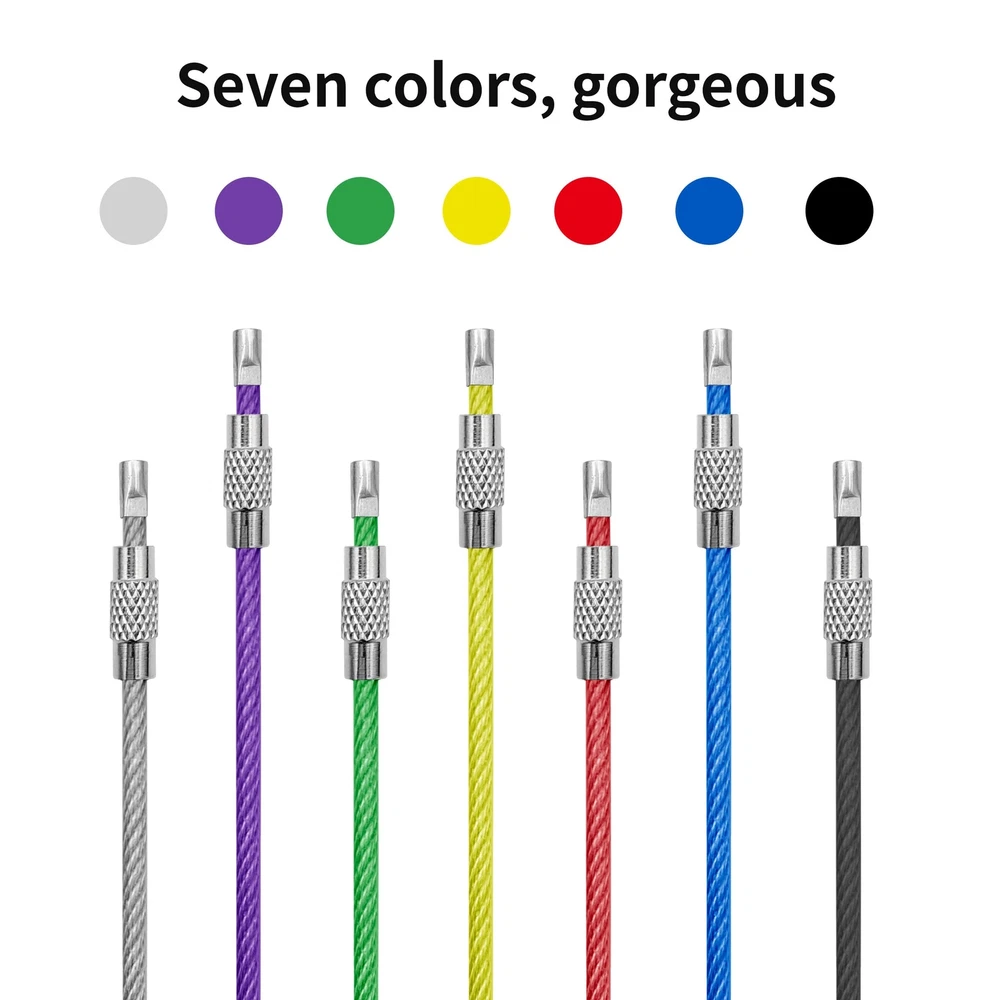 28 pcs Metal Wire Keychains, 2mm Stainless Steel Connecter Key Rings Loops, 4" 6" 7.8" 10" Cable Keyrings Key Chain for Hiking Luggage ID Tags,Key Tags, Kitchen Utensils-7 Colors 【2 MM THICK WIRE LOOP】With a 2mm thick, durable wire interior, nylon covered exterior, and stainless steel connections, this keychain is strong and durable for hanging items and will hold items weighing up to 80 pounds without breaking. 【COMPONENTS INCLUDED】28 wire key rings in 7 colors, each color comes in 4 sizes, 4 inches/10 cm, 6 inches/15 cm, 7.8 inches/20 cm, 10 inches/25 cm, connect multiple cables together to create longer and larger rings for your multiple uses. 【Easy To Use】The versatile threaded barrel key ring is designed with connectors to secure and lock the ends of each wire. Simply tighten or loosen the nuts to easily add or remove items to or from the rope key ring. 【Versatile Uses】Great for hanging key ring fobs, flashlights, pliers, luggage tags, ID tag protectors, etc., cross-stitch thread, cards/reward cards, ID cards, USB flash drives, zipper pulls, kitchen utensils, loose sheets of paper clip rings, charms, or other hooks with holes in them. 【LIGHTWEIGHT & EASY TO CARRY】 Our metal wire keychain , lightweight and small in size, easy to carry when going out, perfect for sports, traveling, hiking and picnic. 【2 MM THICK WIRE LOOP】With a 2mm thick, durable wire interior, nylon covered exterior, and stainless steel connections, this keychain is strong and durable for hanging items and will hold items weighing up to 80 pounds without breaking. 【COMPONENTS INCLUDED】28 wire key rings in 7 colors, each color comes in 4 sizes, 4 inches/10 cm, 6 inches/15 cm, 7.8 inches/20 cm, 10 inches/25 cm, connect multiple cables together to create longer and larger rings for your multiple uses. 【Easy To Use】The versatile threaded barrel key ring is designed with connectors to secure and lock the ends of each wire. Simply tighten or loosen the nuts to easily add or remove items to or from the rope key ring. 【Versatile Uses】Great for hanging key ring fobs, flashlights, pliers, luggage tags, ID tag protectors, etc., cross-stitch thread, cards/reward cards, ID cards, USB flash drives, zipper pulls, kitchen utensils, loose sheets of paper clip rings, charms, or other hooks with holes in them. 【LIGHTWEIGHT & EASY TO CARRY】 Our metal wire keychain , lightweight and small in size, easy to carry when going out, perfect for sports, traveling, hiking and picnic. Shipping We offer FREE shipping on all orders! We ship within Three business days of payment, usually sooner. We use a selection of shipping services such as UPS, FedEx, USPS etc. We only ship to the lower 48 states, no APO/FPO addresses or PO Boxes allowed. Local pickups and combined shipping options are not provided at this time. Return You can return a product for up to 30 days from the date you purchased it. Any product you return must be in the same condition you received it and in the original packaging. Please keep the receipt. Feedback Customer satisfaction is very important to us. If you have any problem with your order, please contact us and we will do our best to make you satisfied. Contact Us If you have any queries, please contact us via ebay. We usually respond within 24 hours on weekdays. Please visit our eBay store to check out other items for sale! Thank you for shopping at our store.