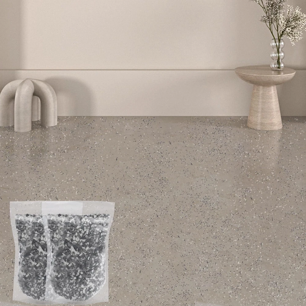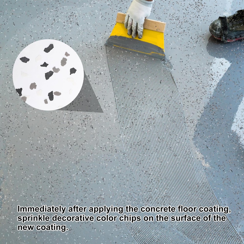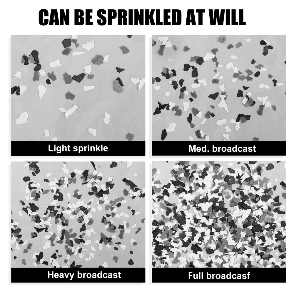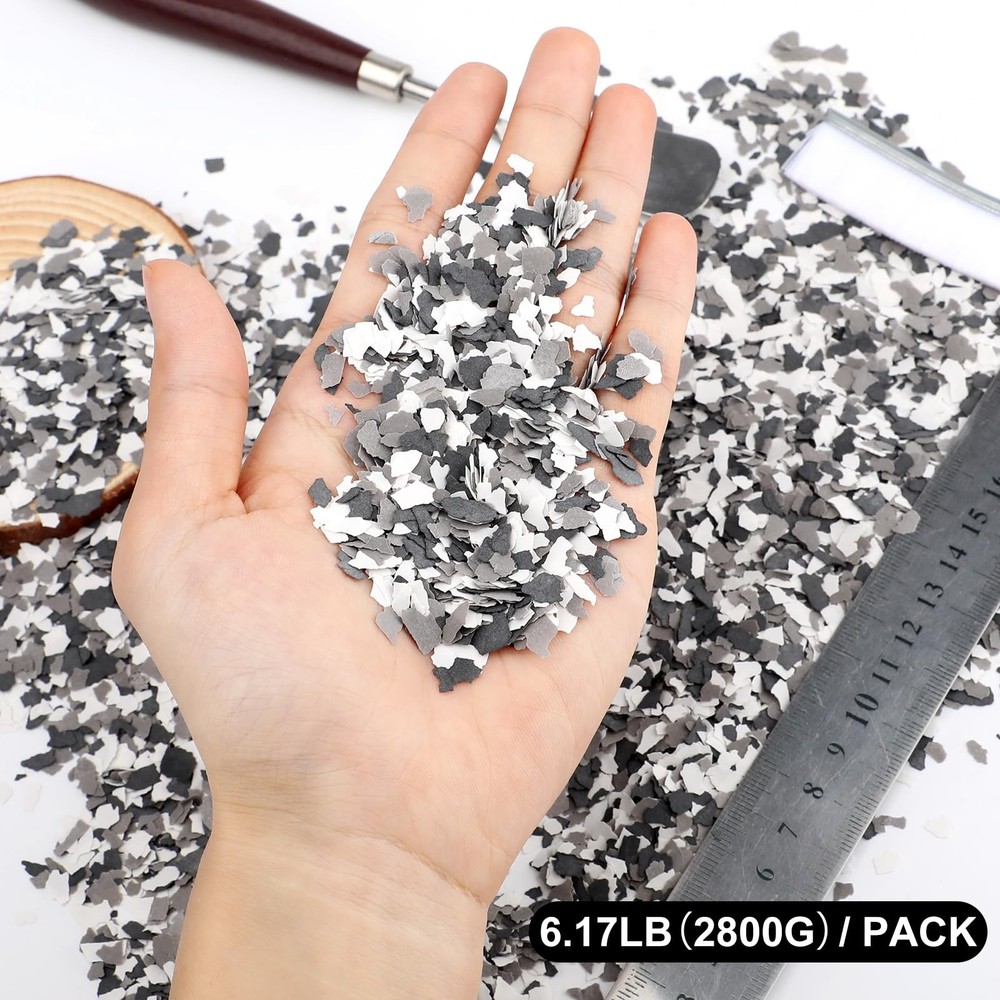 2800G 6.17Lb Blend Decorative Color Chips,Epoxy Flakes Blend Concrete Floor Coatings,Decorative Paint Flakes for Garage Floor Paint Interior Exterior Walls Floors(Black White Gray) Package Includes: You will receive 1 pack of floor paint chip in 2.8 kg/ 6.17 lb, providing ample quantity for diverse decorative needs and large area coverage. Premium Material: Made from composite rock chips, the flakes are lightweight and durable, ensuring uniform distribution without clumping. Easy Application: The flakes are user-friendly; simply sprinkle on a prepared surface and apply a topcoat for strong adhesion and an attractive finish. Durability and Protection: Color Flakes Designed to withstand harsh conditions and enhance the longevity of surfaces, Blend Concrete Coatings Paint Chips also conceal imperfections and reduce maintenance needs. Widely Used:Concrete Floor Coatings Suitable for various indoor and outdoor settings, including garages, basements, showrooms, and patios, enhancing aesthetics while providing a non-slip texture.