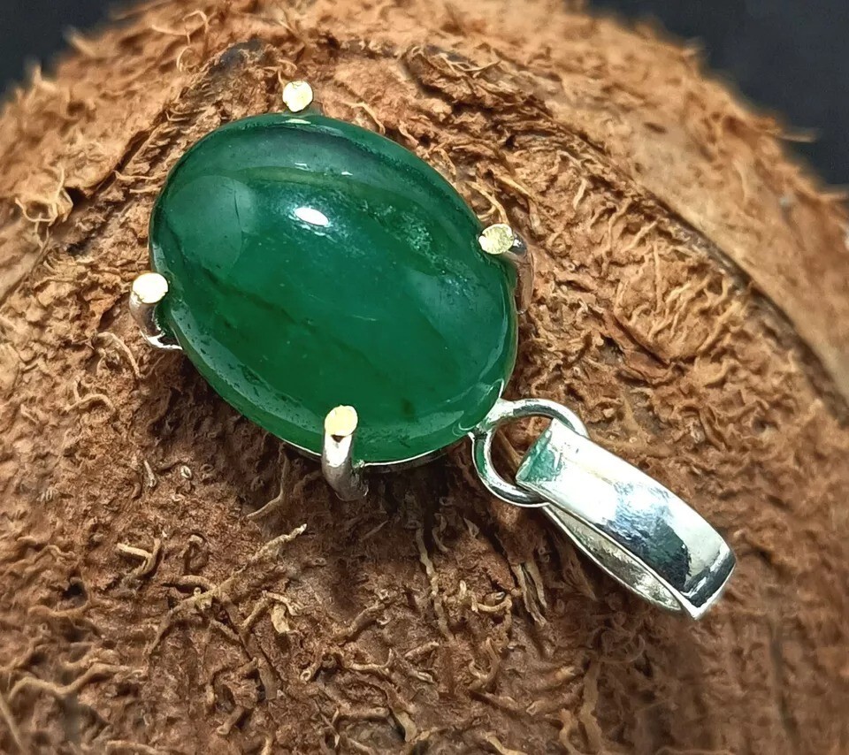 Certified 28.30 Ct Stunning Emerald Solid Silver Oval Cabochon Pendant Gemstone
