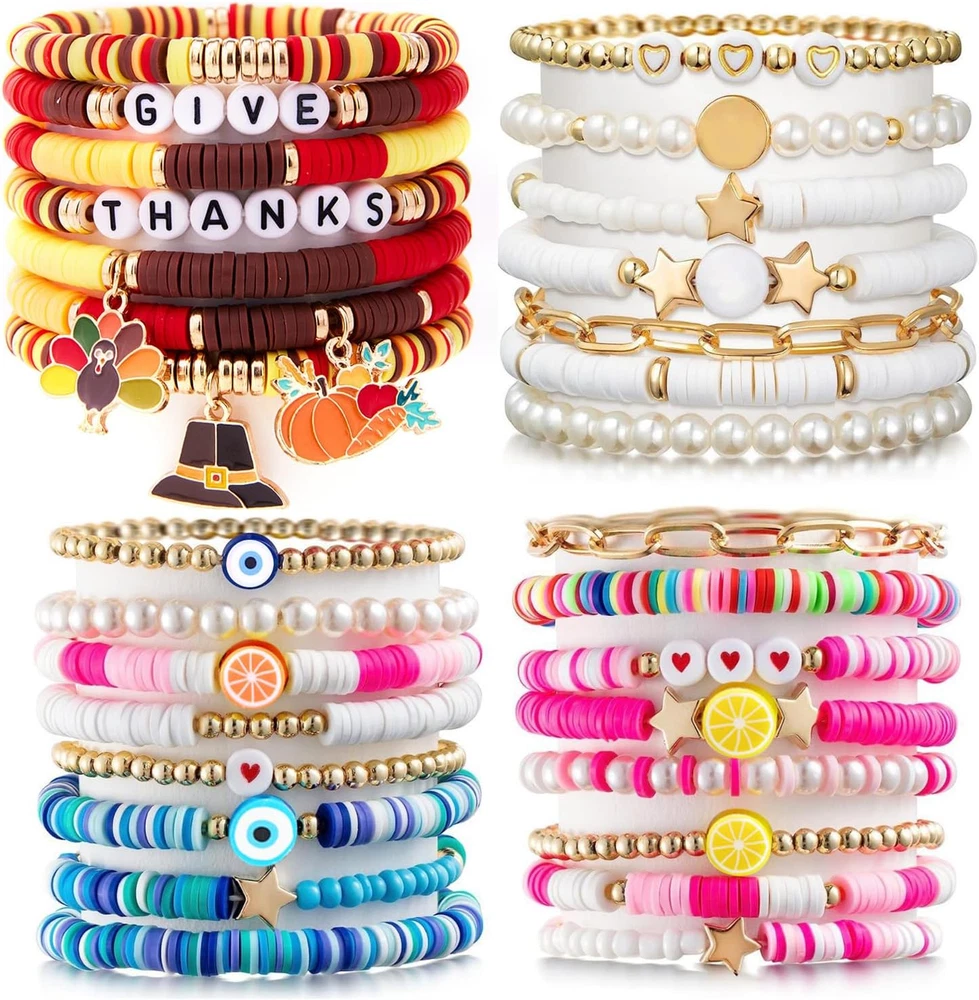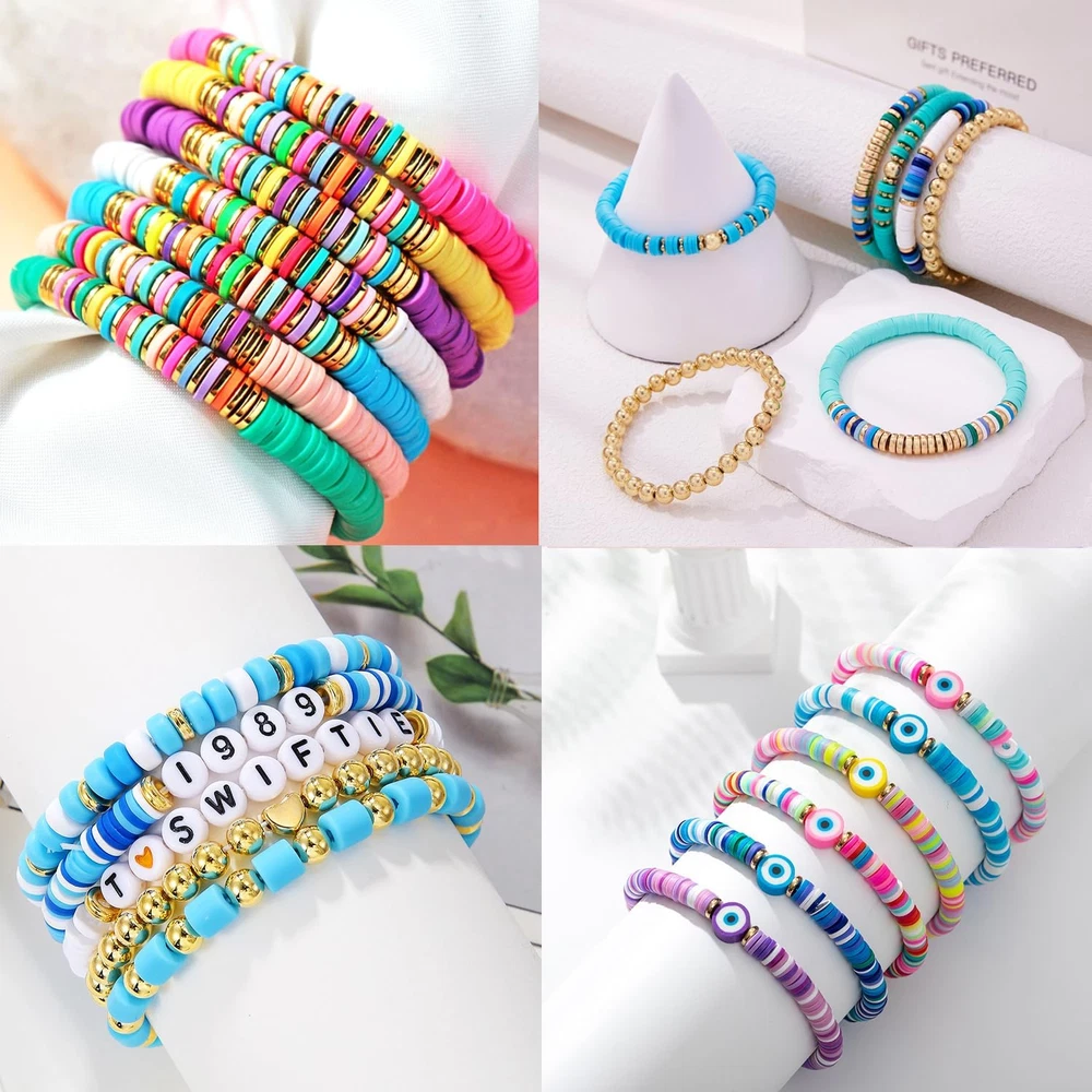 $ 12.735800-Piece Clay Bead Bracelet Kit with 24 Preppy Colors for DIY Friendship Jewelry
