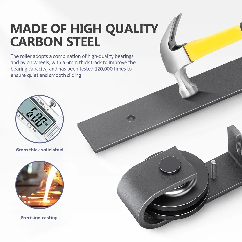 Store category Sign Up Now ! You may also like Product Description Bullet Points: Space-Saving Elegance: Transform any room with our Rail Sliding Barn Door, offering a wide range of applications, like living, dining or study areas. Its innovative space optimization design concept goodly saves space and seamlessly fits into any design. Swivel Stand for Versatile Use: Customize your barn door with our Rail Sliding Barn Door kit that includes 2x hinges and rollers, giving you the freedom to choose your own swivel stands. Additionally, 3x tracks, 3x spacers, 1x floor rail, and 1x roller holder provide the framework you need. Sturdy Reliability: Constructed with excellent carbon steel, this sliding barn door rail provides unyielding resistant to wear and tear, giving you a strong and long-lasting solution for your home. Effortless Installation: Comes with a detailed bi-fold sliding barn door kit and intuitive picture-text instructions, ensuring a quick and easy setup process. Reliable Performance: With the capacity to carry heavy loads, this Rail Sliding Barn Door boasts a sturdy bearing and nylon wheel combo, making it a practical choice for supporting and sliding even the heaviest of doors on its 6mm thick track. Ideal for various life situations, this kit includes 2*solid and durable roller swivel stands on a 6mm thick track. The sleek design is sure to complement any decor. Pictures and text are included for easy installation. Specifications: Colour: Black Material: carbon steel Track size: about 34 inches/86CM Track splicing method: 3 pieces Scope of application: Door panel thickness 0.5-50MM Packing List: 3*track 2*scroll wheel 2*roller swivel stand 1*roller holder 3*spacers 3*hinge 1*floor rail 1*sealing strip 1*screw pack 1*instruction manual 4*pipe clamp 35mm 4* wood screws Payment Delivery details Terms of sales About us Feedback & DSRs Payment Before you palce an order, please kindly make sure that you have a paypal account. We accept PAYPAL payment only. Payment should be completed within 2 days after auction closed, or unpaid dispute will be filed for an closing auction. An unpaid case will be filled after 4 days. Delivery details We ship to your eBay address. Each package will be shipped to US by UPS Regular Parcel with tracking number. Please check your shipping address carefully before checkout, it can't be changed if order completed. All items will be shipped within 1-2 business day upon receipt of payment.Orders placed on weekend will be shipped within 3 days. If you do not receive your item in 7-10 business days.please contact us immediately for further assistance. We will be responsible for any damages or losses incurred in the shipping process. About us We maintain high standards of excellence FIVE STAR and strive for 100% customer satisfaction! Positive Feedback is very important to us. We hope that you contact us immediately Before you give us neutral or negative feedback, so that we can satisfactorily address your concerns. We promise to offer the lowest price and high quality produce. Our working time: From Monday to Friday(9:30 am to 18:00pm), we don't working on holidays ,hope you can understand and know that , thank you. Please always talk to us via ebay Message. We appreciate your business and look forward to growing our e-Bay sales with satisfied customers. Feedback Contact us If you have any questions, please feel free to contact with us by ebay Message during our business hours ( 9:30a.m. to 5:30 p.m.), or email us through eBay, we will try our best to help you to resolve it. For any presale or after-sale questions,please do feel free to email us! Due to the time difference, each email will be replied within 1 working day,and weekend will be delayed a bit. Feedback