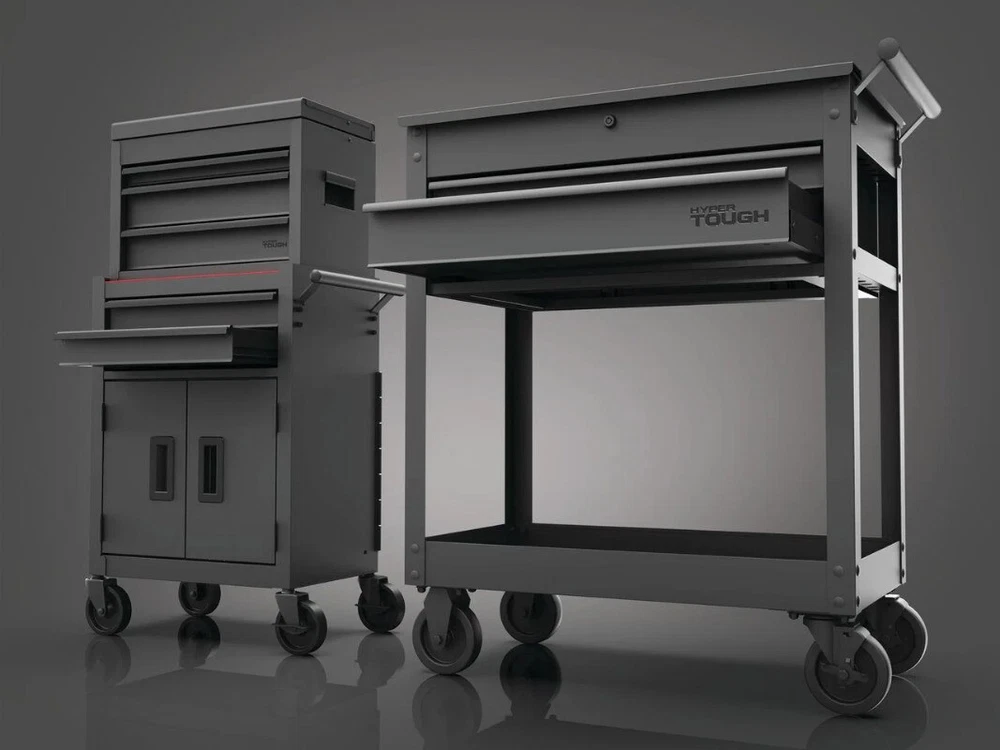 You may also like Fishing Storage Toolbox W/ 4 Drawers 19 Compartments Camping Organizer Outdoor 36.42 USD 39.16 USD Free shipping 7% off Durable Waterproof Locking Stacking Utility Box Tool Storage Organizer New 9.81 USD 10.55 USD Free shipping 7% off Introducing the 28-inch Hyper Tough Steel Mechanics Tool Cart, your ultimate companion for heavy-duty storage and mobility in the workshop. This rugged yet easy-to-assemble cart boasts an impressive capacity of up to 500 pounds, ensuring you can store and transport a substantial array of tools and supplies with ease. Its design is engineered for durability, offering resistance to rust, dents, chipping, and peeling, ensuring it remains a staple in your workspace for years to come. Equipped with a large push-bar side handle, maneuvering this tool cart is a breeze, aided further by its two swiveling and two locking/swiveling 5-inch diameter caster wheels. These features provide effortless mobility, allowing you to position the cart precisely where you need it. The two heavy-duty drawers come with fully extendable, ball-bearing slides, offering smooth access to your tools. The large bottom tray is perfect for bulkier items, while the top compartment provides versatile storage for tools, equipment, or general use. To enhance organization and tool safety, the cart includes non-slip drawer liners that keep your tools securely in place during movement. The durable powder-coated finish not only adds a sleek, professional look but also provides resistance against rust, corrosion, and chipping. With the 28-inch Hyper Tough Steel Mechanics Tool Cart, experience a seamless blend of strength, functionality, and durability, making it an indispensable asset in any professional or home garage. High Load Capacity : Can hold up to 500 pounds of tools and supplies Durable Construction : Resistant to rust, dents, chipping, and peeling Smooth Drawer Access : Two heavy-duty drawers with fully extendable, ball-bearing slides Versatile Storage : Large bottom tray for bulky items and a top compartment for additional storage Easy Maneuverability : Large push-bar side handle and 5-inch diameter caster wheels (two swiveling, two locking/swiveling) Protective Non-Slip Liners : Includes non-slip drawer liners to keep tools in place during movement Quick and Easy Assembly : Features a design that allows for quick and straightforward assembly, making it ready to use in no time Security Lock : Includes a built-in lock for securing the top compartment and drawers, ensuring your tools are safe and protected Ergonomic Design : The height and layout of the cart are designed to reduce strain and improve accessibility while working For additional storage solutions also check out the Hyper Tough Hyper Stack Foldable Utility Cart, Hyper Tough Hyper Stack 3-Tier Heavy Duty Utility Cart Rib 15X6.00-6 4-Ply Rated Lawn and Garden Tire Durable 27.3 USD 29.36 USD Free shipping 7% off Lawn Mower Blade Removal Tool Rigid Metal ConstructionEasy-Turn Clamp Handle 7.78 USD 8.37 USD Free shipping 7% off Kansas City BBQ Dry Rub Seasoning 14.5oz Gluten Free Flavors Beef Pork Chicken 9.64 USD 10.37 USD Free shipping 7% off 1.5 Gallon 2 Peak HP Poly Wet/Dry Shop Vacuum Cleaner Portable Home Carpet Vac 37.32 USD 40.13 USD Free shipping 7% off Penny Candy Glass Jar with Lid Cookie Jar 1 Gallon Food Storage Jar for Snacks 9.97 USD 10.72 USD Free shipping 7% off Pole Saw Attachment Universal Automatic Lubrication for Cutting Limbs and Brush 45.0 USD 48.39 USD Free shipping 7% off Extra Strength Vitamin D3 Softgels 125 mcg 5000 IU Bone Immune Health 250 Count 9.81 USD 10.55 USD Free shipping 7% off NEW Wide Grip Kettlebell Exercise Fitness Weight Set 3PC 10lb 15lb 20lb 3 Pieces 26.39 USD 28.38 USD Free shipping 7% off 30lb Whole Grain Layer Chicken Feed Superfood Nutrition Egg Production NEW 25.17 USD 27.06 USD Free shipping 7% off Magnesium Sleep Support Bone Joint Health Supplement Vegetarian Capsules 60 Ct 8.46 USD 9.1 USD Free shipping 7% off Full Motion TV Wall Mount 10-50 Inch TVs W/ Tilt Swivel HDMI Cable UL Certified 7.11 USD 7.64 USD Free shipping 7% off Metal Plant Stand 9in Tall Durable Heavy Duty Design Indoor Outdoor Use 9.96 USD 10.71 USD Free shipping 7% off