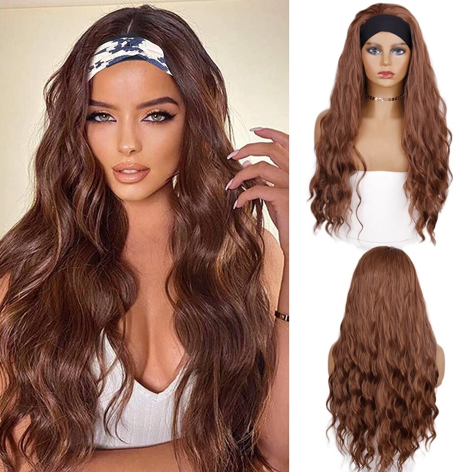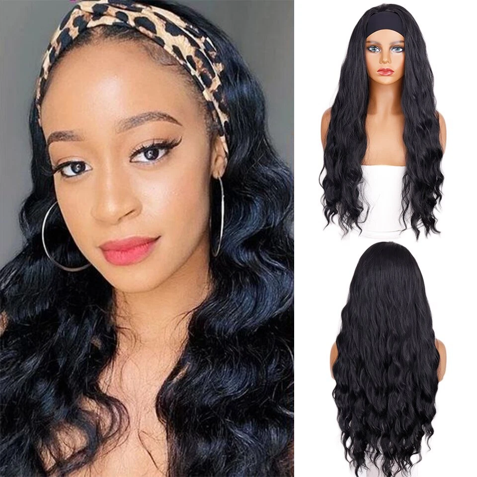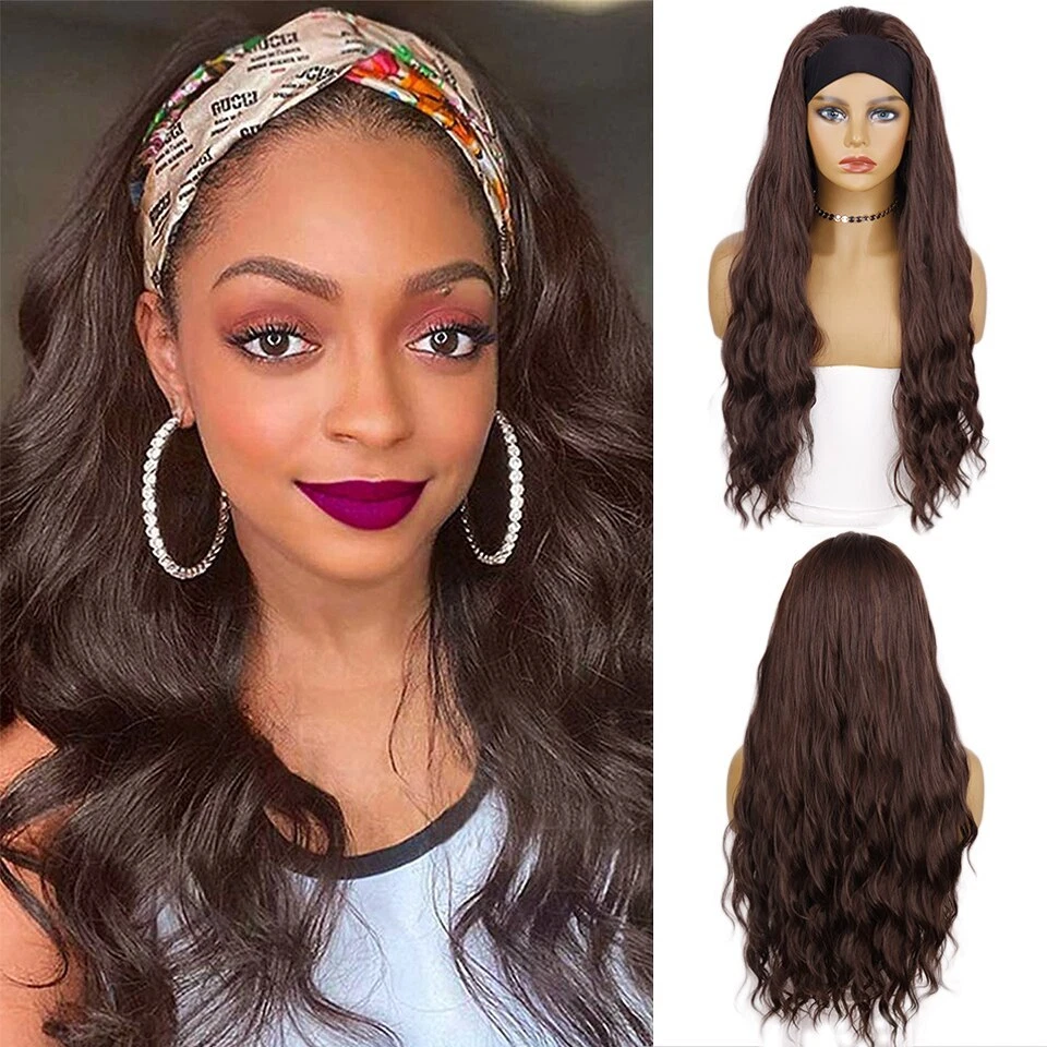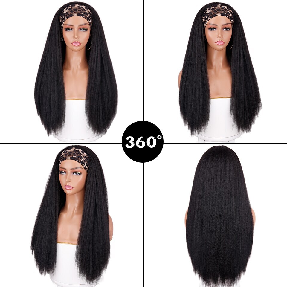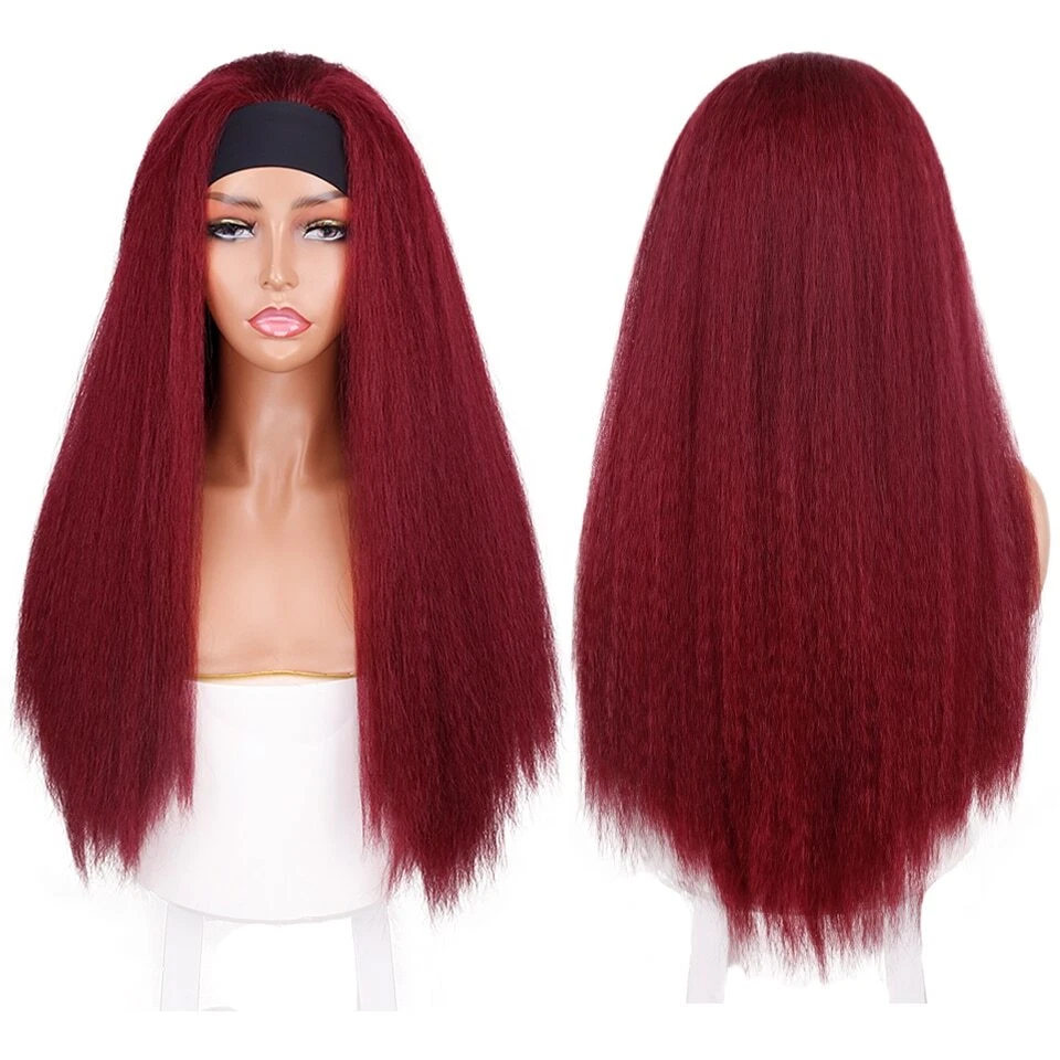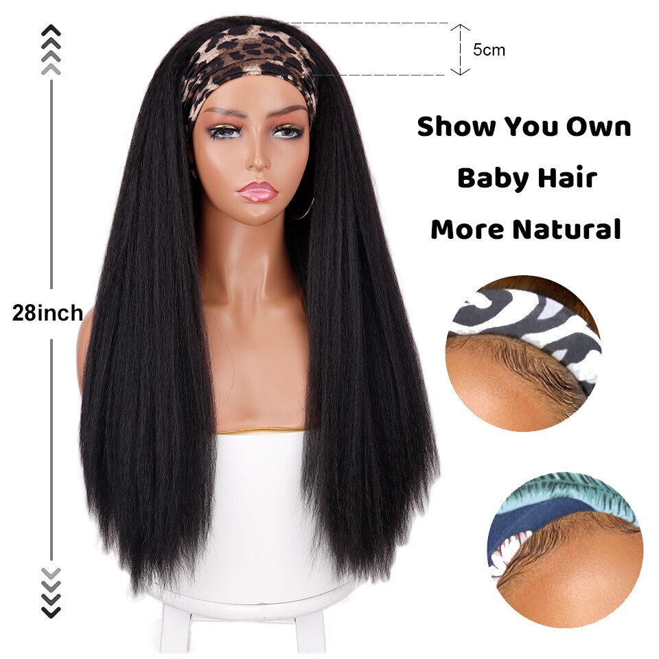 28-Inch Kinky Straight Synthetic Headband Wig - Heat Resistant Ombre Hair for Women