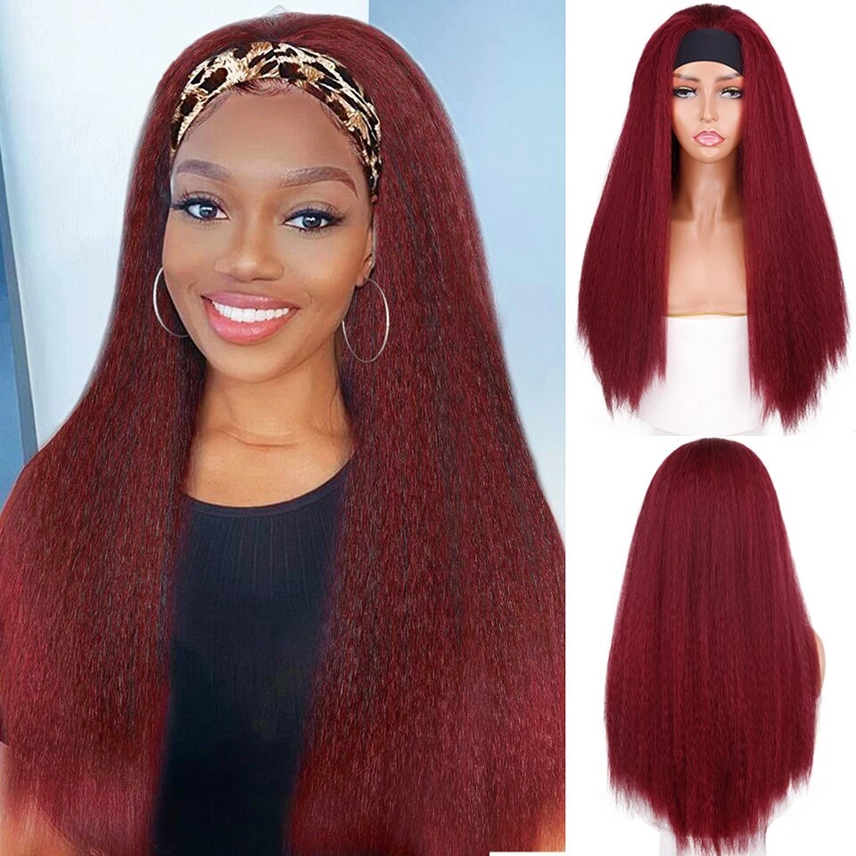 Home28-Inch Kinky Straight Synthetic Headband Wig - Heat Resistant Ombre Hair for Women