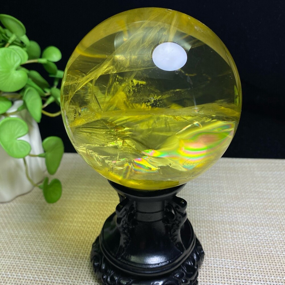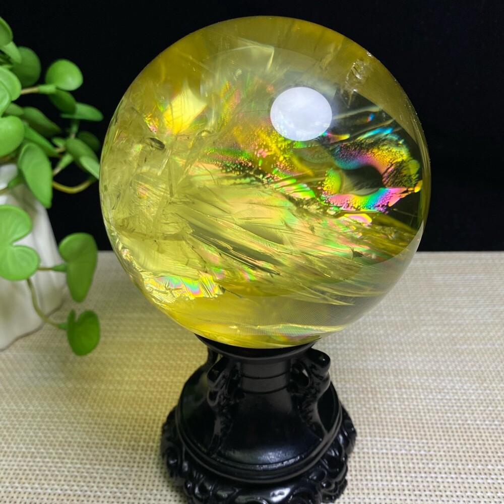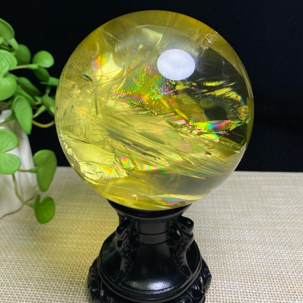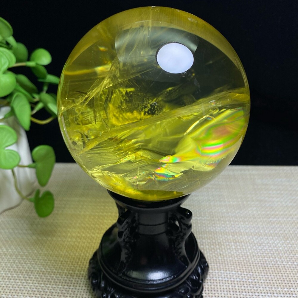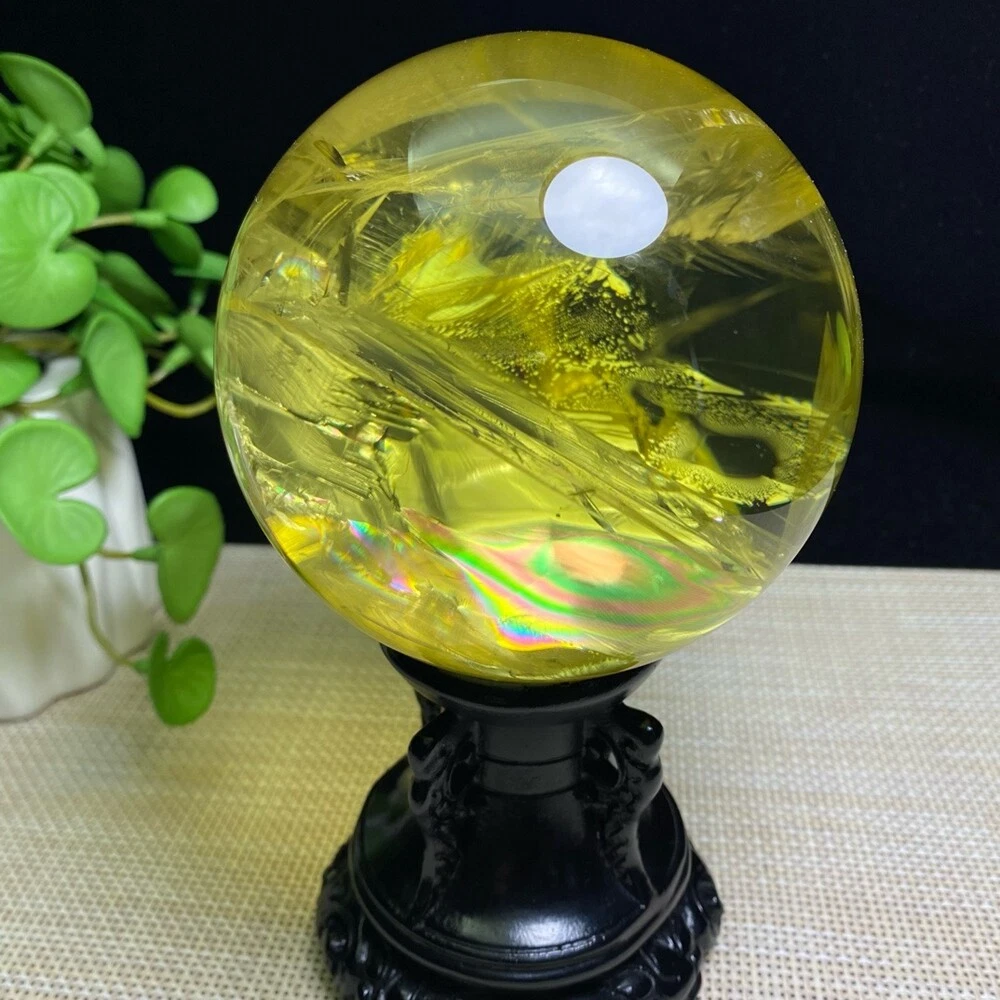 2.8LB Natural Citrine Quartz Sphere Rainbow Crystal Ball for Reiki Healing 94mm Chakra Meditation Stone
