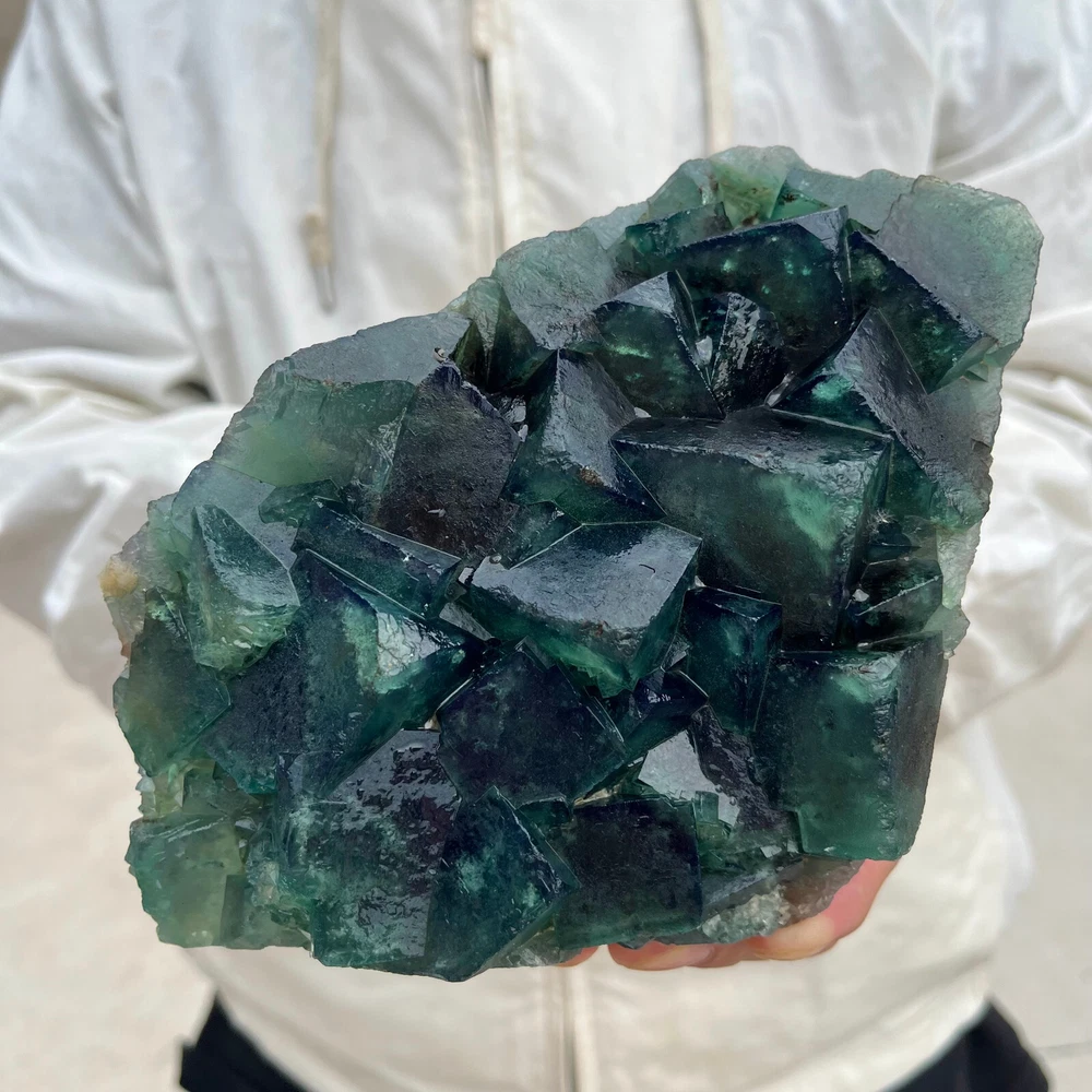 2.8LB Natural Green Fluorite Cube Quartz Crystal Cluster Mineral Specimen
