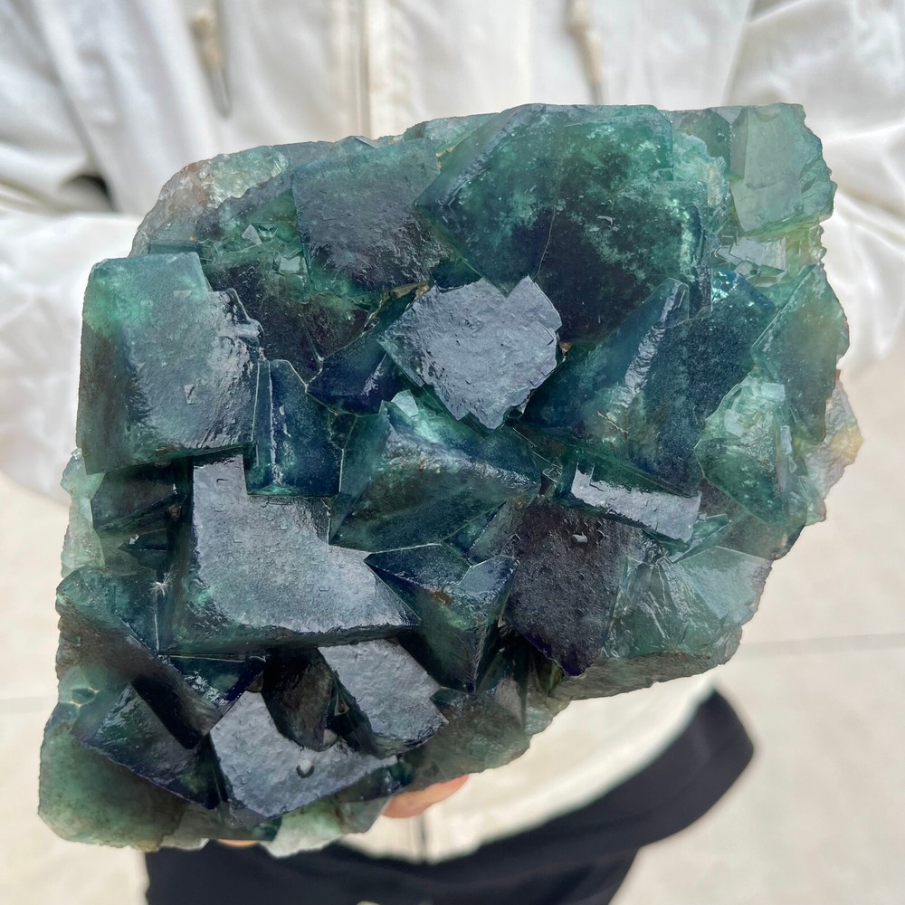 1. Amazing blue green hues in the fluorite. Item got here super quickly and it was wrapped completely in bubble wrap and tape. It looks exactly like the picture. It’s a solid chonk of a rock with interesting white flecks of crystal on the bottom. A+ transaction!!!