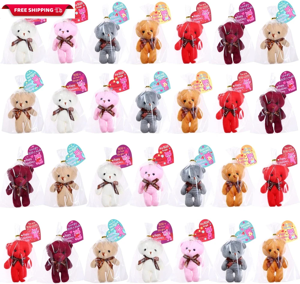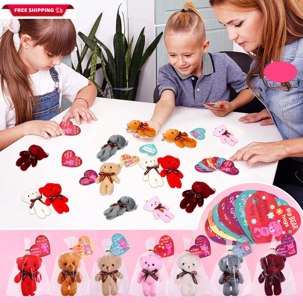 28PCS Valentines Day Gift Cards for Kids with Bear Plush Toys,Mini Stuffed Animal Plush Toys Keychains for Valentines Party Favor Supplies,Classroom Exchange,Game Prizes,Gift for Boys Girls šćGreat Unique Valentines PackćPackage has in total 28 Valentine's gift Cards and Cute plush bears in 7 colors.There are 7 lovely card designs, each card can be made into a Greeting Card with Valentineās Day Punchline.Comes with chain attached, cellophane wrapping & wire tie included separately for individualized self-packing. excellent addition to valentines gift baskets šćUnique Design and A Fun Toyć There are a wide variety of types and colors,bears are adorable and the cards are lovely heart shape.A refreshing change from traditional valentine cards/candy.Children will be very excited to hand them out at school. šćGreat variety and Easy to Assembleć It comes with cute little cards and you put them to the card.It comes with so many that you probably have enough for next year or you can distribute them among friends and family.Buckle It On Your Keys, Backpack or Anywhere You Want. Overall, this is amazing and just what you are looking for ! šćPremium Qualityć Our toy is child safe, non-toxic, non-BPA,and abides by US toys standards, big hit for Valentineās Day party at school. šćIdeal Valentines Gifts for Toddlersć Nice set for Valentine's Day, Class Events, Gift Exchange, School Classroom Prize, Love Notes.Super cute and sweet,fun candy alternative,perfect size for bag stuffer. It can be a time to teach children to express gratitude and love to friends, teachers and family, which will make someone feel loved and appreciated. Product Description Color Plush Bear Material Plush Item Weight 1.17 pounds Theme Animal Manufacturer recommended age 3 years and up Age Range (Description) Kid Occasion Valentine's Day Package Dimensions 12.48 x 8.7 x 3.62 inches Shipping Fast shipping is very important for us. Our standard US shipping service is FREE. Your order will be shipped within 1-3 business days upon full payment received. Your order will be delivered within 1-3 business days after the handling time. We reserve the right to cancel any order for any reason at any time. We are not responsible for undeliverable addresses. We are not responsible for undeliverable addresses. Returns and payment We offer a 30-day return policy from the date of payment received. This return policy covers Incorrectly Shipped items, Broken or Damaged items, Items that do not match the Product description and Picture. Medicines, Pills, Creams, Gels, Food Supplements and products that cannot be reused after opening cannot be returned. For example; cat litter, powder detergent, salt, liquid products, etc. FeedBack Your feedback is very important to us, please leave us positive feedback once you receive your package and satisfied with our service. If you have any problems with your order, please contact us using the eBay communication system before leaving feedback. Please visit our eBay store to check out other items for sale! Thank you for shopping at our store.