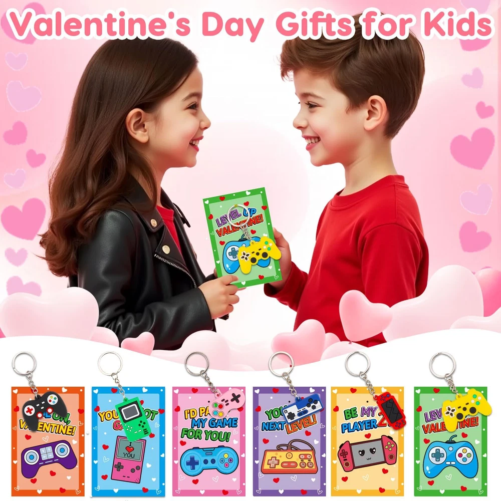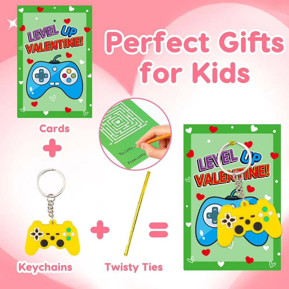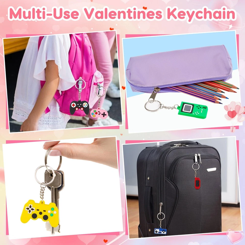 Super Value Set for Valentine's Day: These keychains for kids valentines includes 28 video game keychains, 28 cards and 28 twisty ties. Come with 6 unique designs, each personalized valentine's greeting card perfectly matched with the corresponding keychain. Great valentines day gifts for kids school, video game party favors, valentines cards for kids classroom, valentines gifts for kids Valentines Day Exchange Gifts Cards for Kids: Our boys valentines cards degign combines valentine's day with a gaming theme. Each card has a different game machine pattern, kids only need to write "To" and "From" on the reverse side to give to friends as valentines day gifts to share their love. Perfect gamer party favors decorations, class valentines day gifts for kids, valentines day goodie bags stuffers Surprise Valentine Gifts for Game Lovers: Our kids keychains has a wide range of uses, you can hang it on your school bag, keys, luggage, backpack and various other places, or as valentines gifts for kids classroom! Perfect for any video game-themed birthday party or event! Ideal kids valentines day gifts for school, toddler valentines day gifts, valentines for kids classroom, valentines classroom favors Premium Material & Good Size: Our video game controller key ring is made of alloy, and the pendant is crafted from quality rubber, which is comfortable, lightweight, and easy to carry. Ideal for kids who love games, super surprise valentines day cards for kids school, valentine class & classroom prizes, perfect for school class kids valentines, girls boys valentine cards for school Perfect Valentines Gifts: Our valentine day gifts cards with keychains is perfect for valentines party favors, video games party supplies, children's valentine's day cards, valentine's day exchanges gifts, goodies bag stuffers, classroom gift exchanges, valentine's day class prizes, preschool exchange cards, class treats, valentine gifts bulk, return gifts for birthday party and more celebrations